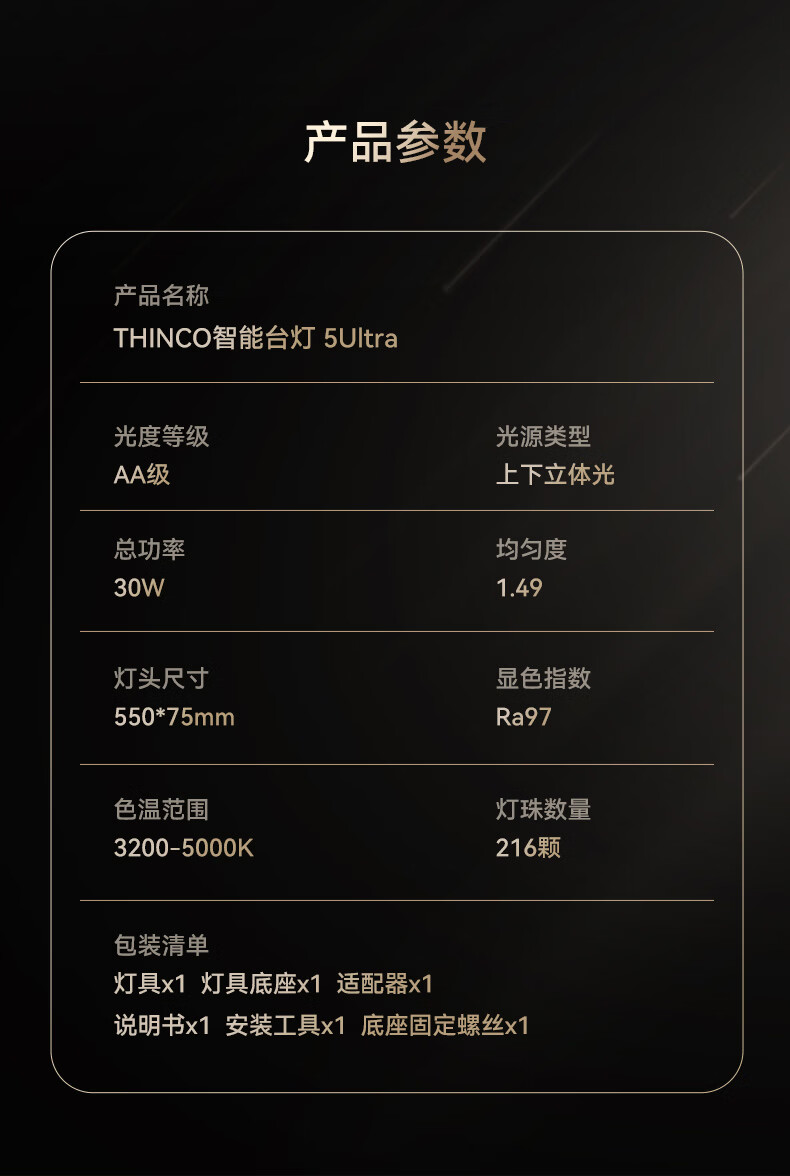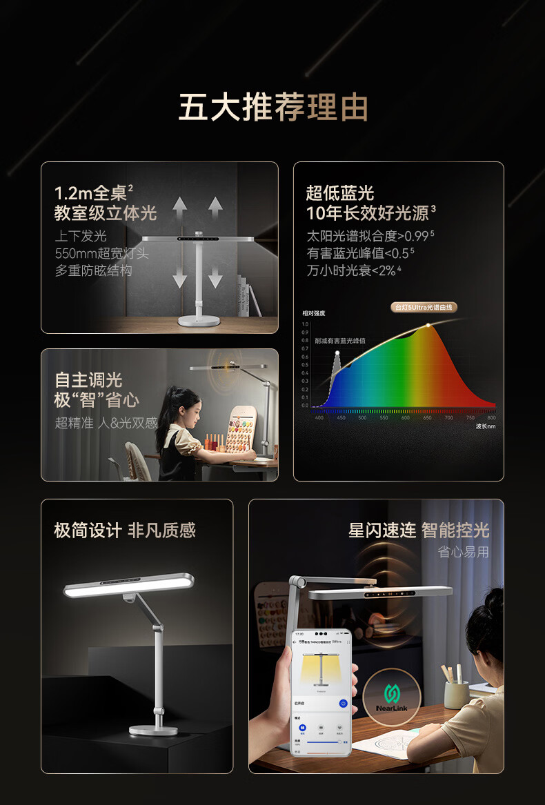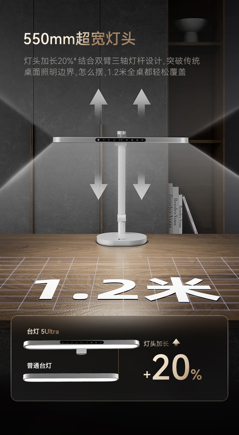 鸿蒙智选THINCO智能台灯学生护眼学习防蓝防近视光感应灯5Ultra星河银