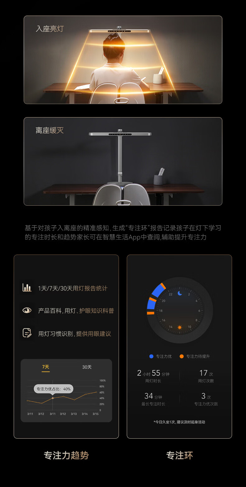 飞利浦(PHILIPS)护眼台灯 学生学习专用阅读灯床头灯led儿童国AA级全光谱长条灯 【60cm超长灯头】全光谱护眼/国AA级大照度