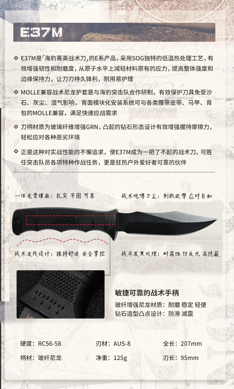SOG索格户外刀具E37M海豹防身刀野外露营工刀探险防身刀具