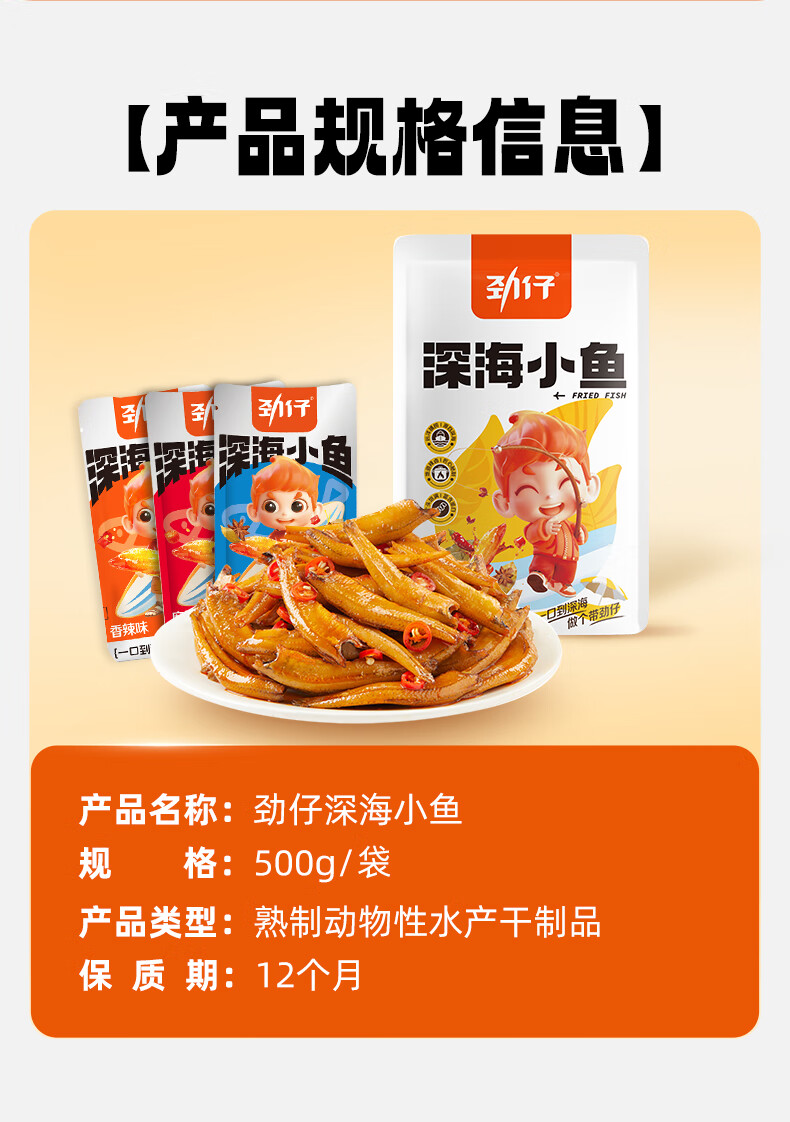 劲仔小鱼仔送礼零食小鱼干 混合口味 500g(约45-50小包)