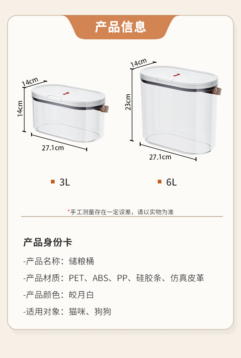 JKULNING宠物密封储粮桶【6L】 猫粮狗粮防潮桶宠物零食存储防串味收纳盒