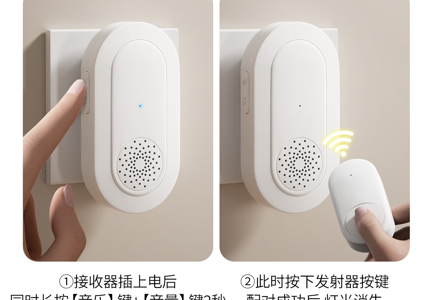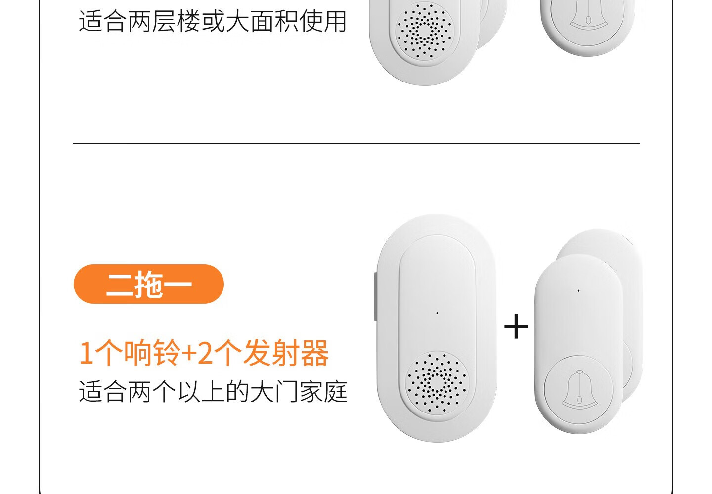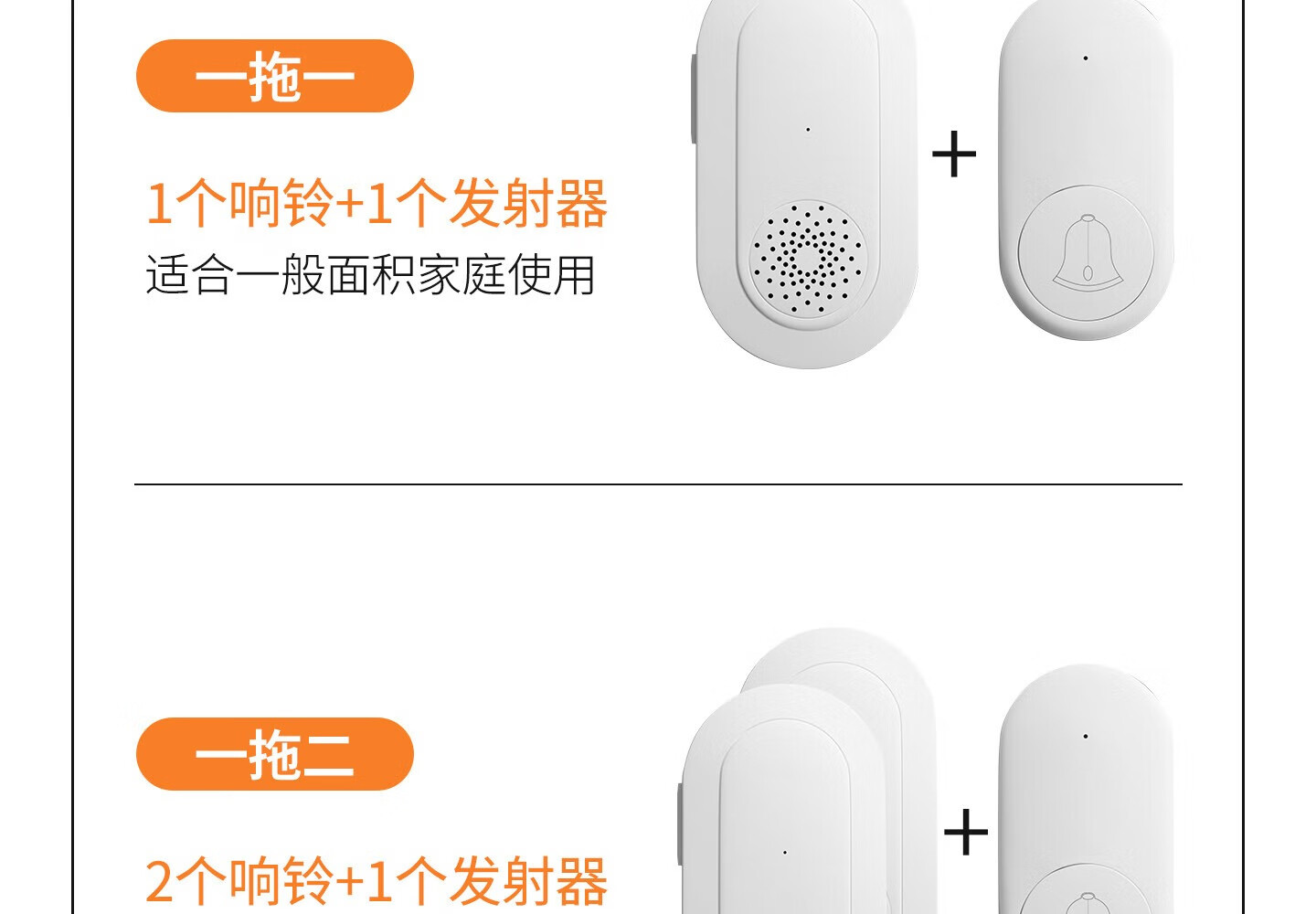 7M国际电工智能无线遥控门铃家用远程距离免布线入户门卧室呼叫器大音量门铃 插电款【1个遥控+1个圆形响铃】