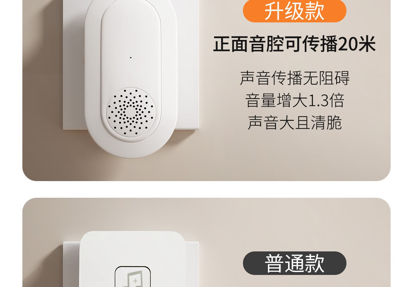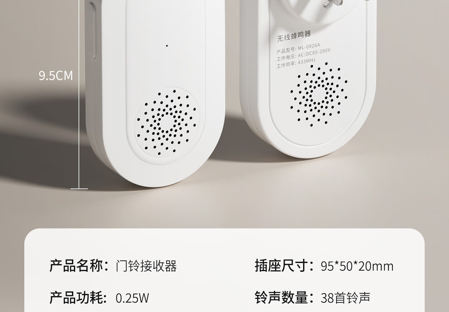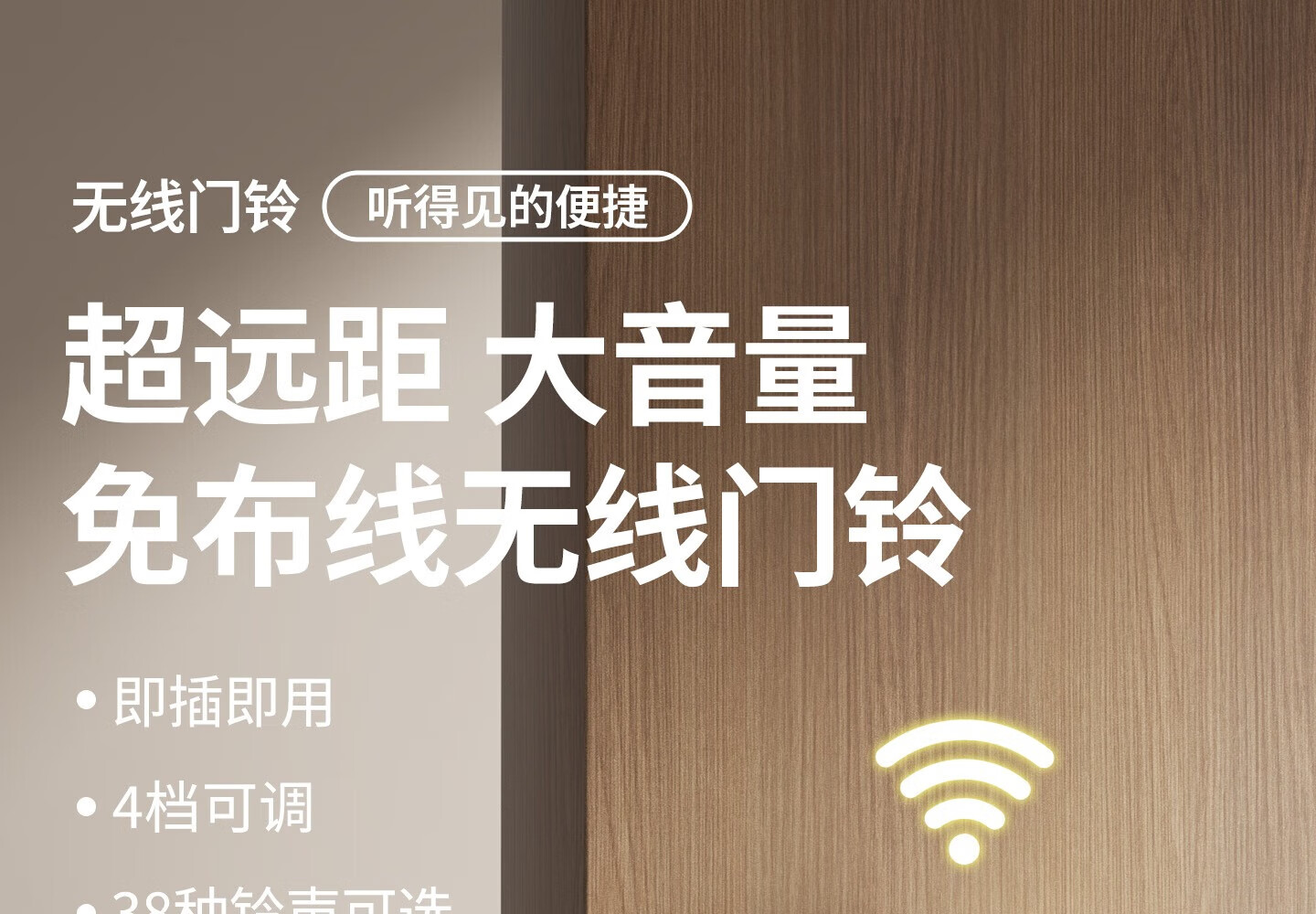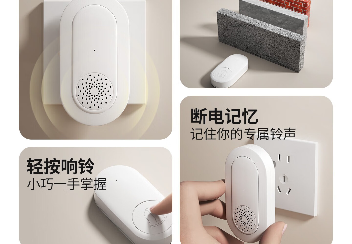7M国际电工智能无线遥控门铃家用远程距离免布线入户门卧室呼叫器大音量门铃 插电款【1个遥控+1个圆形响铃】
