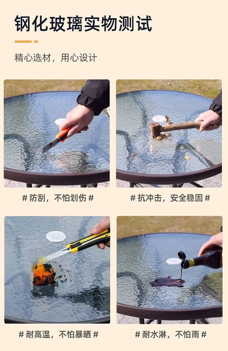 欣慕雅户外桌椅阳台露天桌椅套件小花园现代铁艺桌椅小茶几室外庭院桌椅 80cm水纹钢化玻璃组装圆桌+2椅