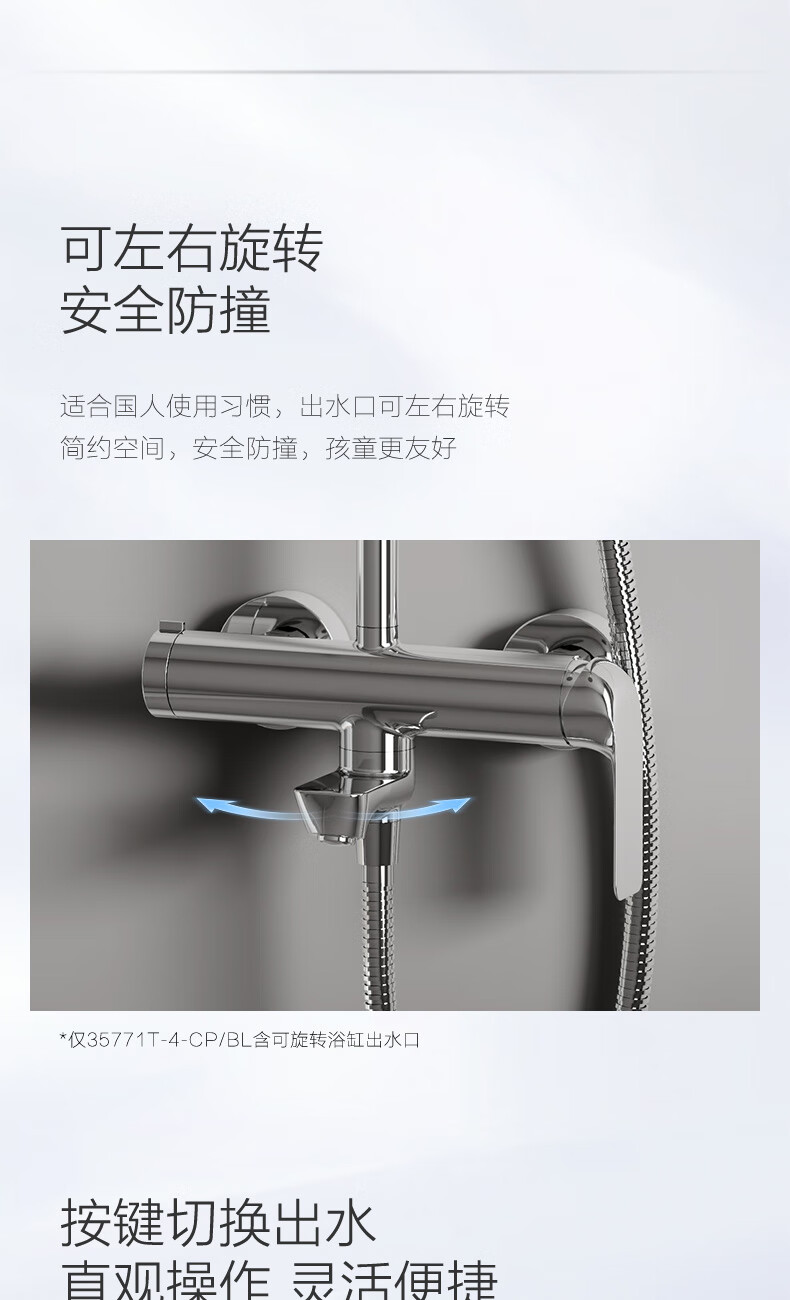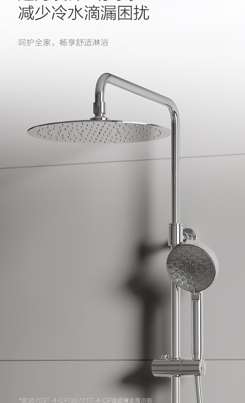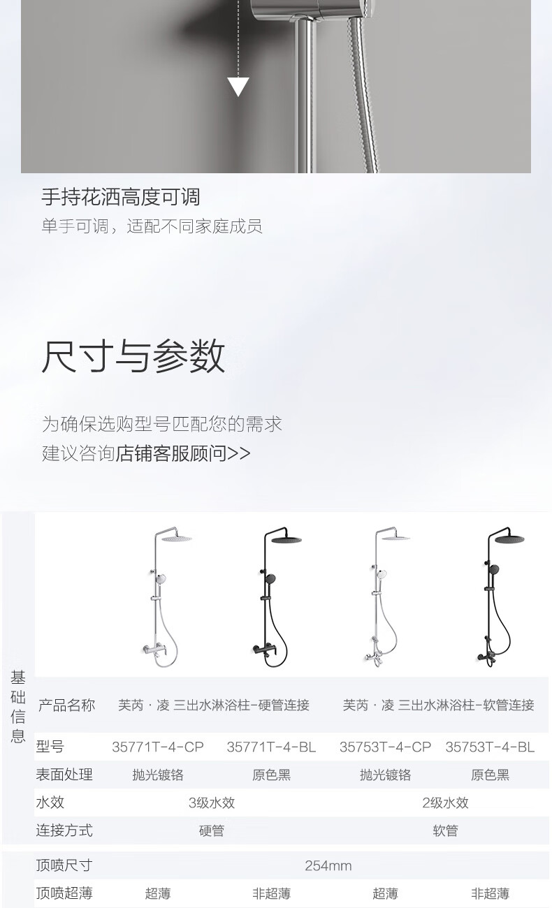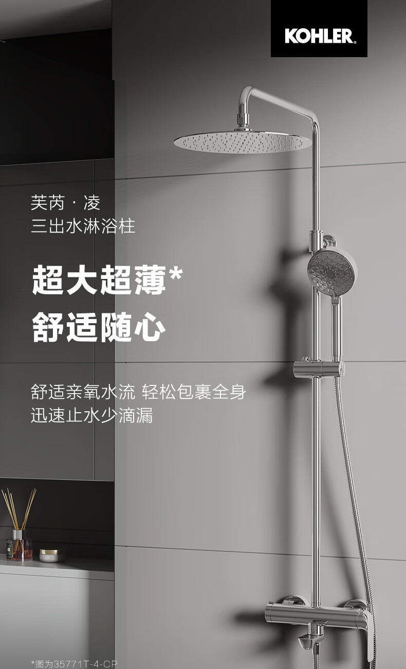 科勒(KOHLER)淋浴花洒芙芮凌多功能三出水方形大顶喷淋浴柱浴室花洒套装35753T 软管链接款35753T