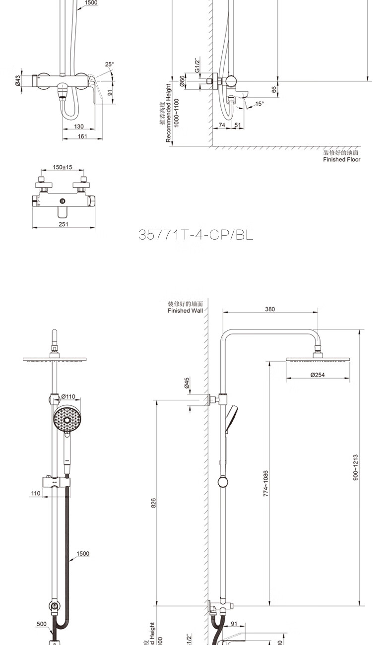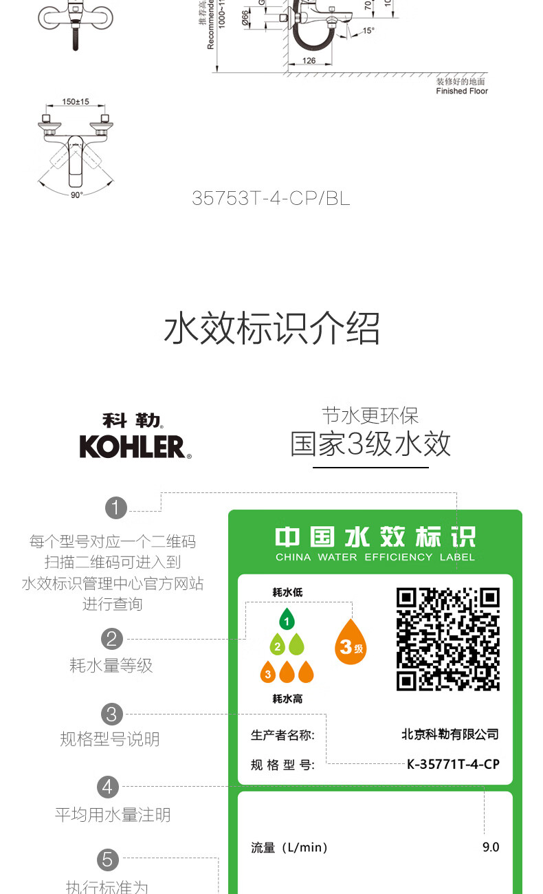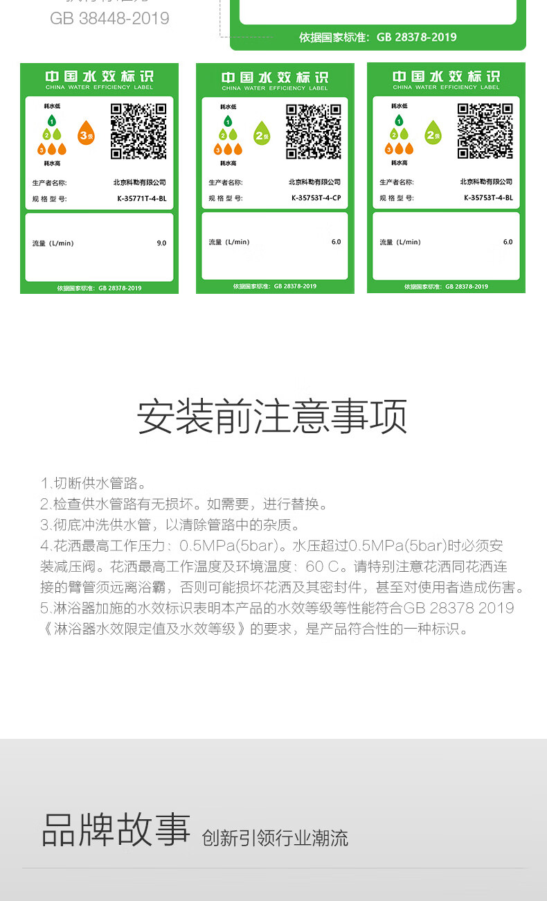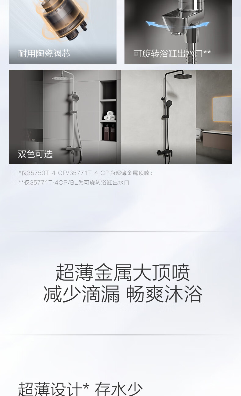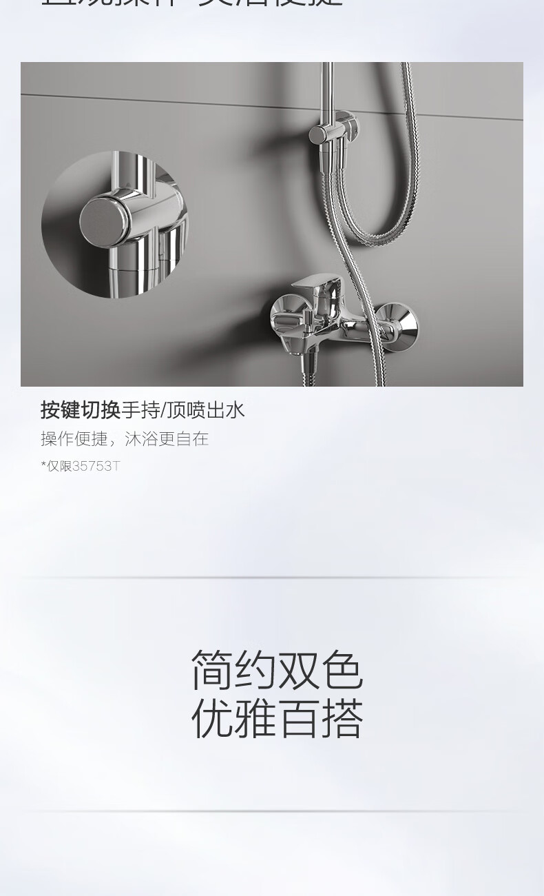 科勒(KOHLER)淋浴花洒芙芮凌多功能三出水方形大顶喷淋浴柱浴室花洒套装35753T 软管链接款35753T