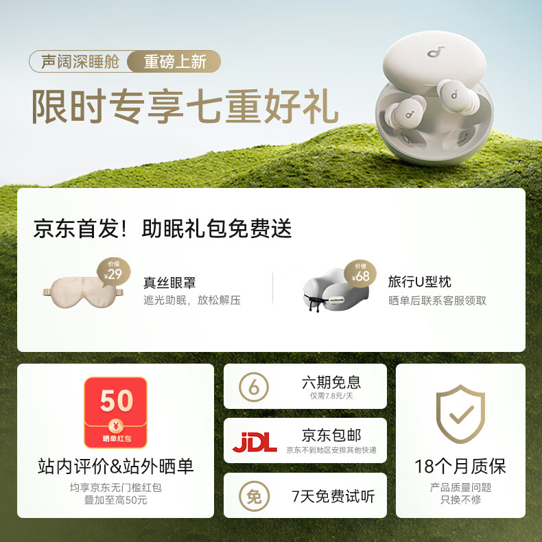 声阔SleepA30睡眠耳机深睡舱蓝牙耳机睡觉不压耳无线降噪隔音耳塞助眠隐形小巧适用苹果华为小米白色