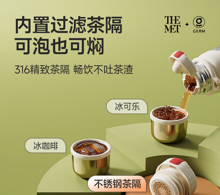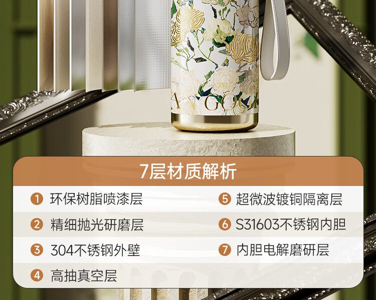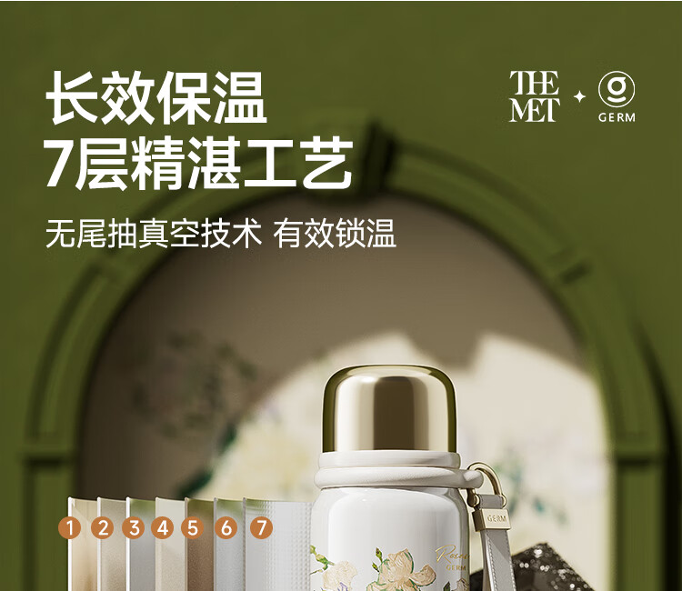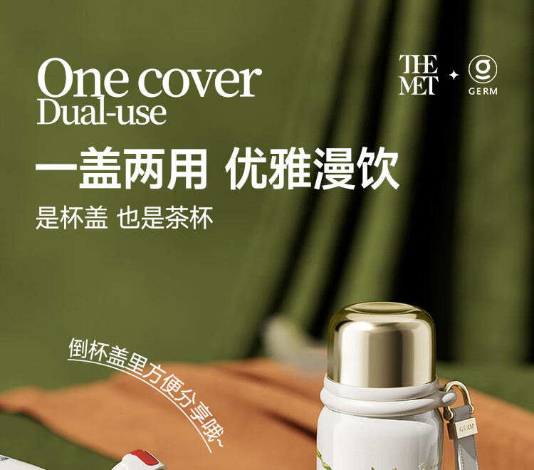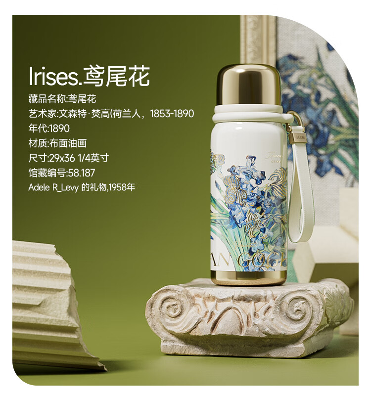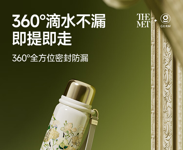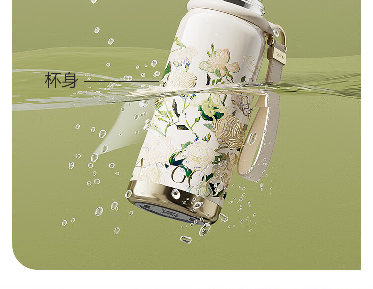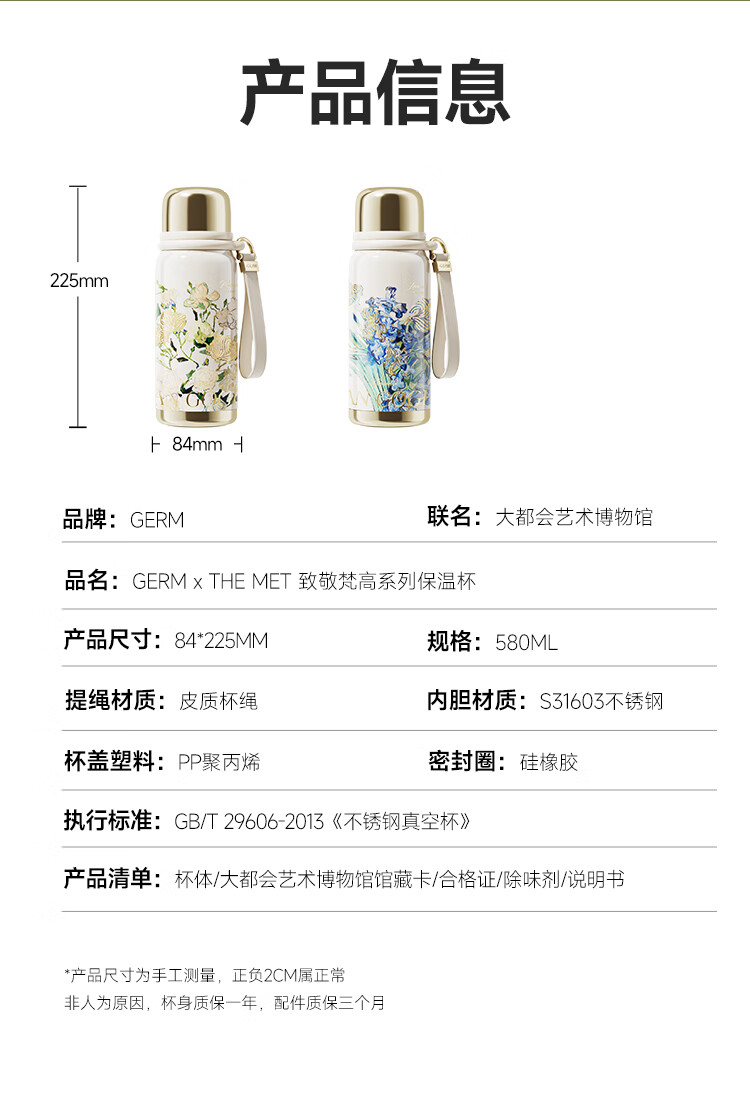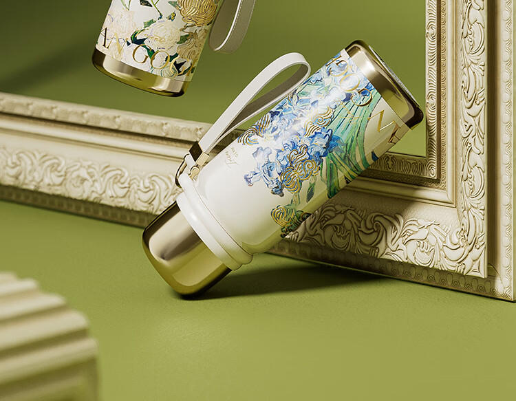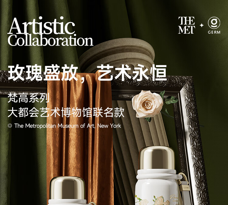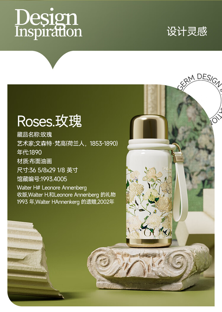 格米(germ)梵高联名保温杯男女水杯大容量运动学生杯女神礼物杯子580ML玫瑰
