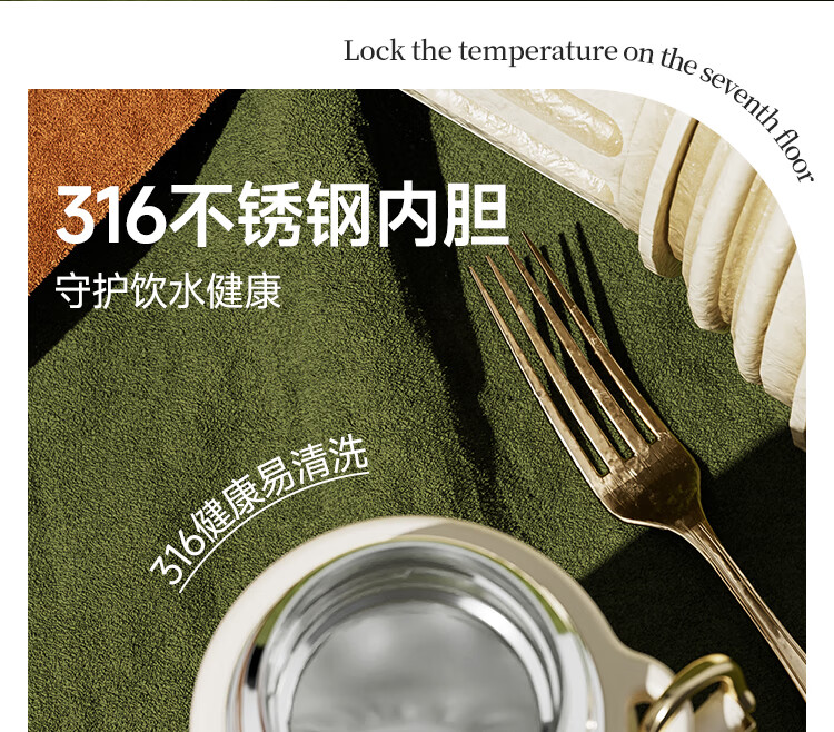 皇家洛克 ROYALLOCKE保温杯316不锈钢大容量男女水杯学生车载户外杯子 【不带显温】粉银320ml
