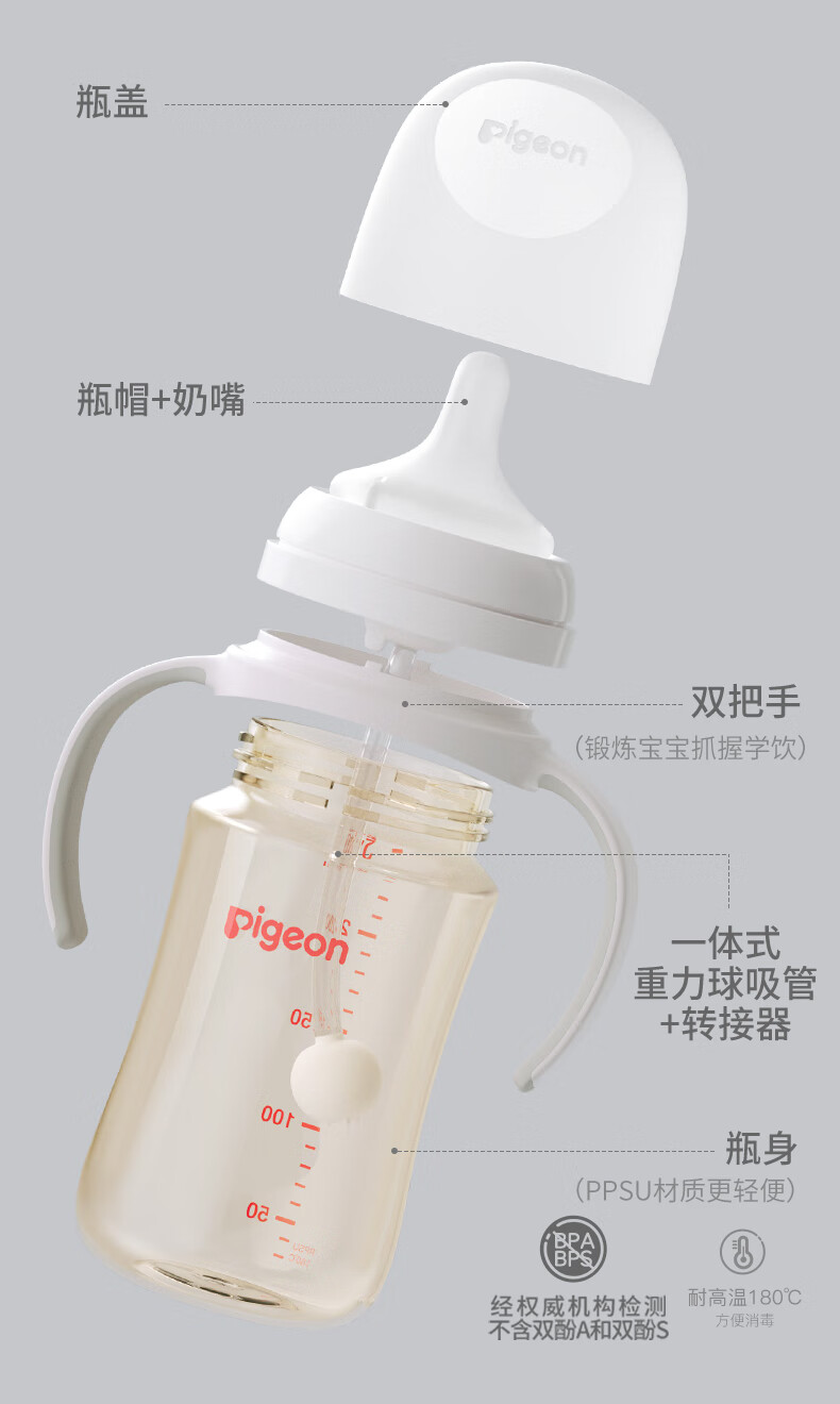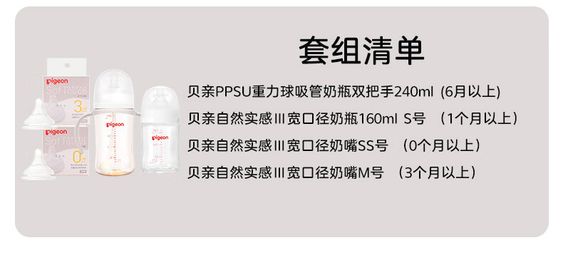 贝亲(Pigeon)新生儿奶瓶奶嘴喂养套装 省心4件套 覆盖0-9个月