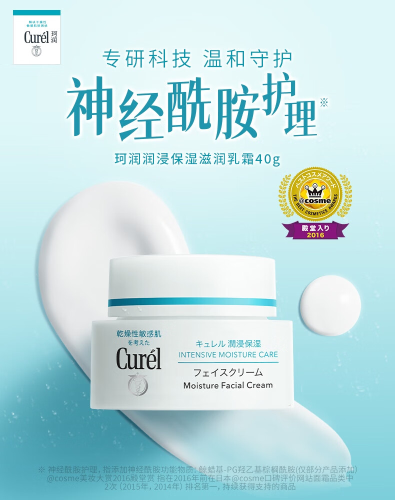 珂润(curel) 润浸保湿滋润乳霜 40g 神经酰胺护理 补水乳液面霜