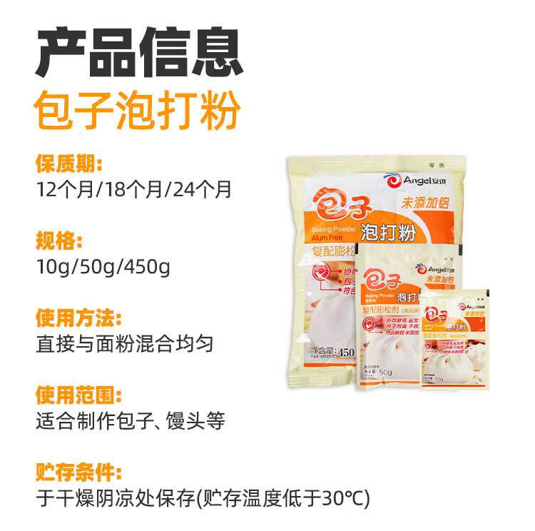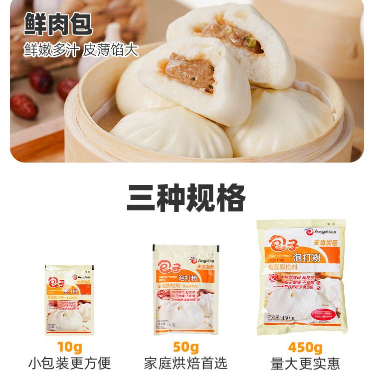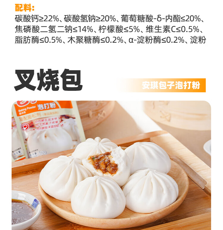 安琪无铝害包子泡打粉50g*5袋小包装家用包子馒头复配膨松剂烘焙原料