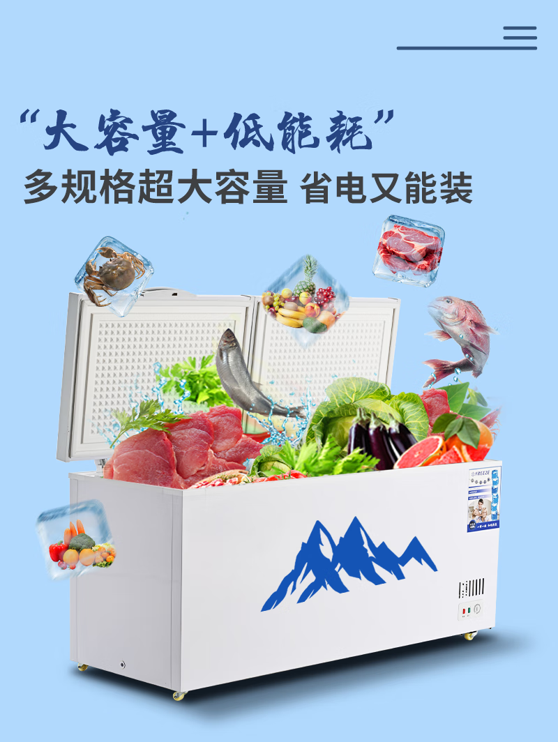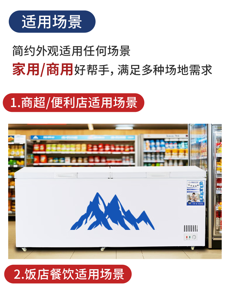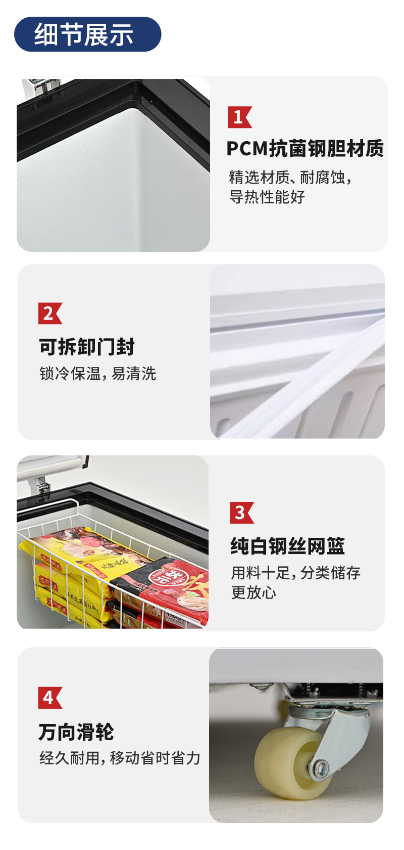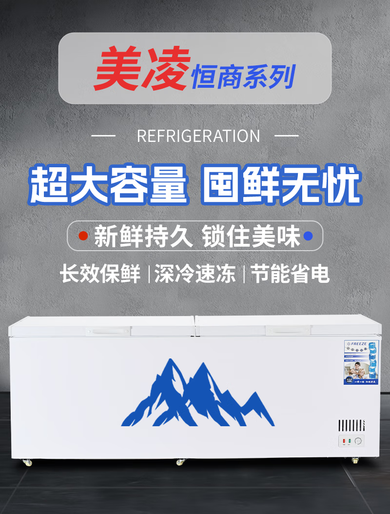 美凌恒商系列商用冰柜灰色系 大容量家用冷藏冷冻卧式冷柜 单双温转换冷冻柜 铜管节能冰柜 【598单温单门】长1米-全冷藏/全冷冻 铜管制冷-灰色机械款