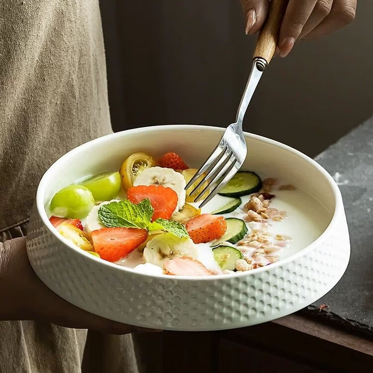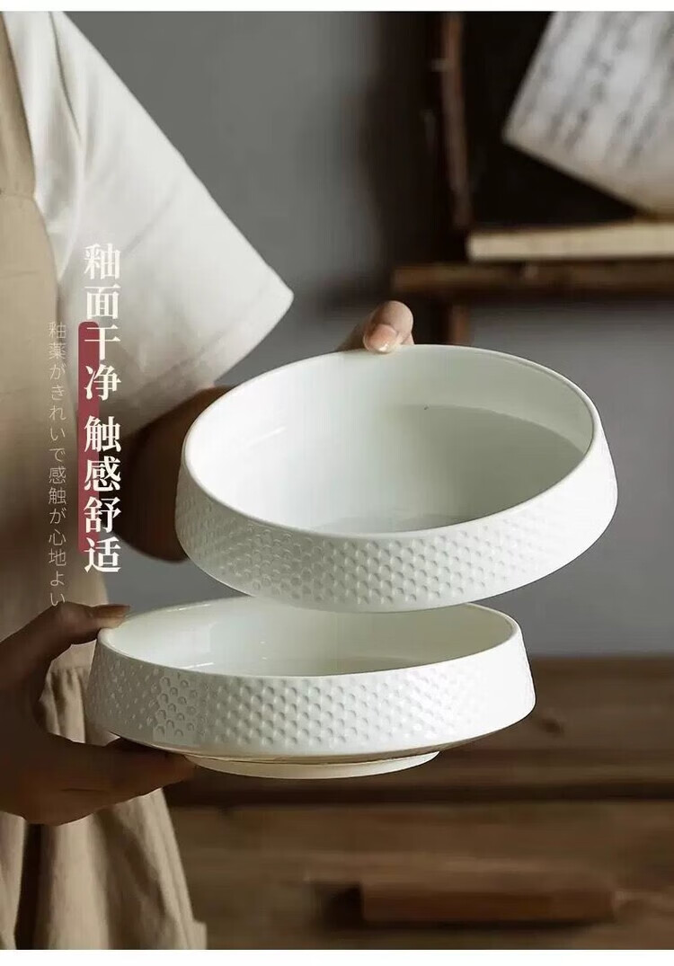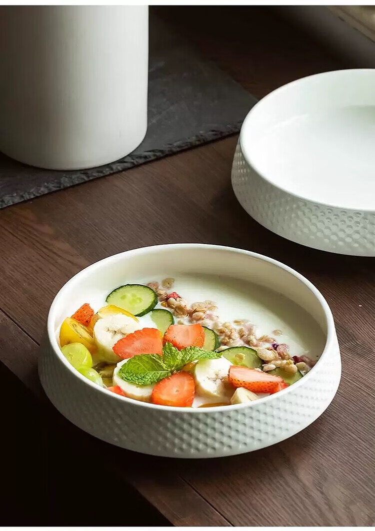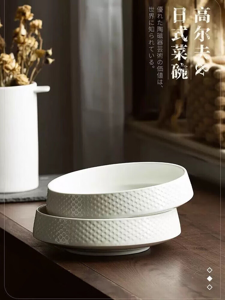 GIOIO蒸蛋碗专用陶瓷汤碗家用深盘汤盘高级感深碗大碗米饭碗日式餐具 7英寸高尔夫碗【亮光白】