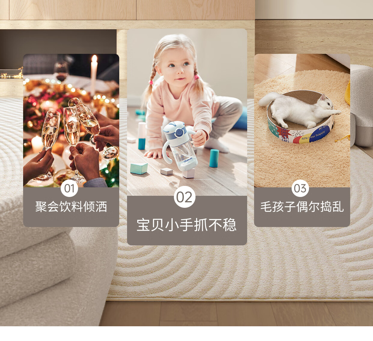 兴连心硅藻丝客厅地毯奶油风沙发茶几毯高级感防水防污免洗可擦卧室地垫 幽谷时痕 240*340cm