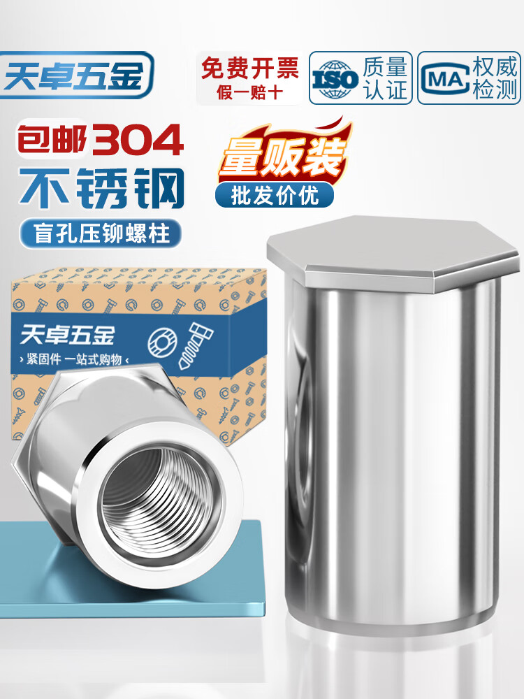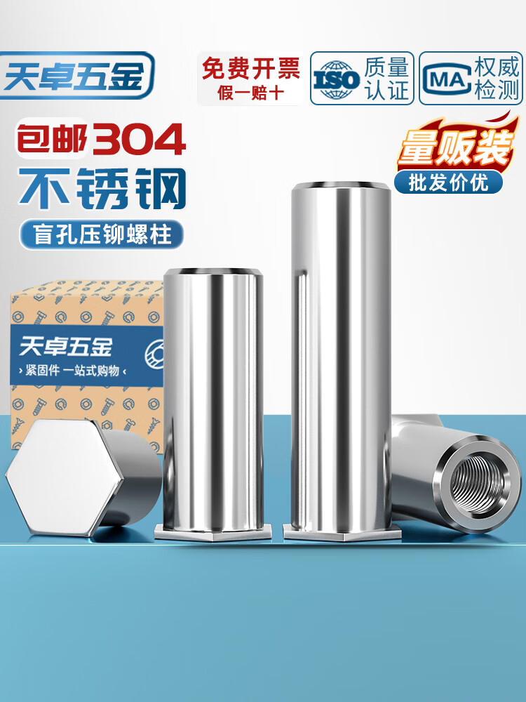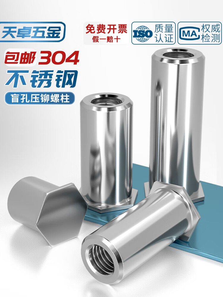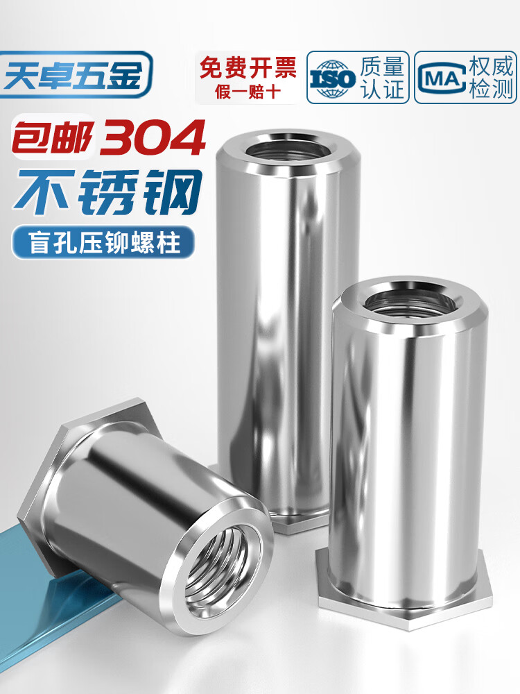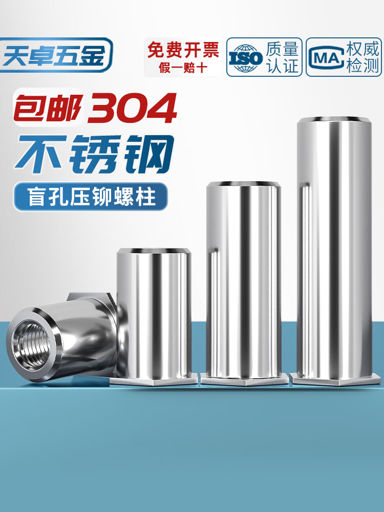天卓五金304不锈钢盲孔压铆螺柱BSOS压铆螺母柱件压板螺柱M2M2.5M3M4M5M6 M2*3外径4.2【80个】