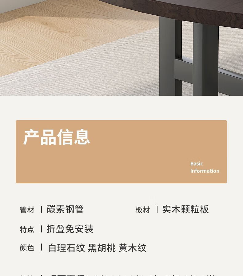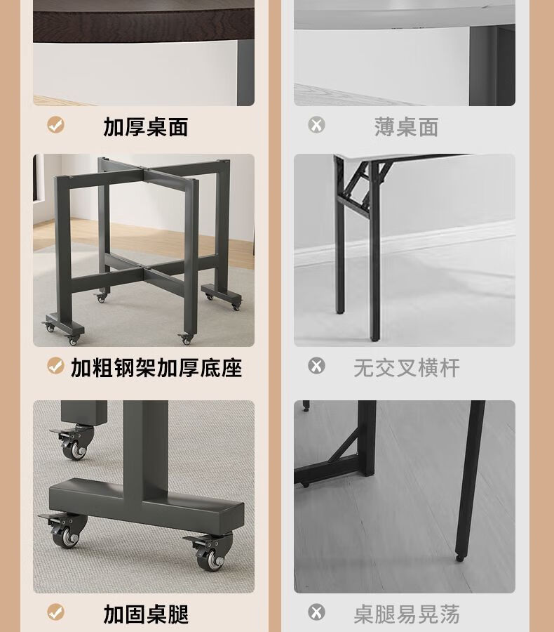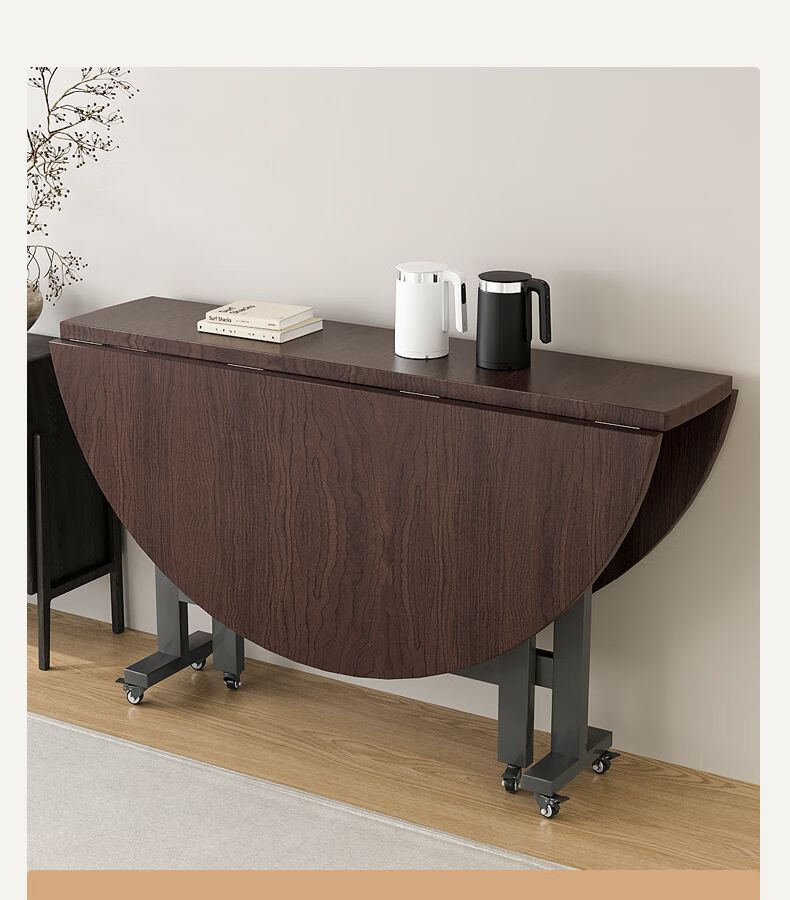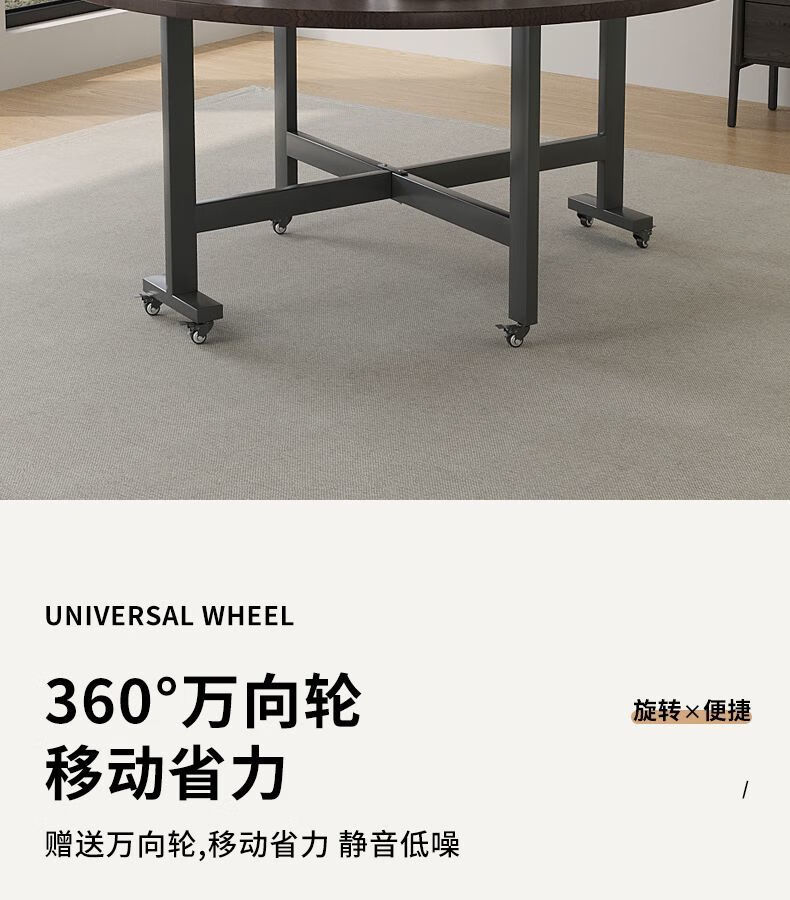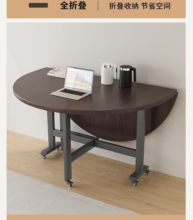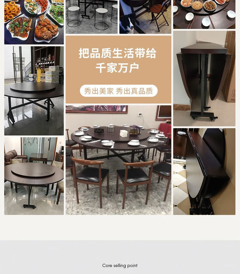 科虎折叠餐桌家用小户型带转盘大圆桌多功能吃饭桌子 黄木纹 圆凳