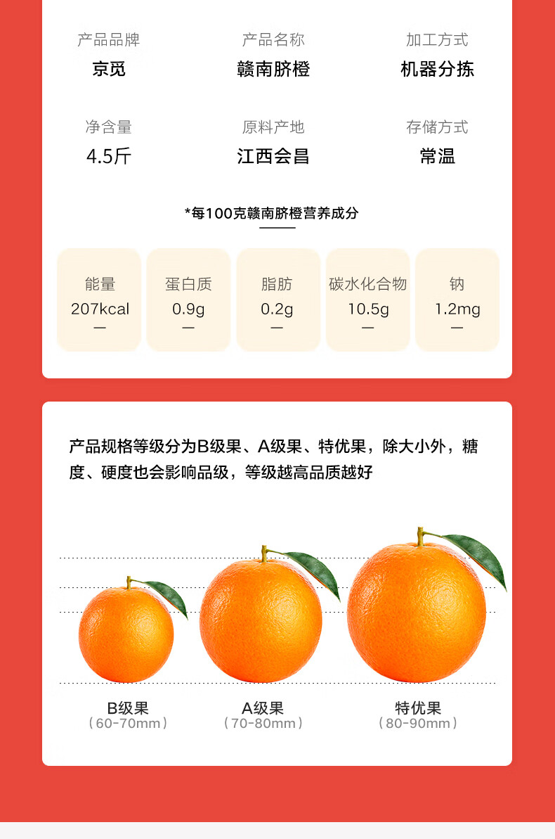 京觅赣南脐橙新鲜水果生鲜甜橙子 4.5斤净重单果约150g+ 源头直发