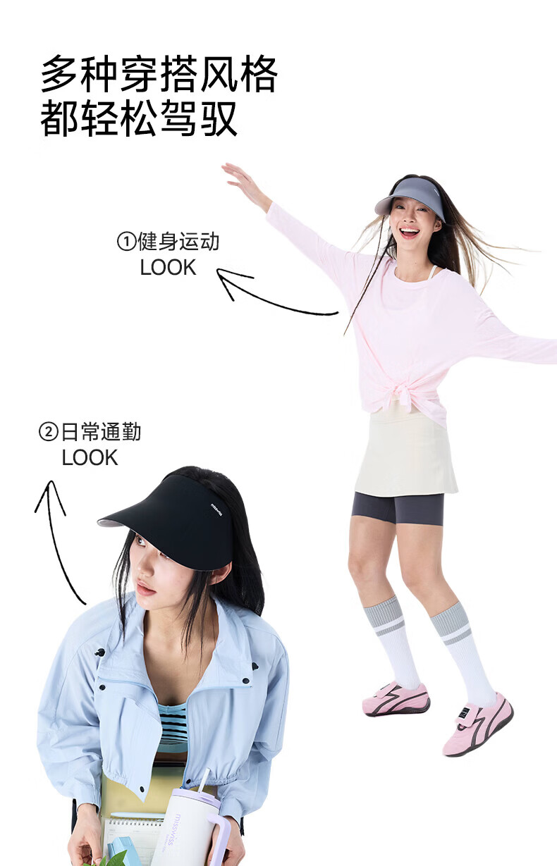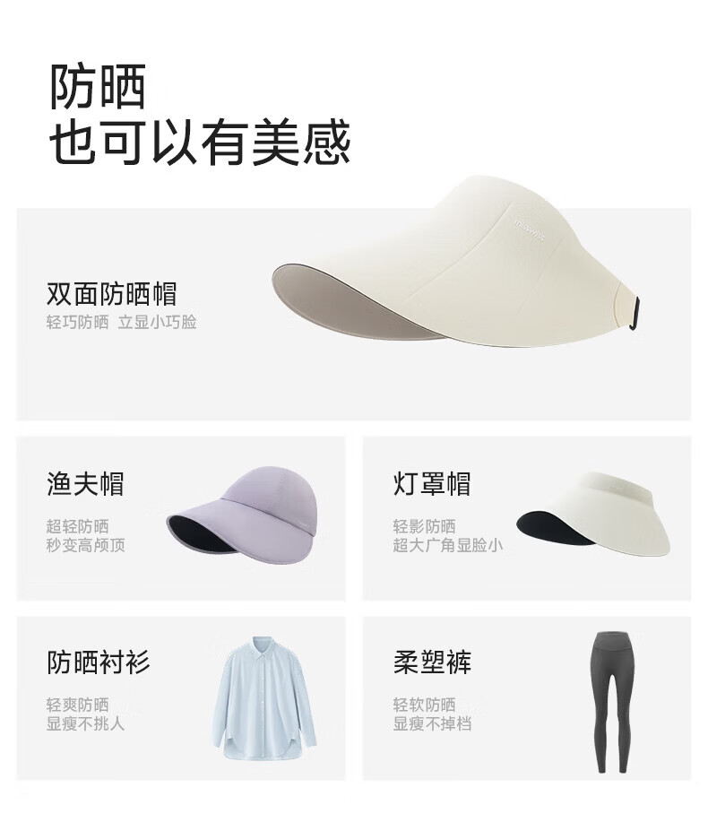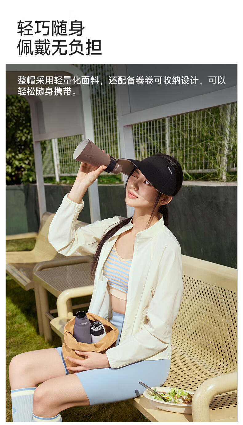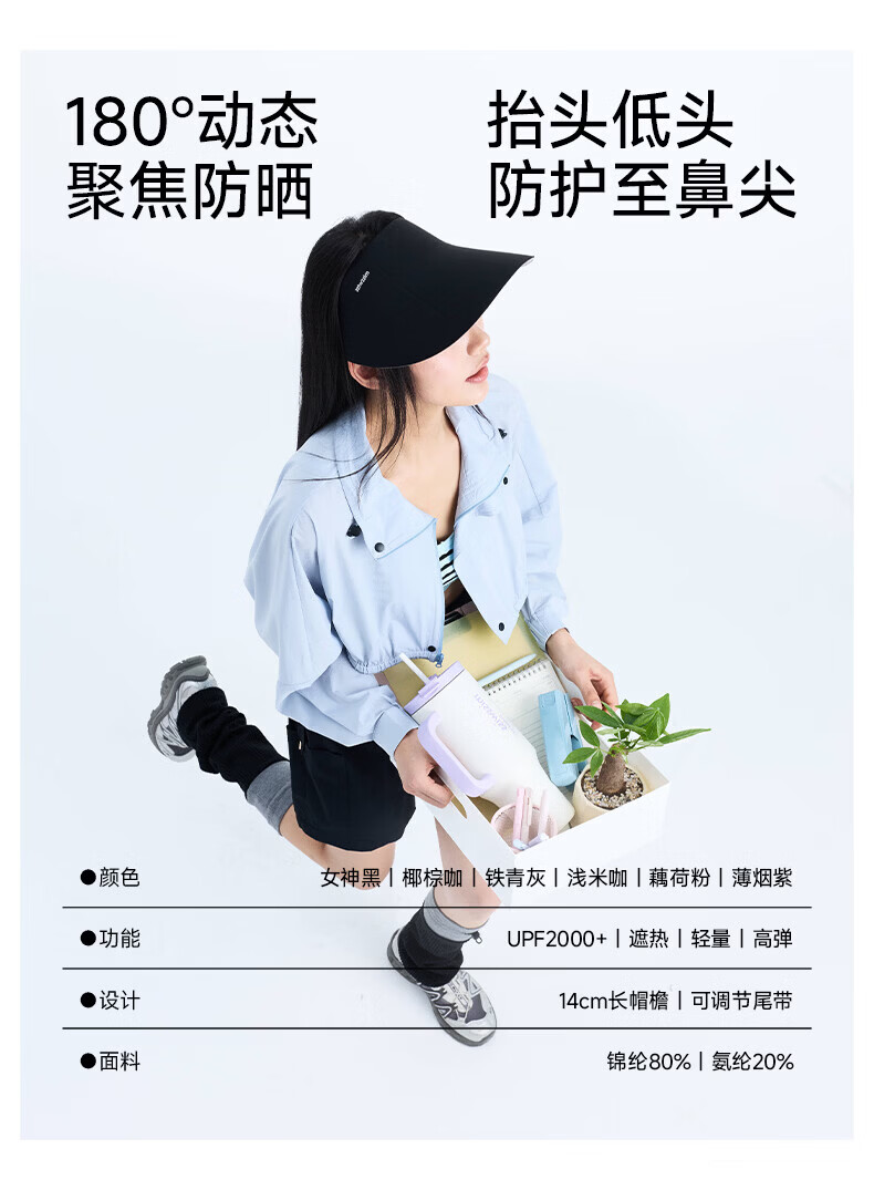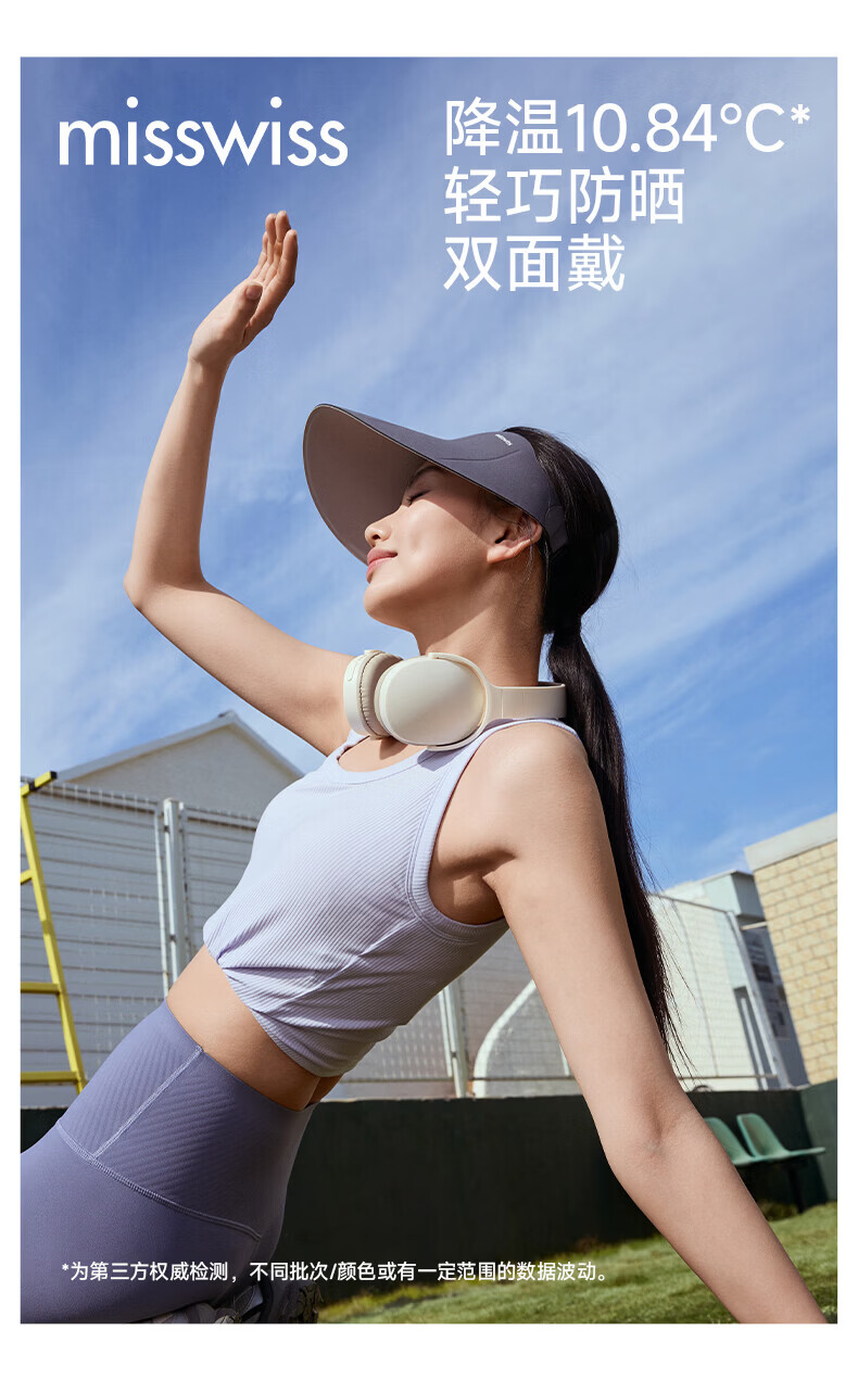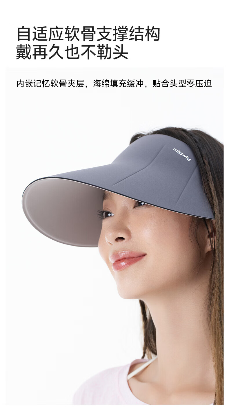 MissWiss双面防晒帽女士夏季户外防紫外线遮阳帽百搭显脸小空顶帽 女神黑 【17.5cm帽檐】 可调节易收纳 可调节(54-58cm)