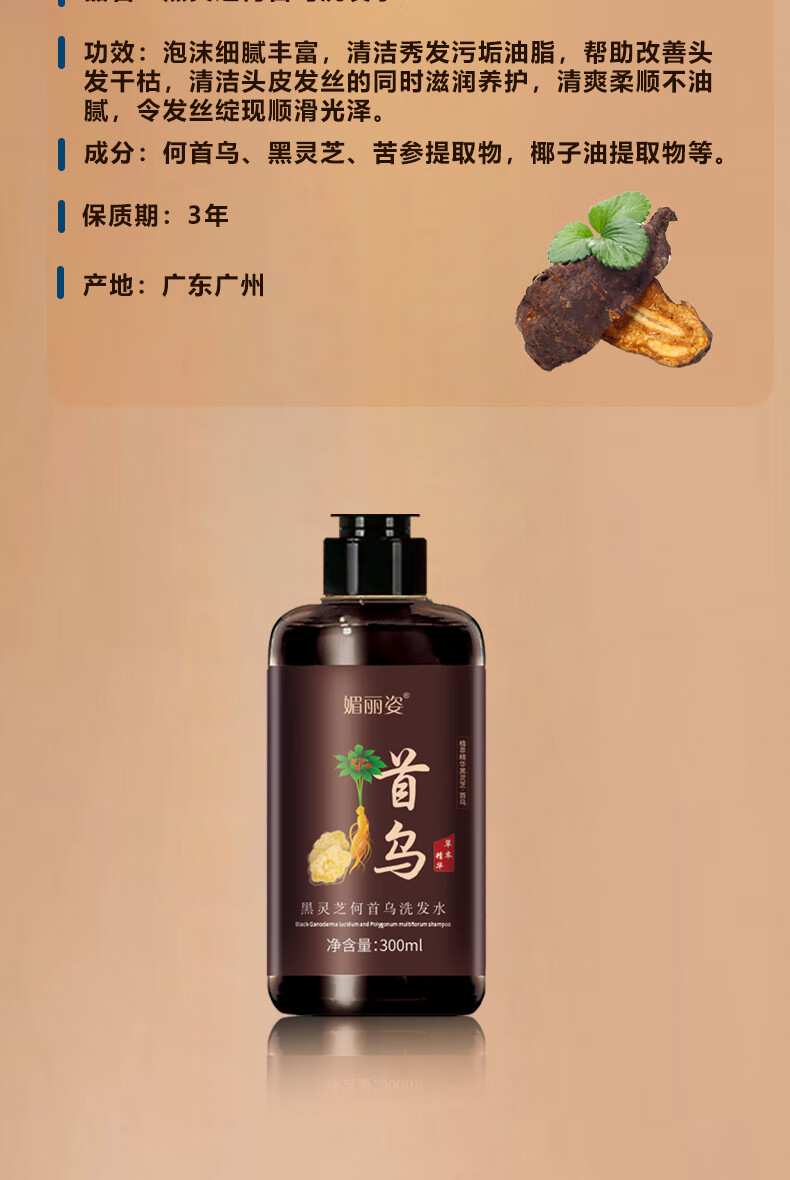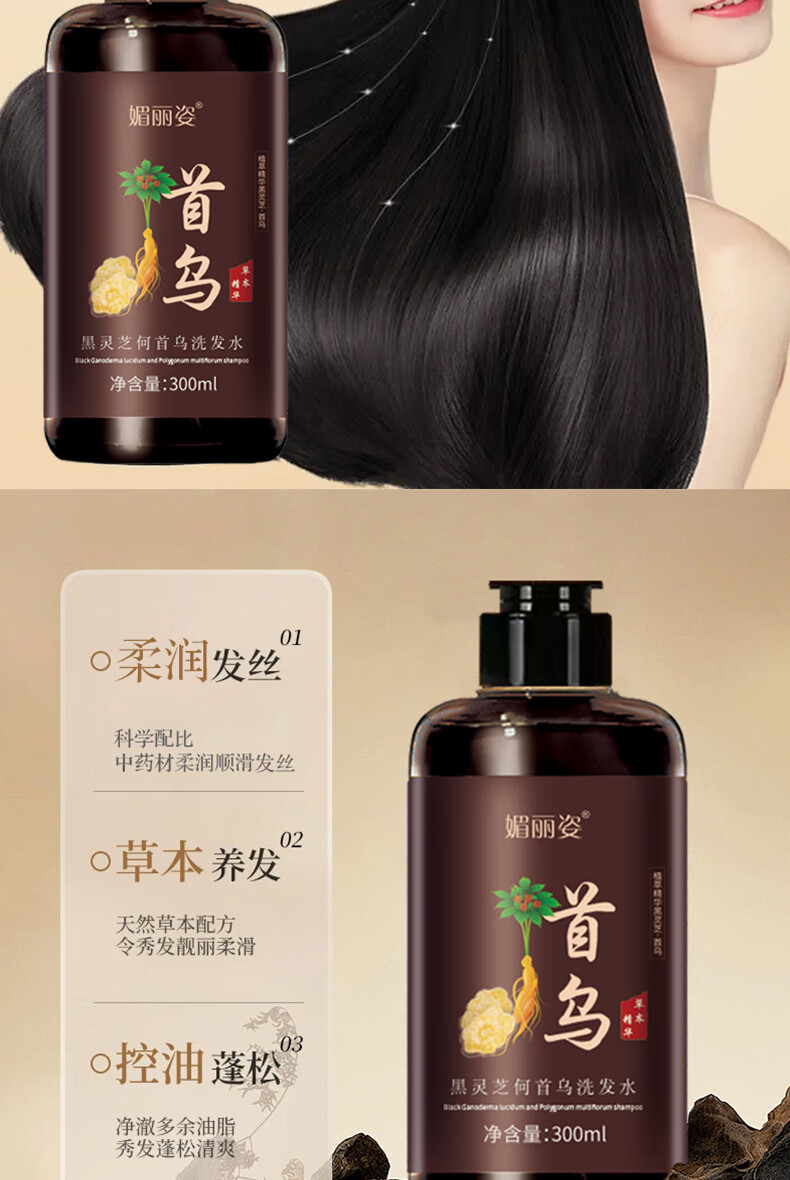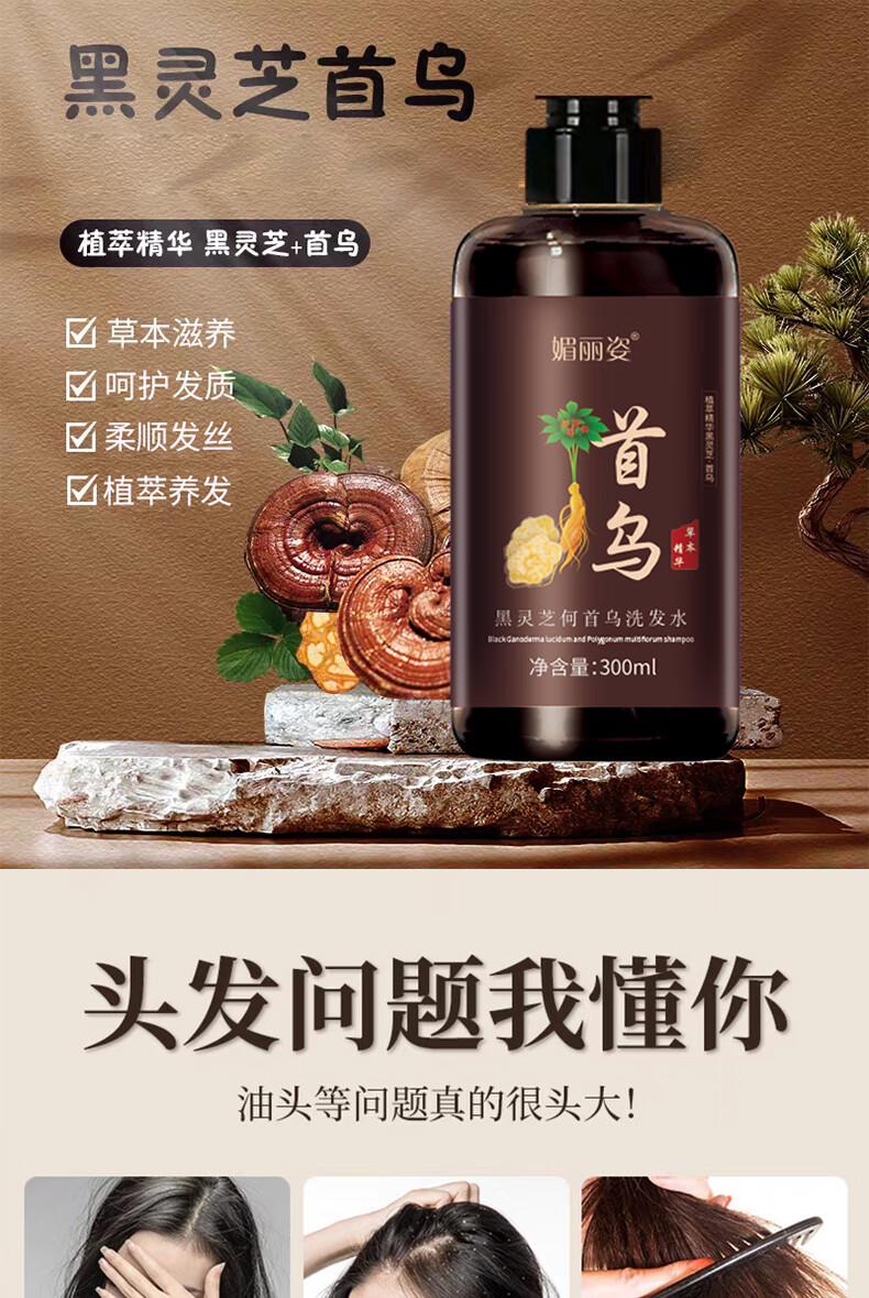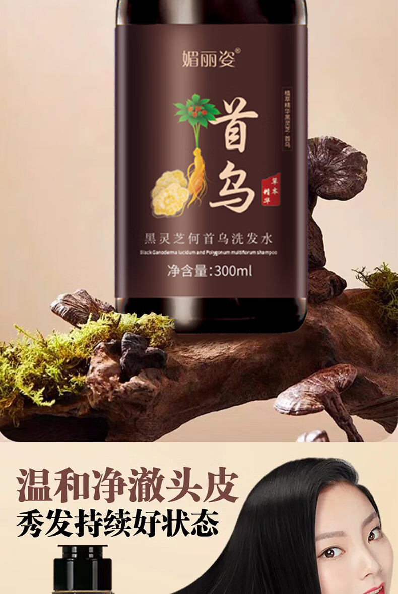 乌斯曼草官方旗舰店黑灵芝何首乌侧柏叶养发液草本养发正品 300ml/盒*2(促销款)
