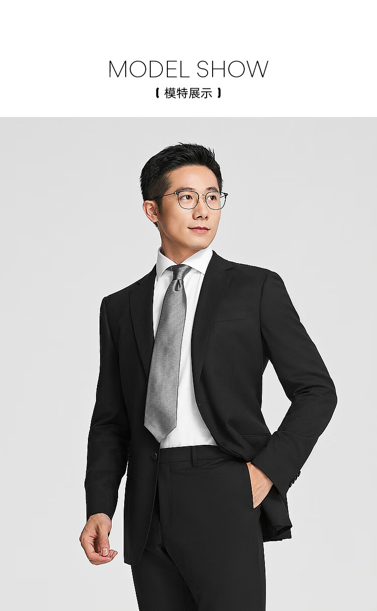 雅戈尔【商场同款】西服男士秋冬套西YOTN217298AJY上衣 黑色YOTN217298AJY上衣 M 170/92A