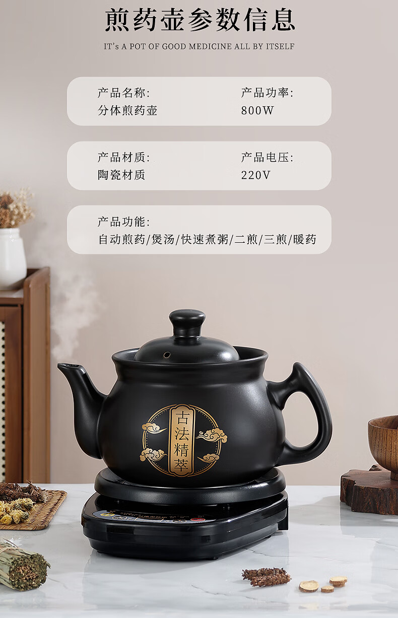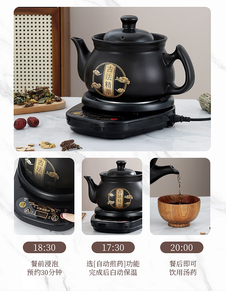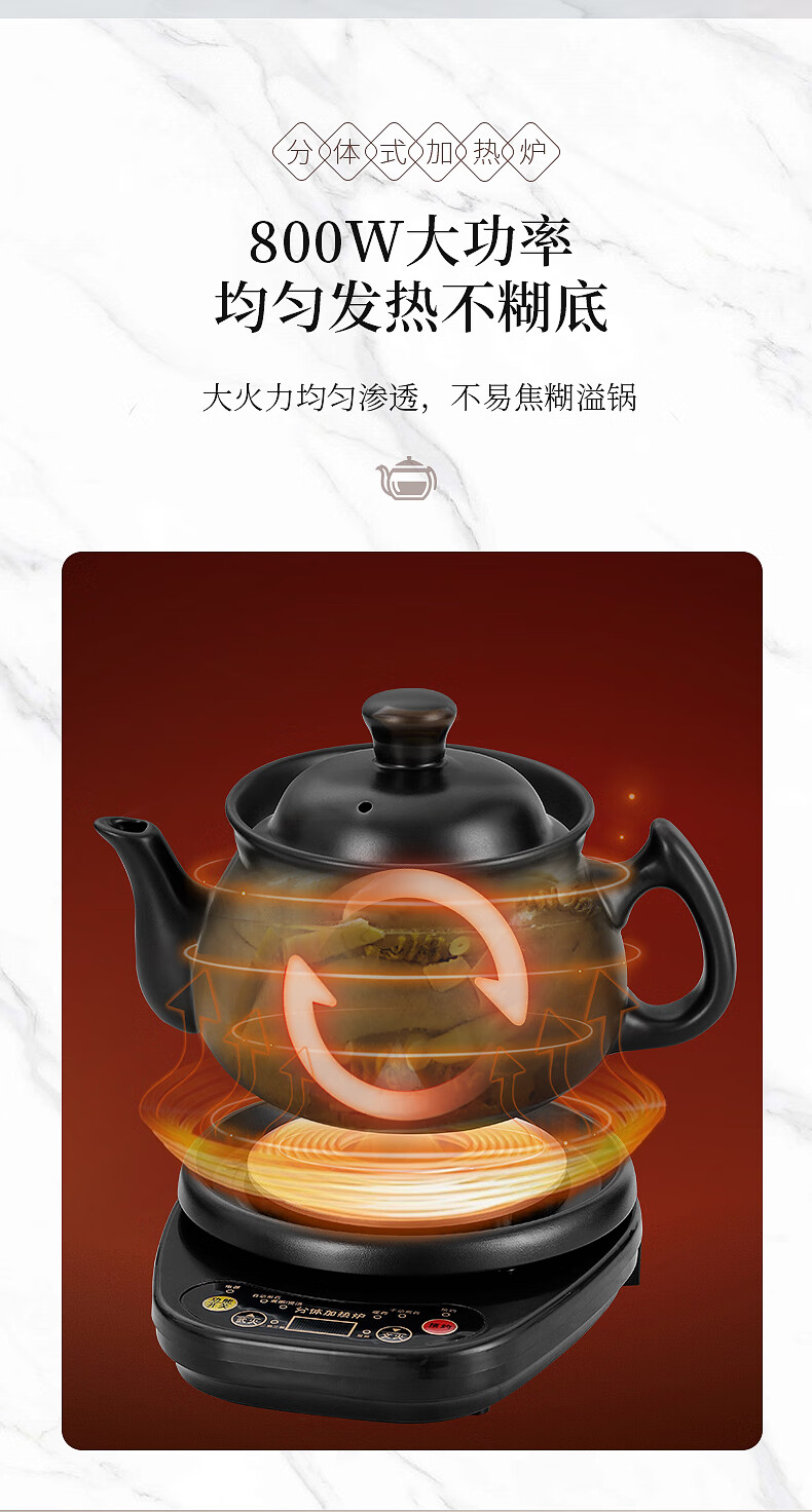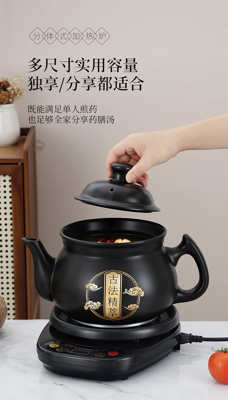 越进中药锅煎药壶熬药壶自动煎药壶熬药电砂锅熬中药家用煲药煎锅中药养生壶中医煮熬药罐砂锅炖药煲 D4L壶(整体陶瓷釉)底座 1.9L