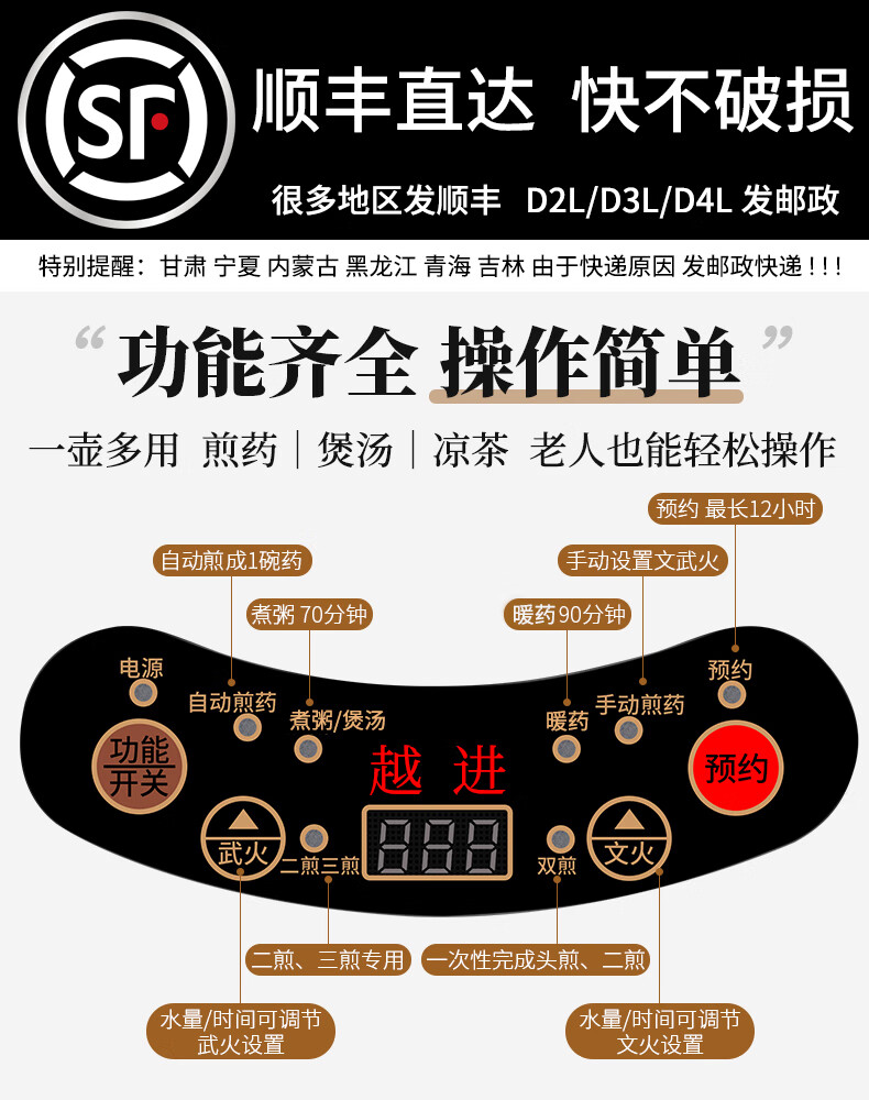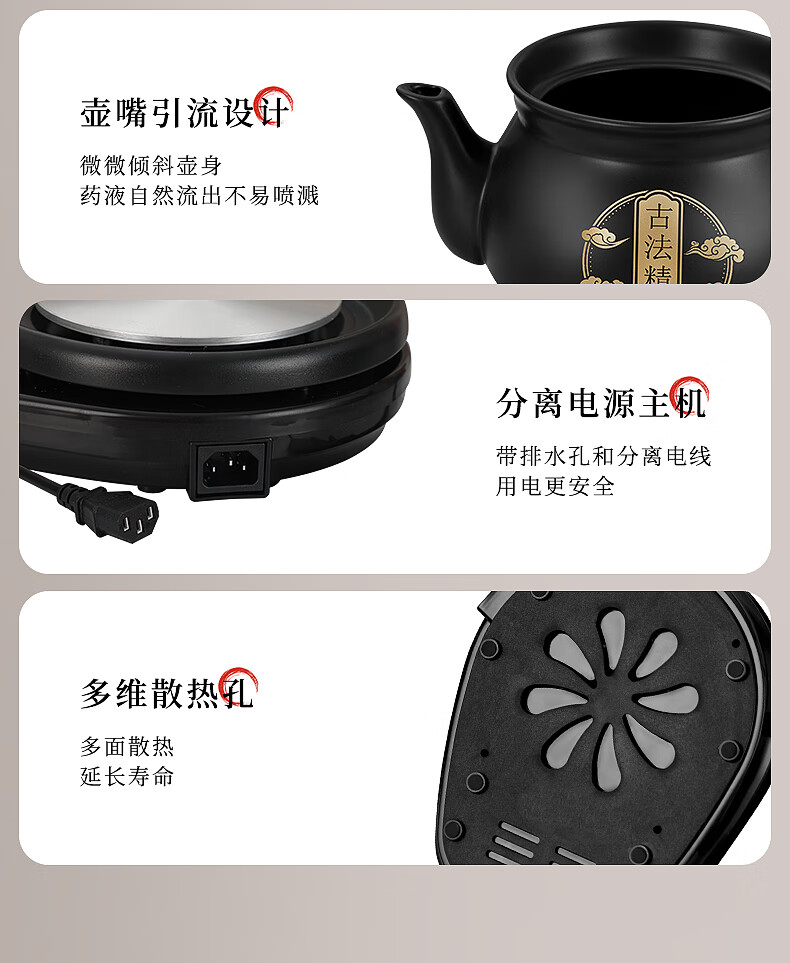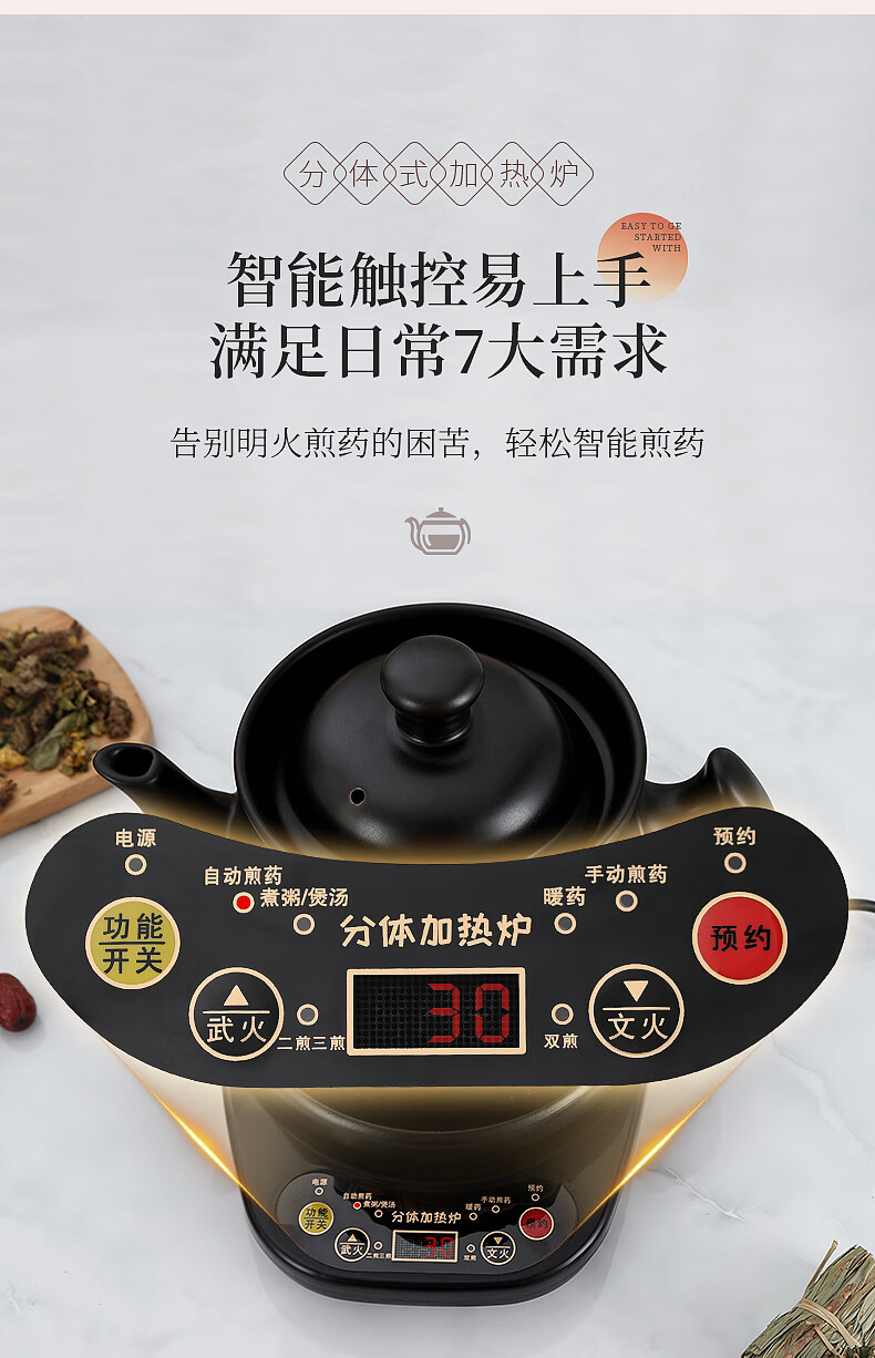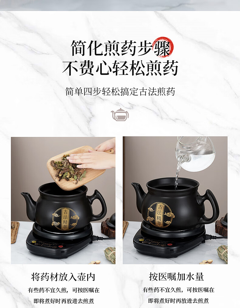 越进中药锅煎药壶熬药壶自动煎药壶熬药电砂锅熬中药家用煲药煎锅中药养生壶中医煮熬药罐砂锅炖药煲 D4L壶(整体陶瓷釉)底座 1.9L