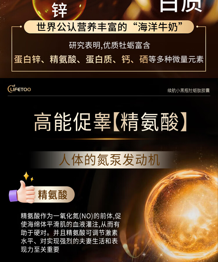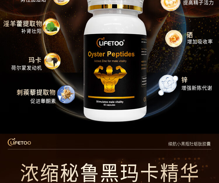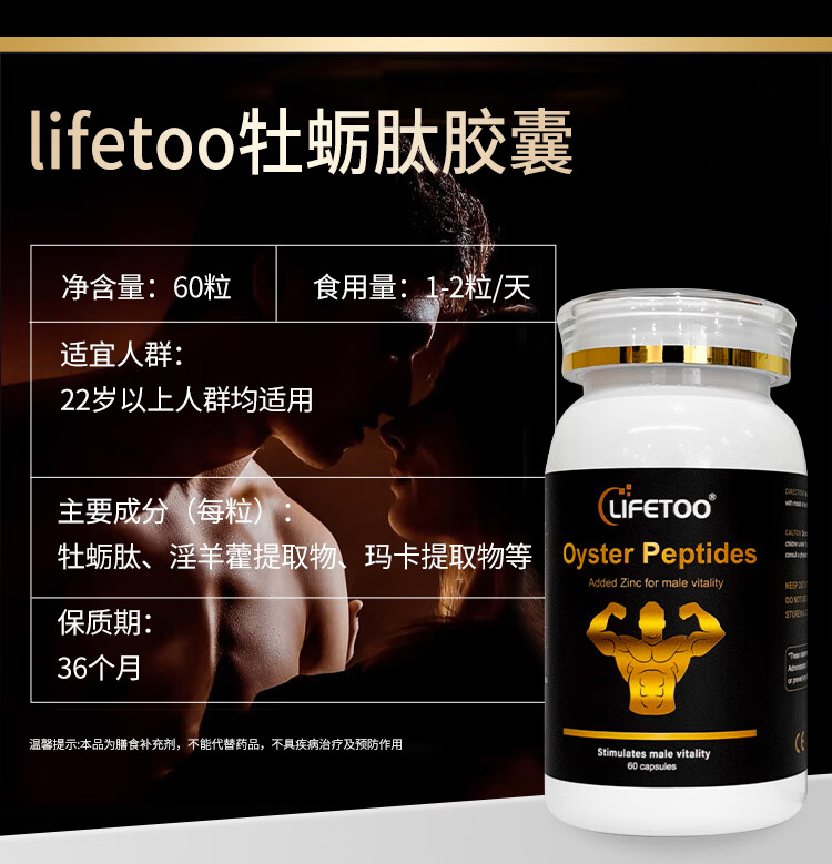 lifetoo男性牡蛎胶囊精胺酸补肾强精持久续航延时促睾丸阳痿早泄肾虚用药 6瓶装【根"源突破巅峰】买6瓶送2瓶同款
