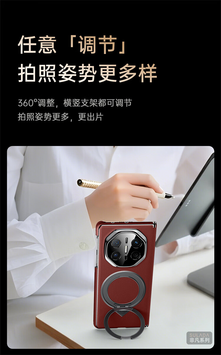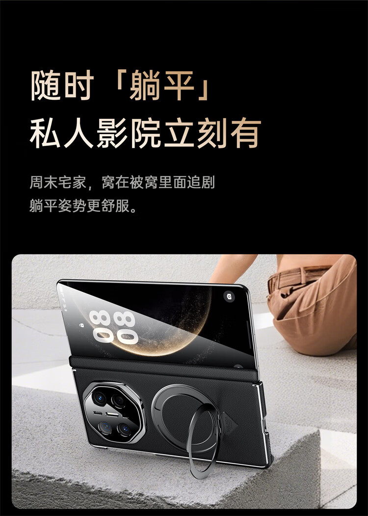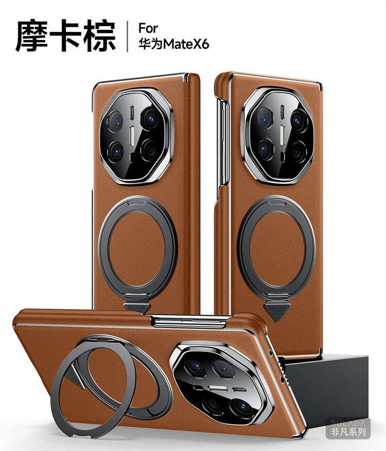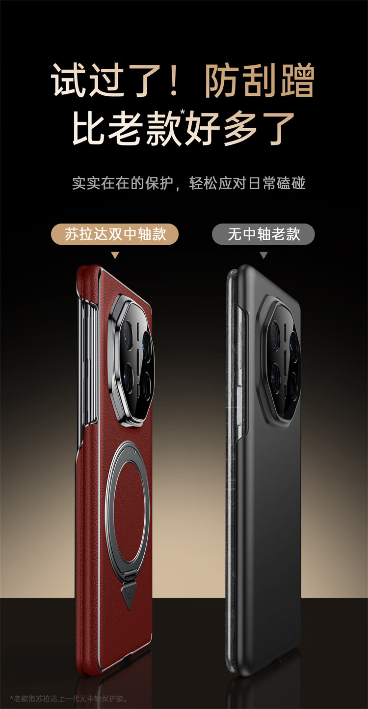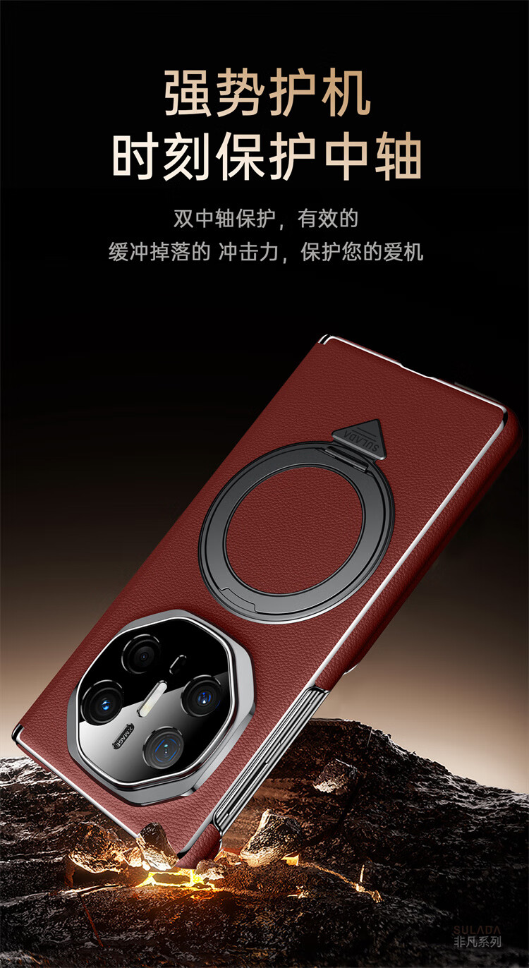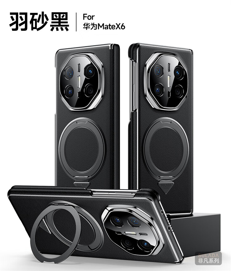 苏拉达适用华为MateX6/X5手机壳真皮旋转支架XTs防摔磁吸双中轴X3保护套 【羽砂黑】双边中轴全包后壳 华为 Mate X6 典藏版