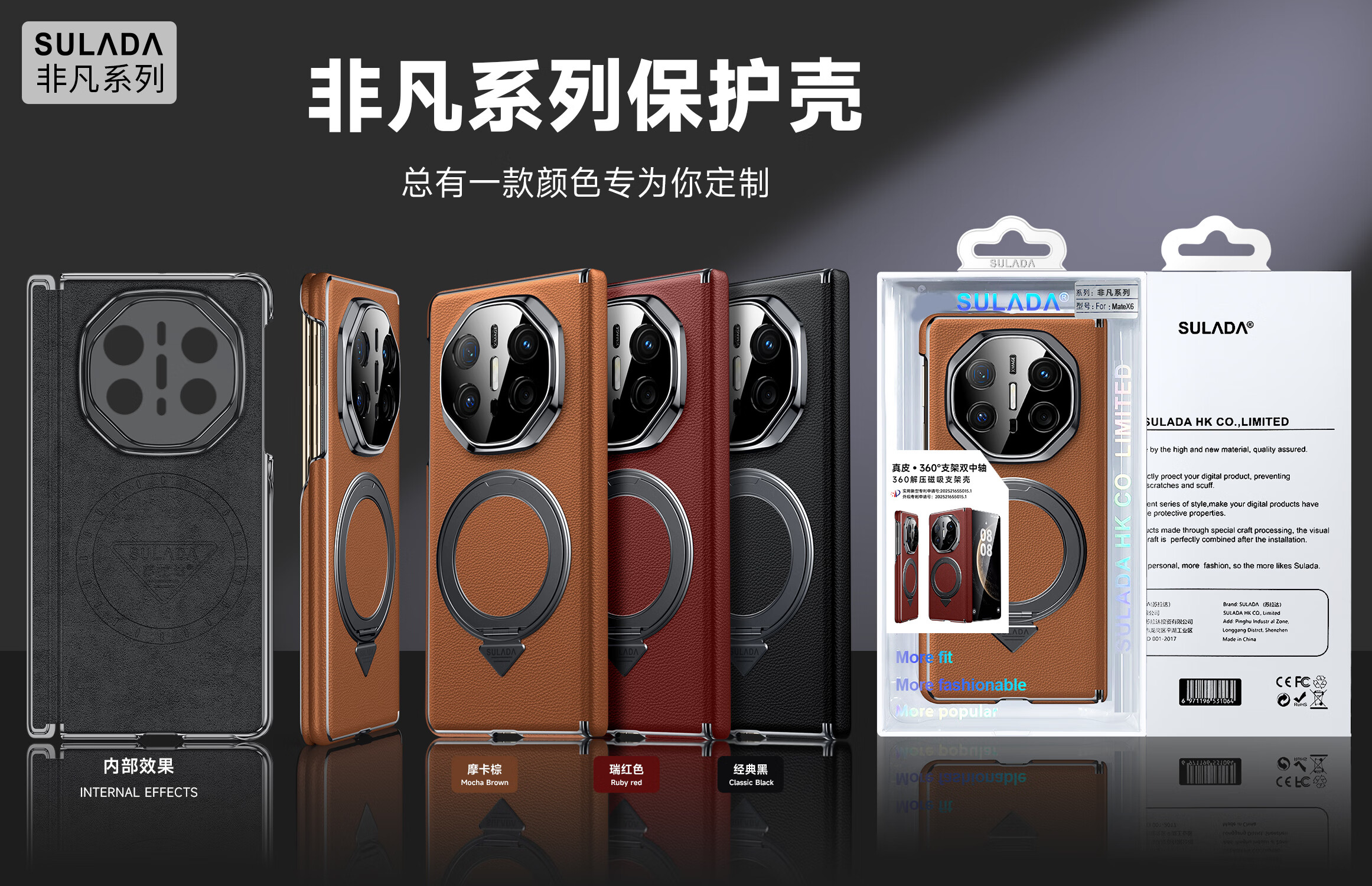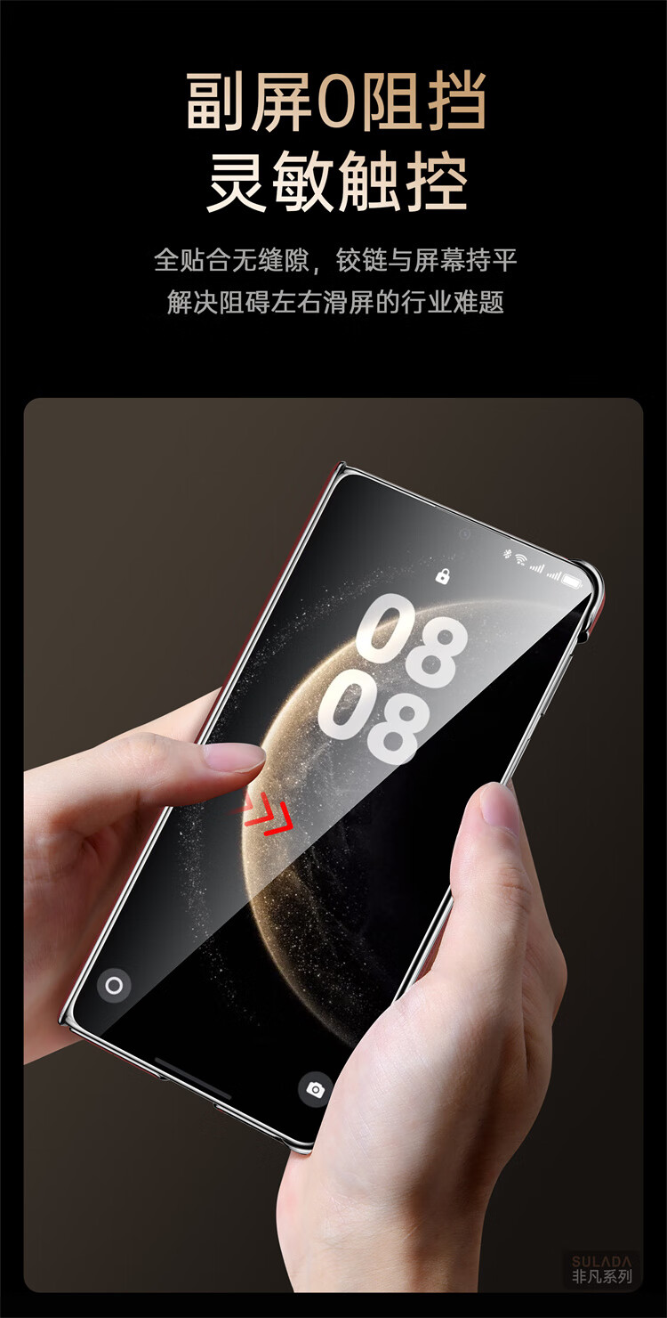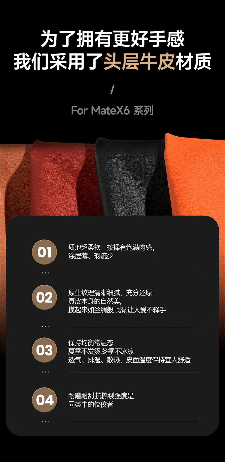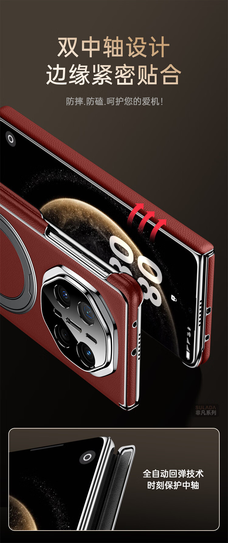 苏拉达适用华为MateX6/X5手机壳真皮旋转支架XTs防摔磁吸双中轴X3保护套 【羽砂黑】双边中轴全包后壳 华为 Mate X6 典藏版