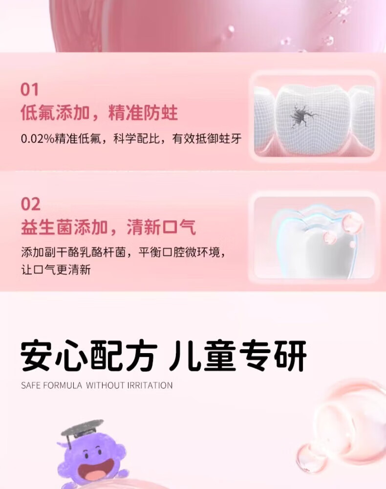 舒客宝贝儿童漱口水牙膏3-6-8-12岁防蛀抗糖护齿按压式温和不刺激官方正品 按压式大容量牙膏150g*2