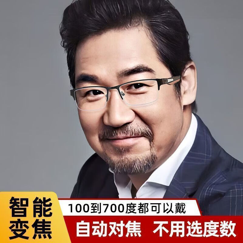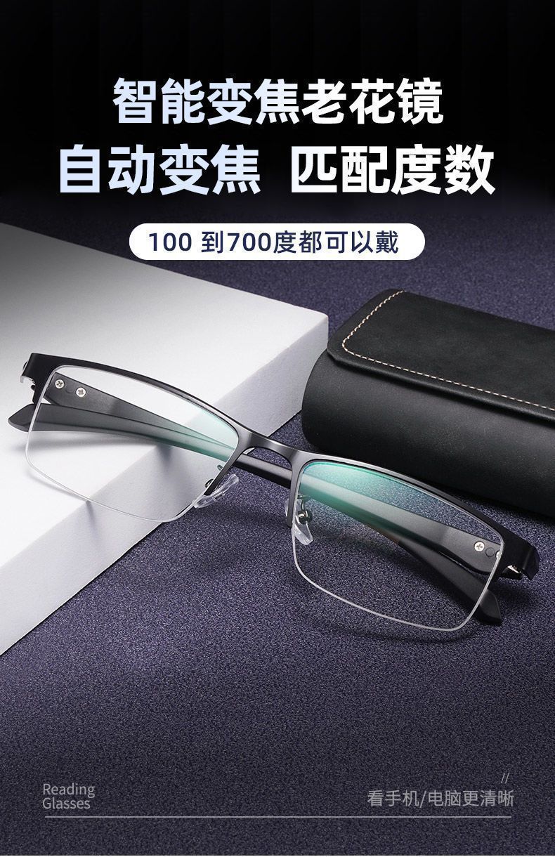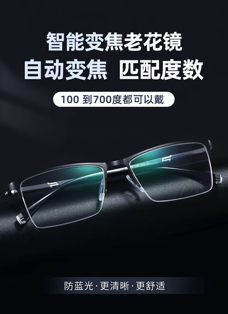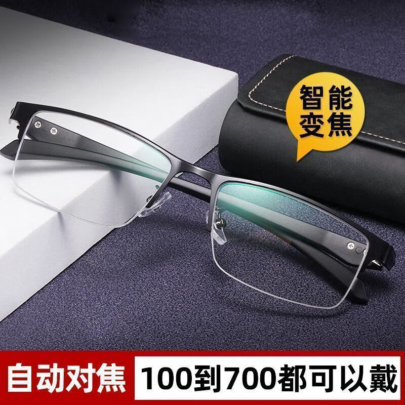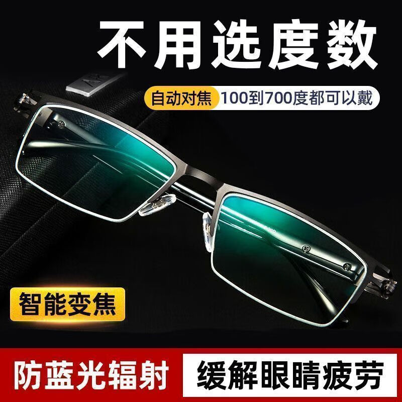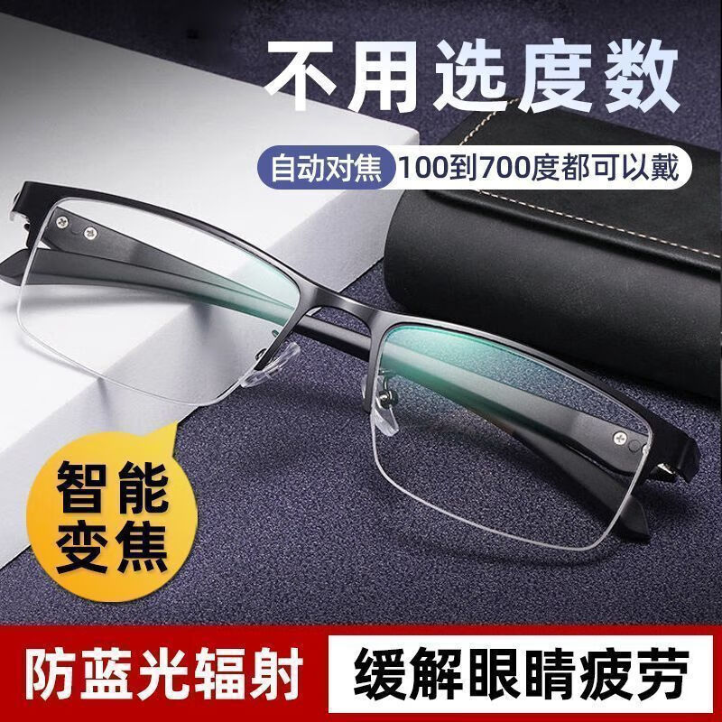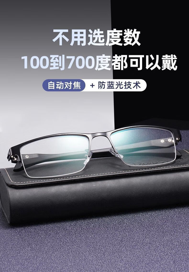 通用超清视力防蓝光眼镜 看远看近自动对焦新型老花镜蒋超大为老花眼 【100-700度自动变焦】+眼镜盒眼镜布