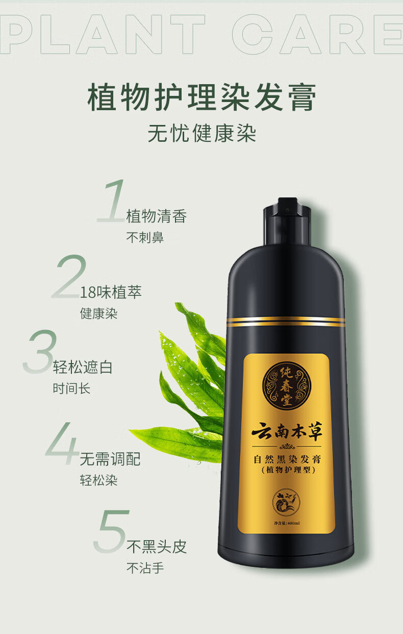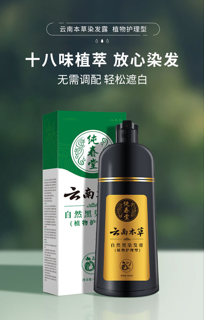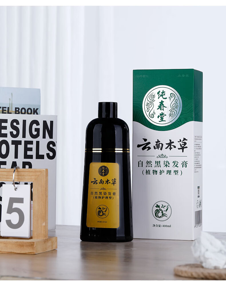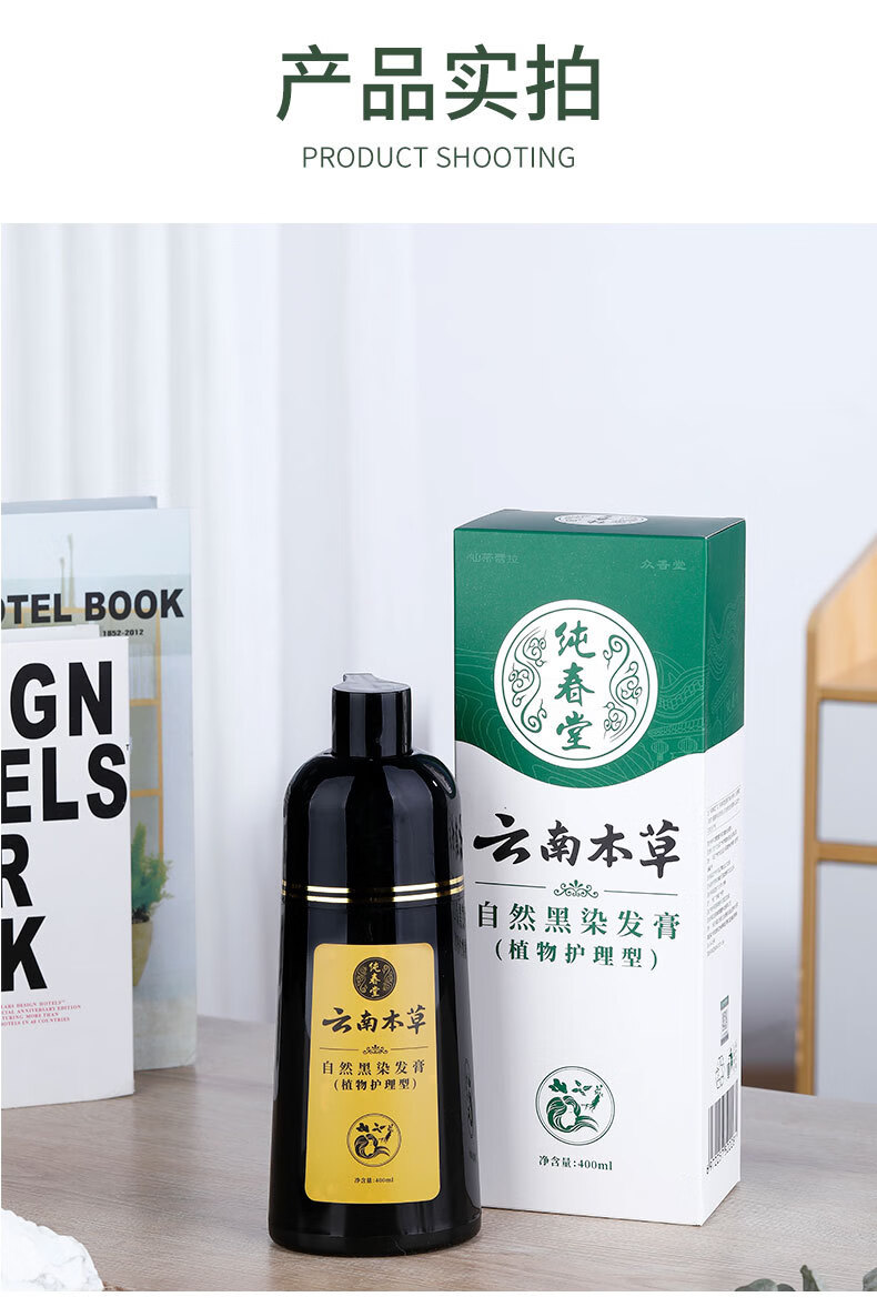 纯春堂染发剂植物黑发泡泡染一洗染黑草本染发膏 棕色染发膏400ml(不含赠品)