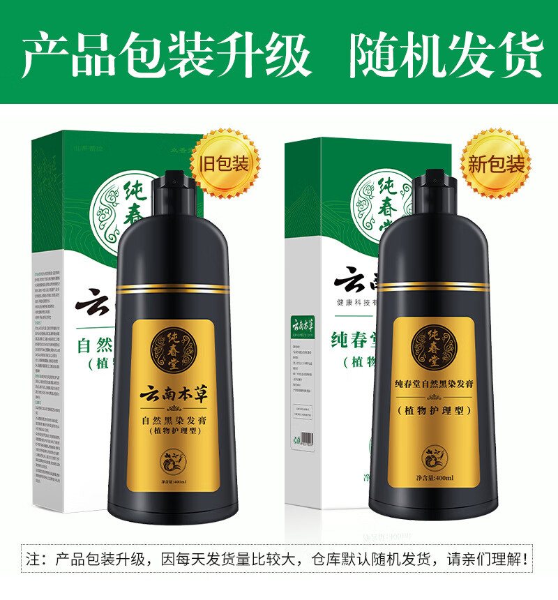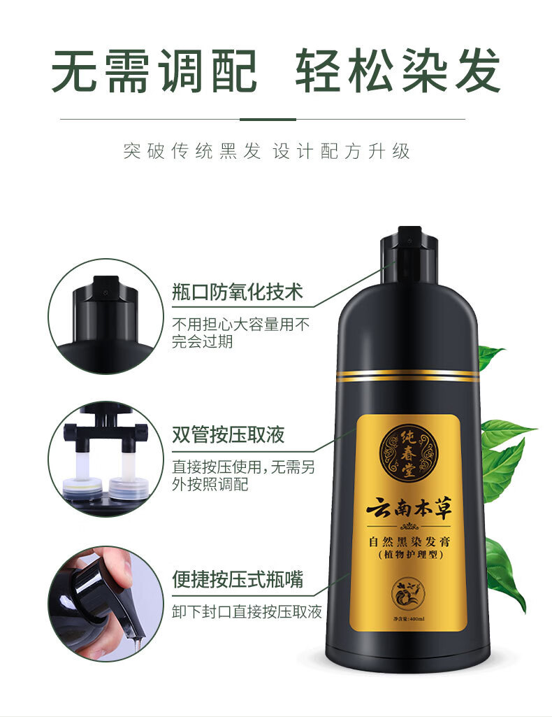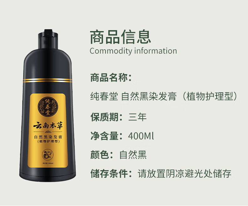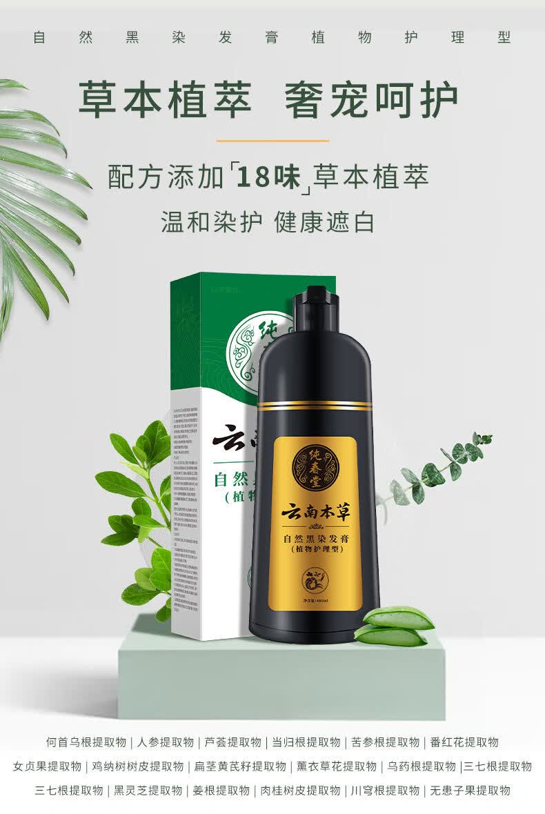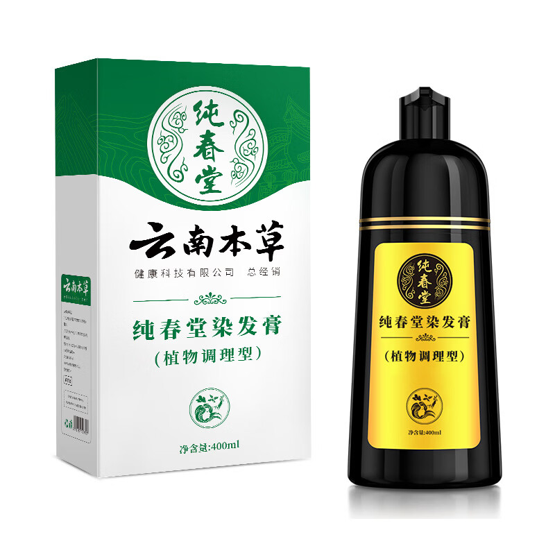 纯春堂染发剂植物黑发泡泡染一洗染黑草本染发膏 棕色染发膏400ml(不含赠品)