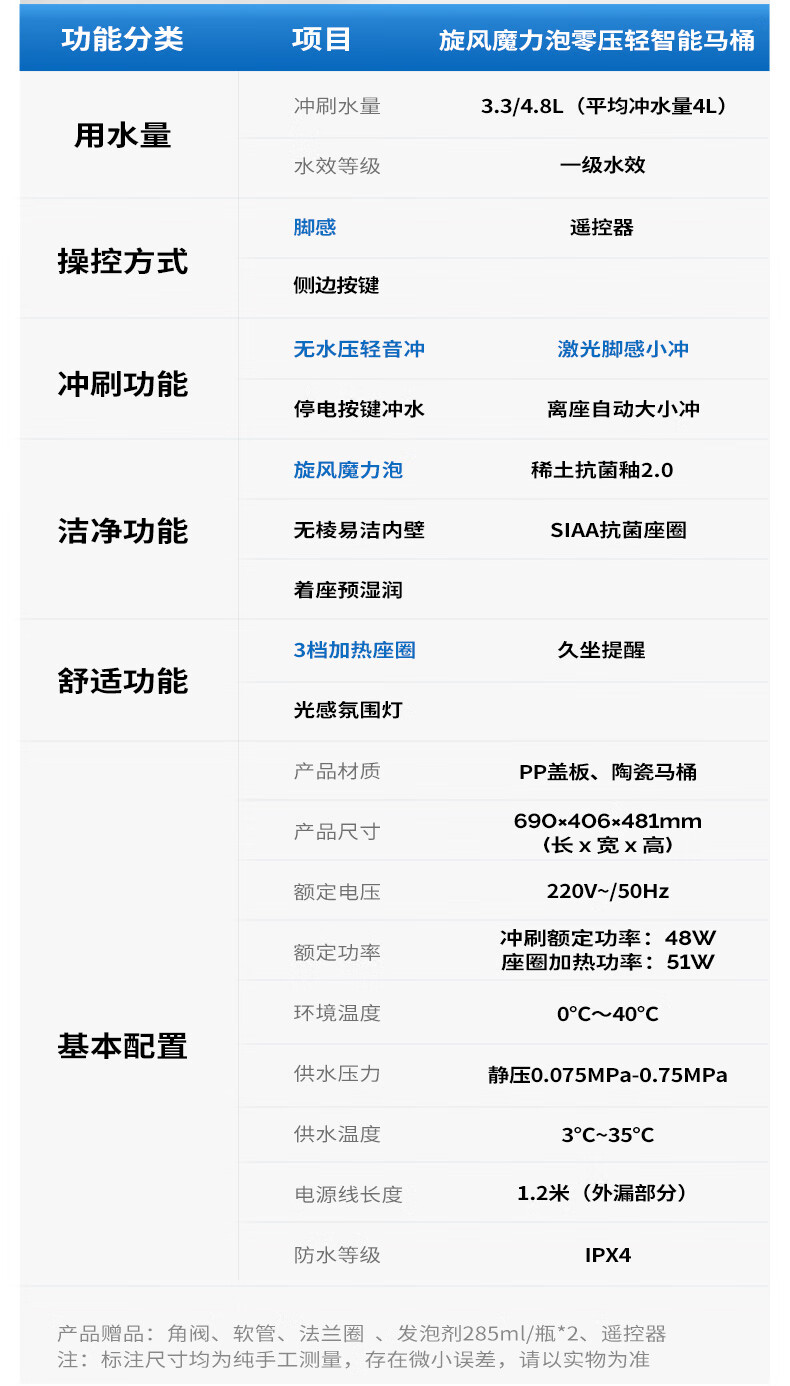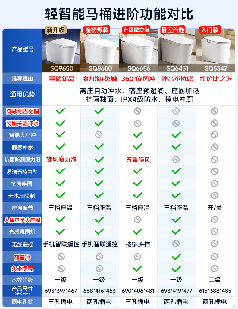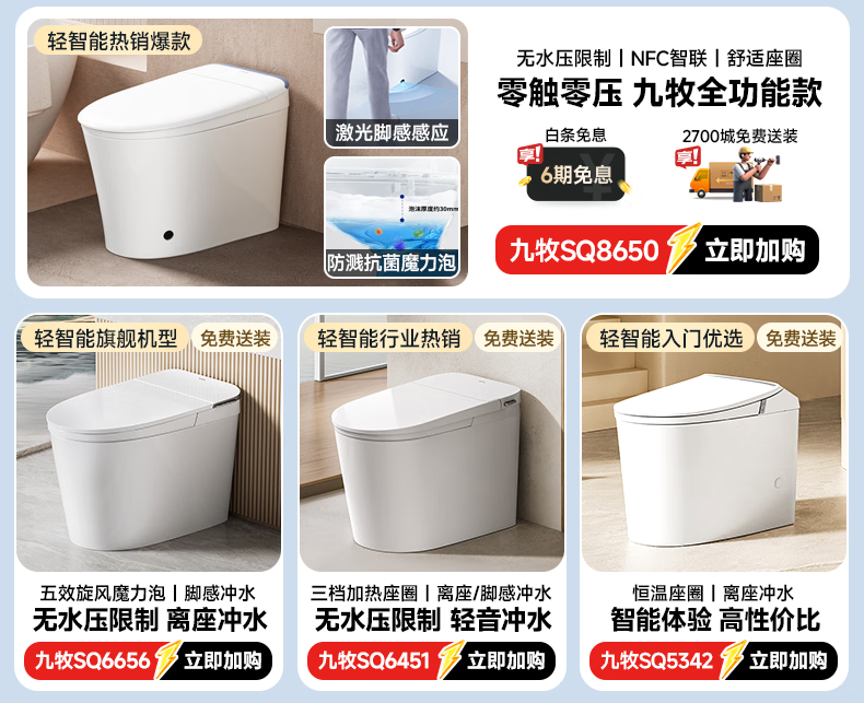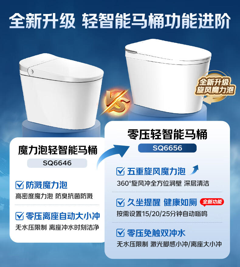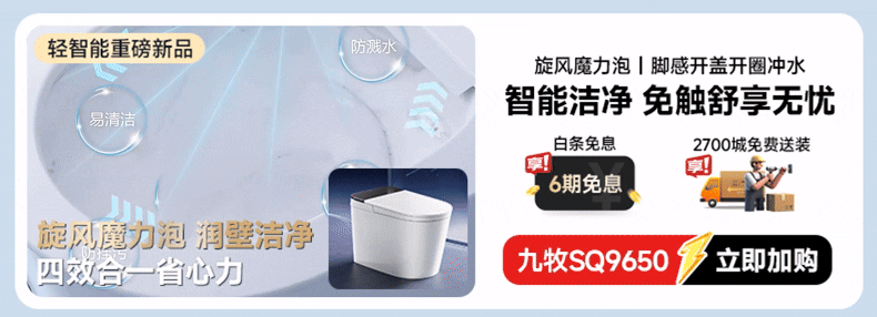 九牧(JOMOO)轻智能马桶无水压限制魔力泡无棱易洁免触脚感抗菌坐便器6646升级 旋风魔力泡免触脚感SQ6656 305/300mm (295-390以内选择)