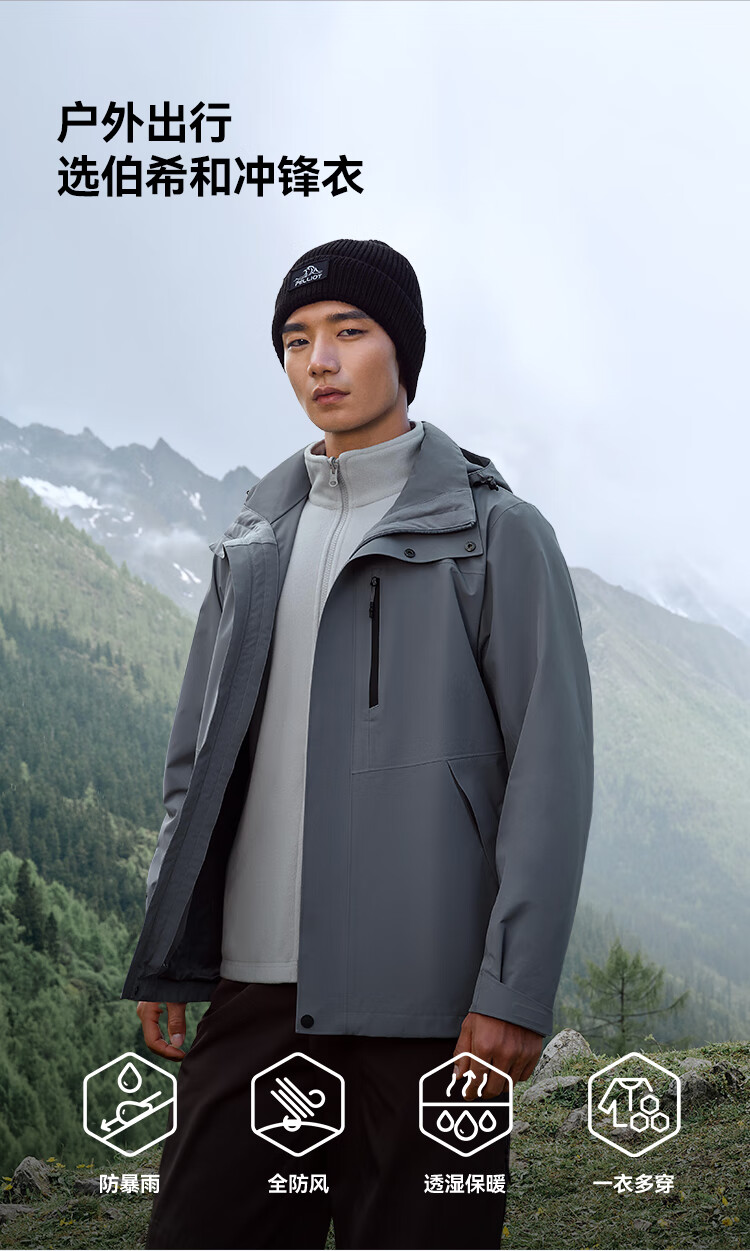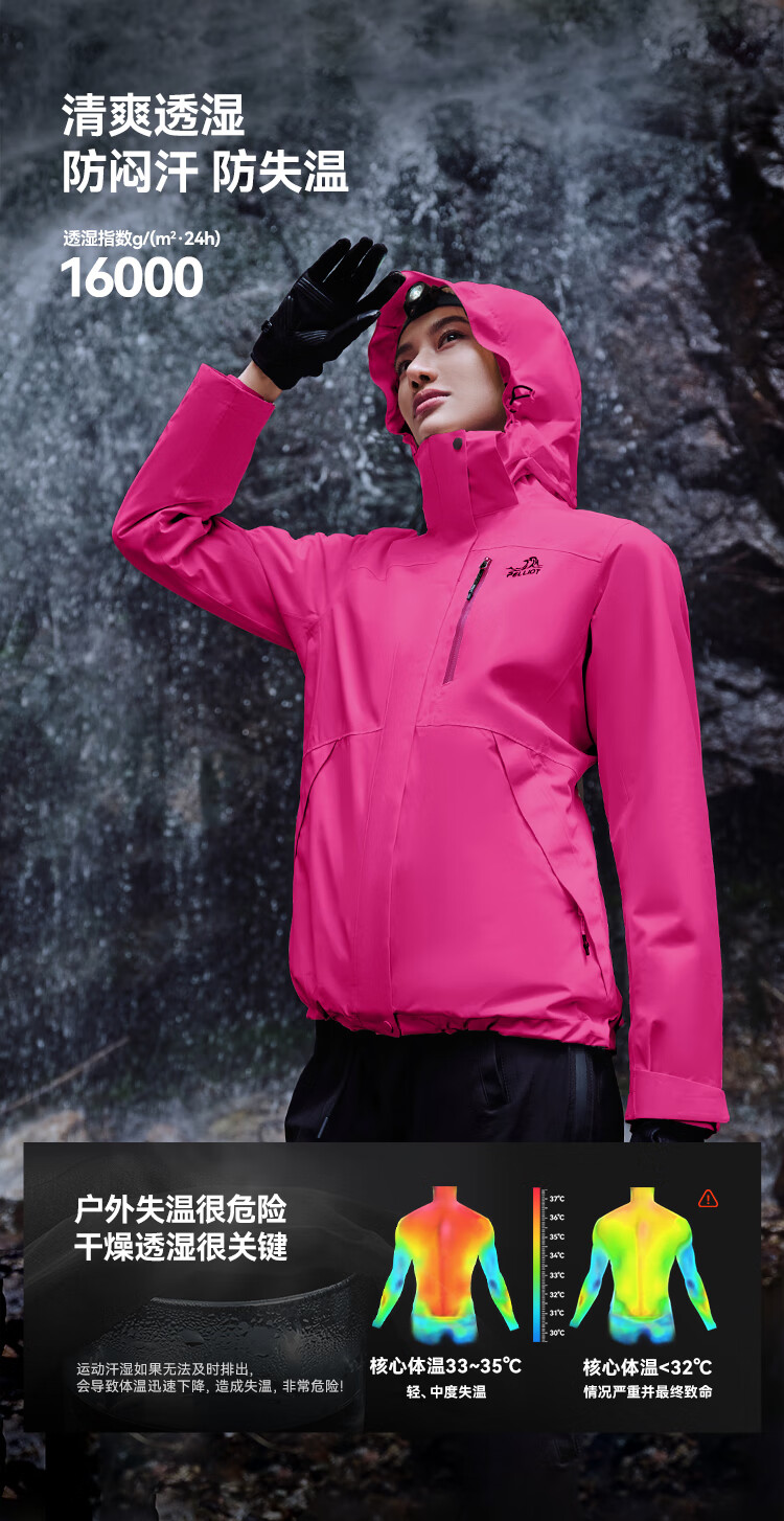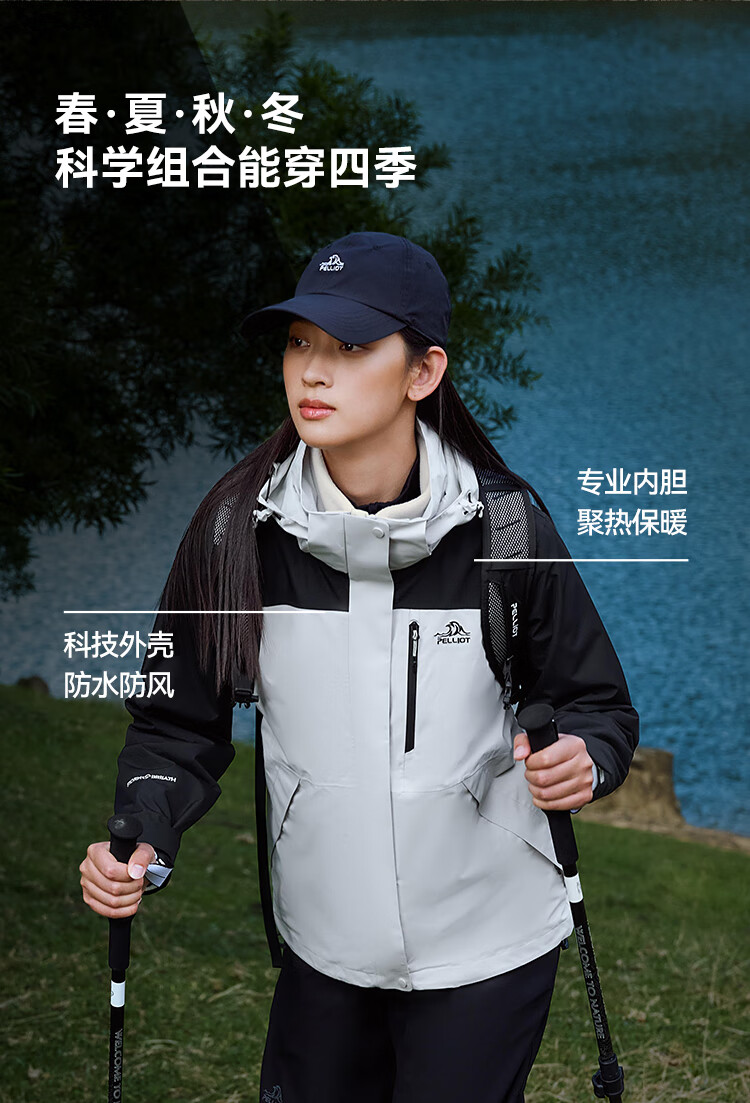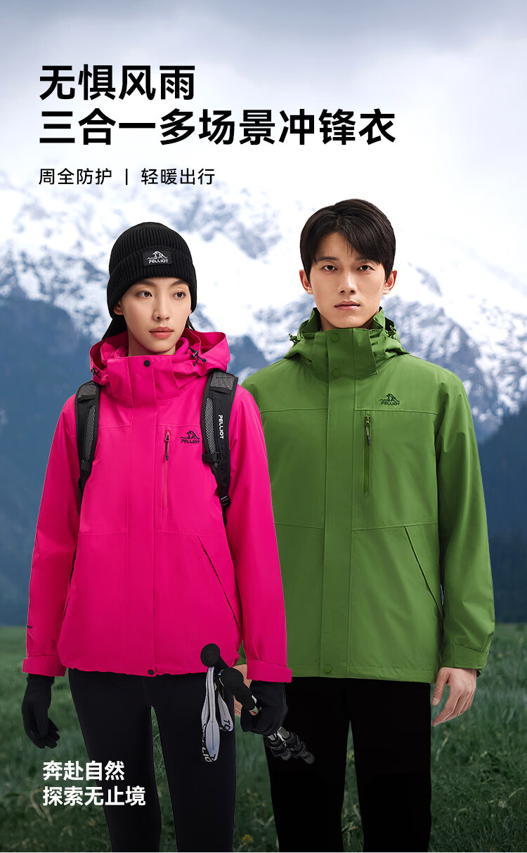 伯希和(Pelliot)【山野经典2.0】冲锋衣三合一男女秋冬户外保暖外套12340106粉M