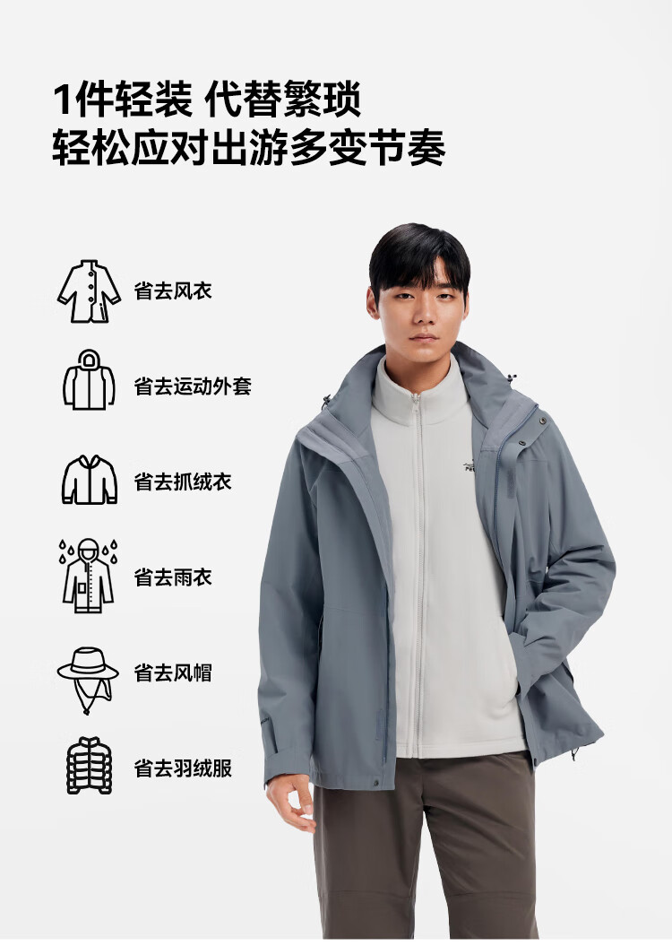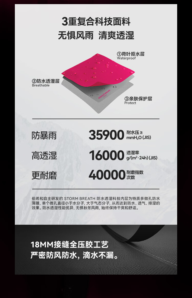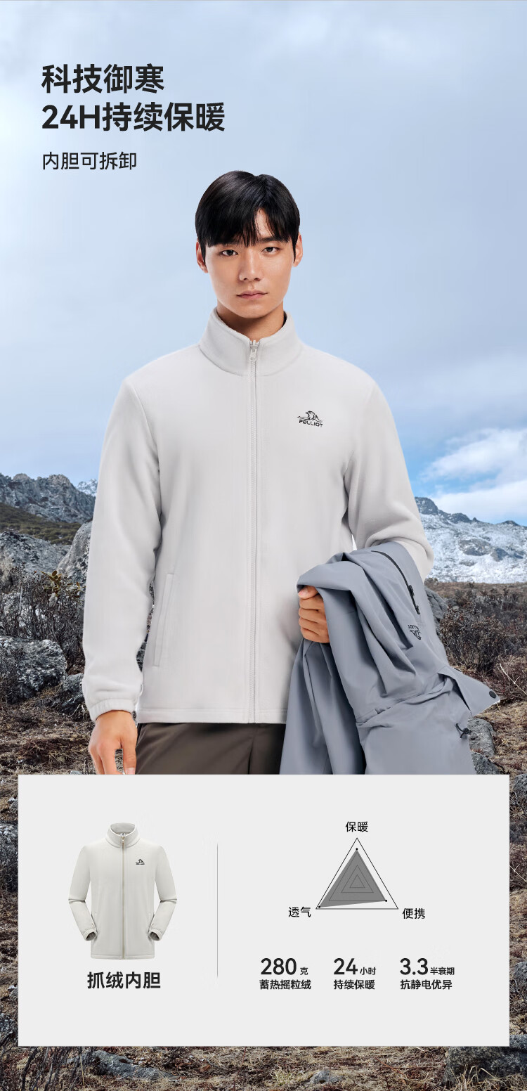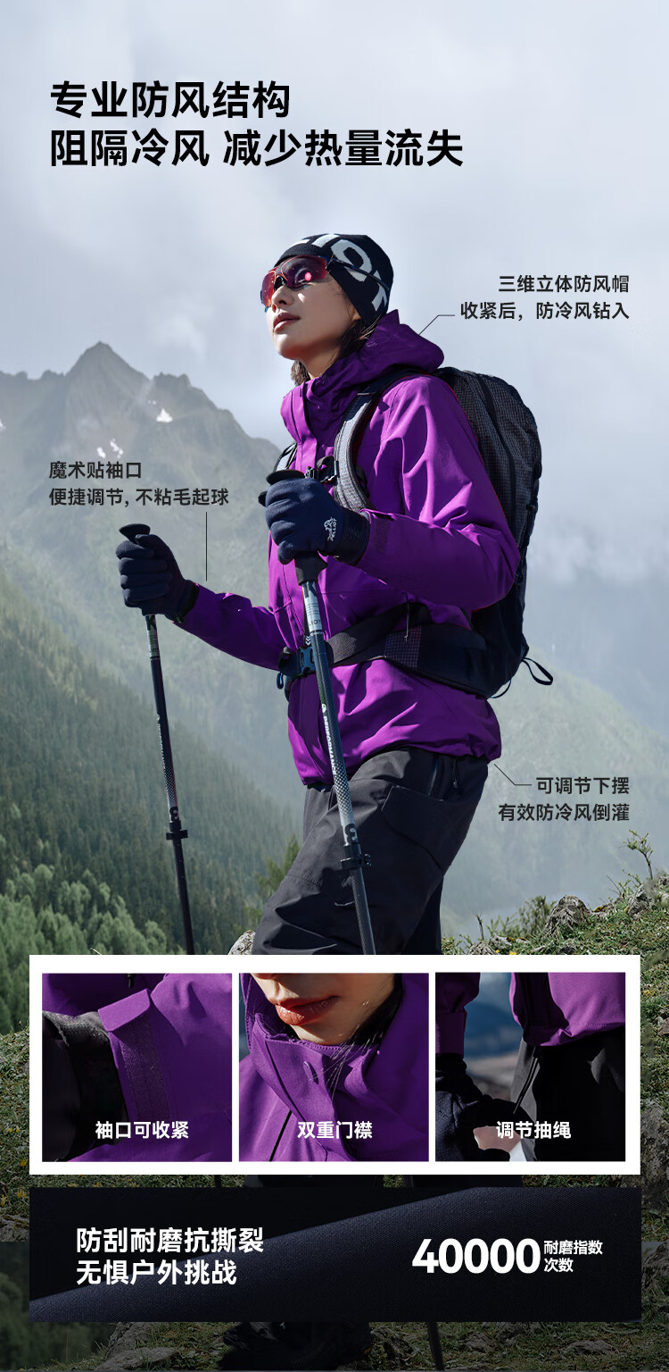 伯希和(Pelliot)【山野经典2.0】冲锋衣三合一男女秋冬户外保暖外套12340106粉M