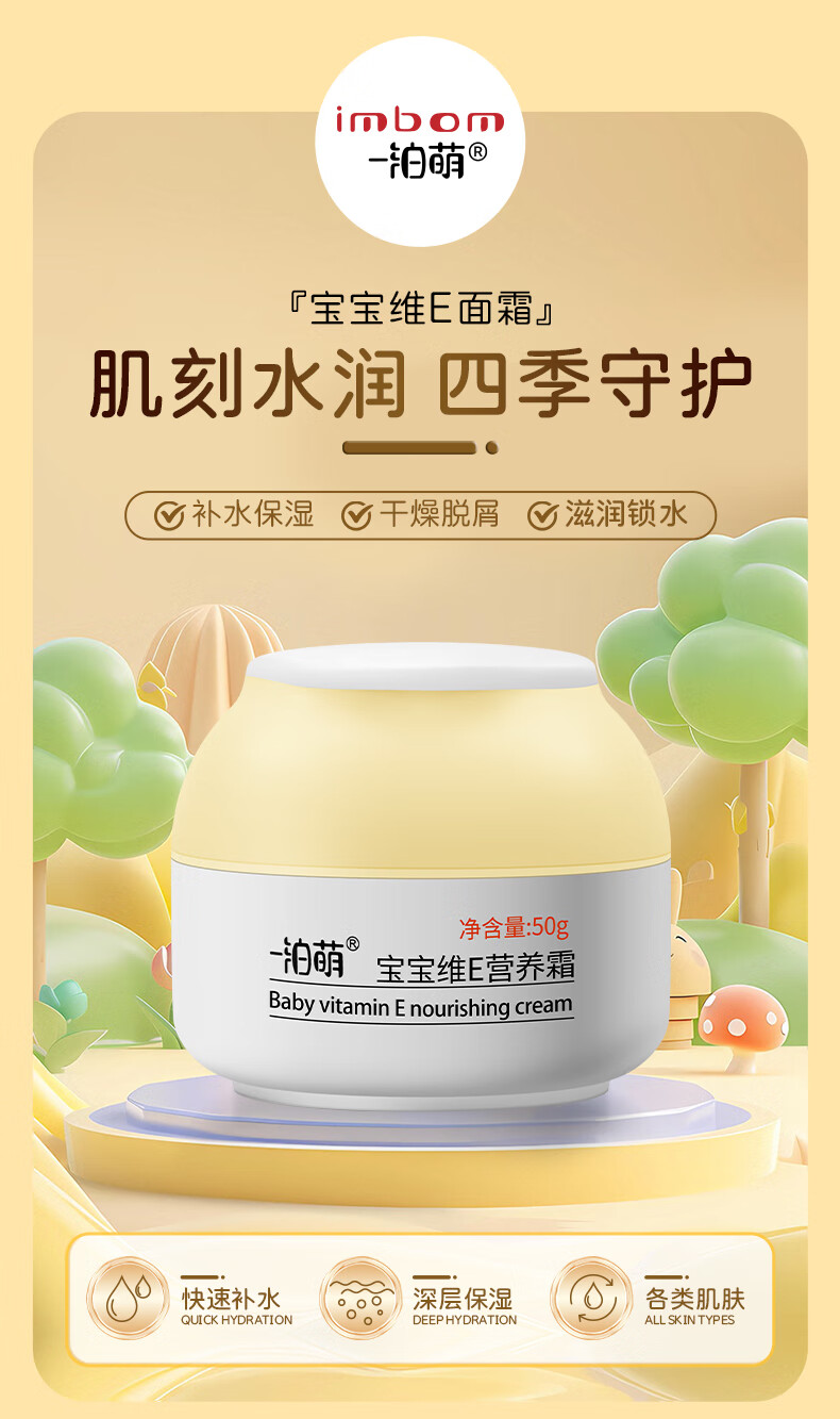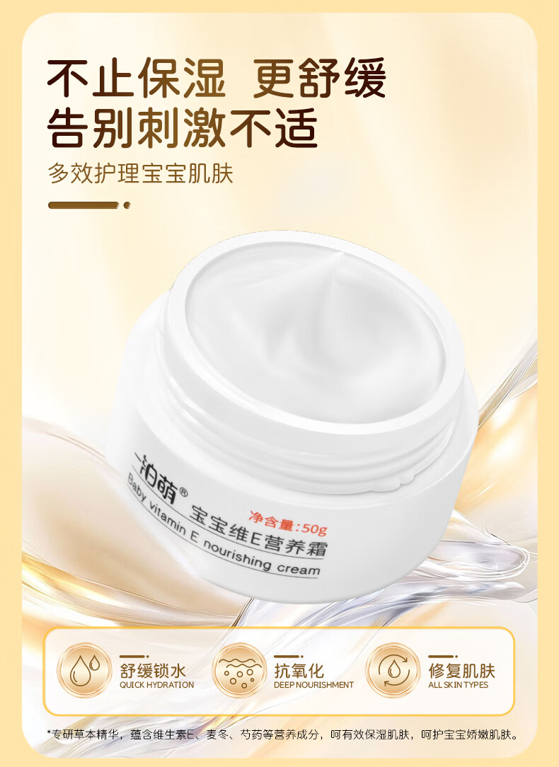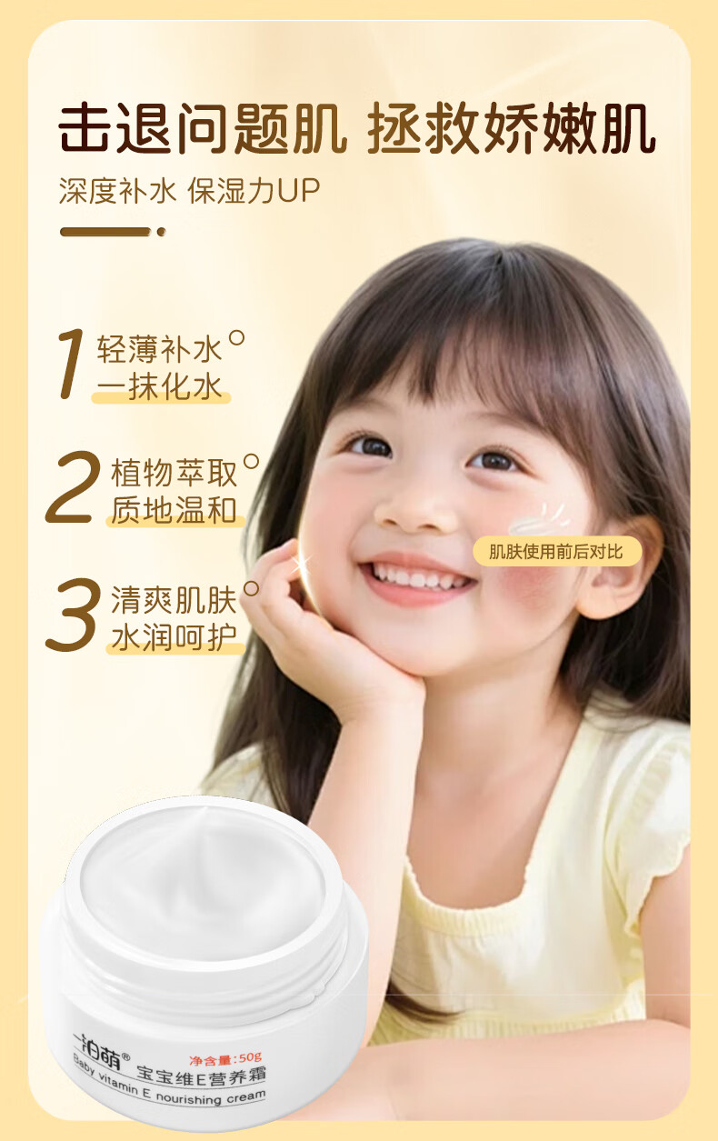 一泊萌宝宝维E霜儿童面霜婴儿保湿霜补水润肤保湿霜身体乳宝宝面霜秋冬 维E营养霜50g*3