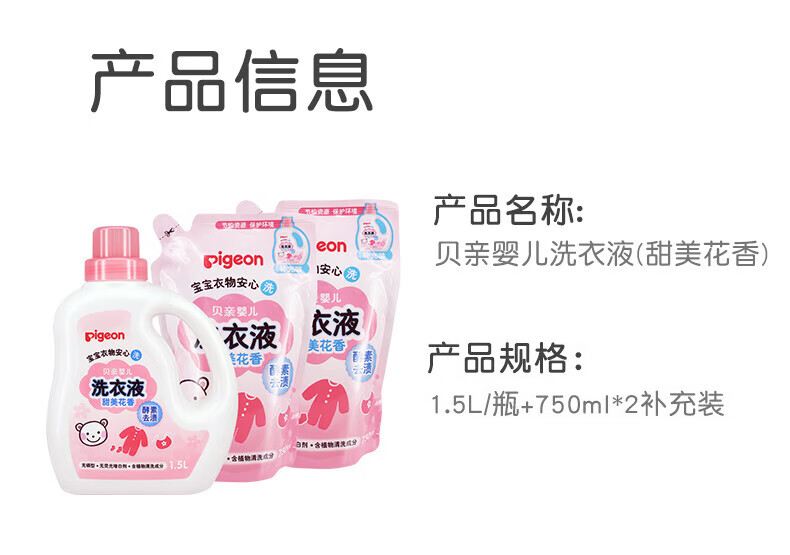 贝亲(Pigeon)婴儿宝宝儿童专用酵素去污洗衣液温和植萃(甜美花香)3L囤货装