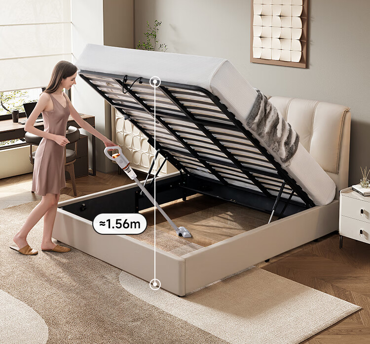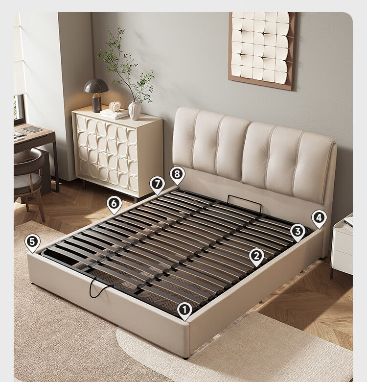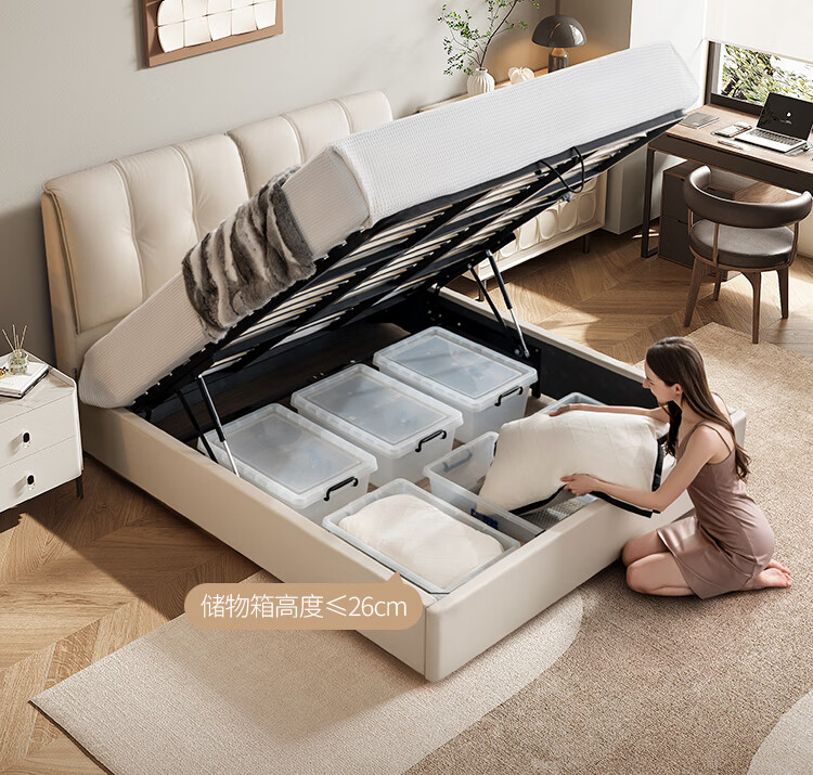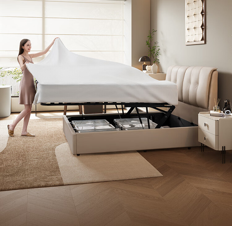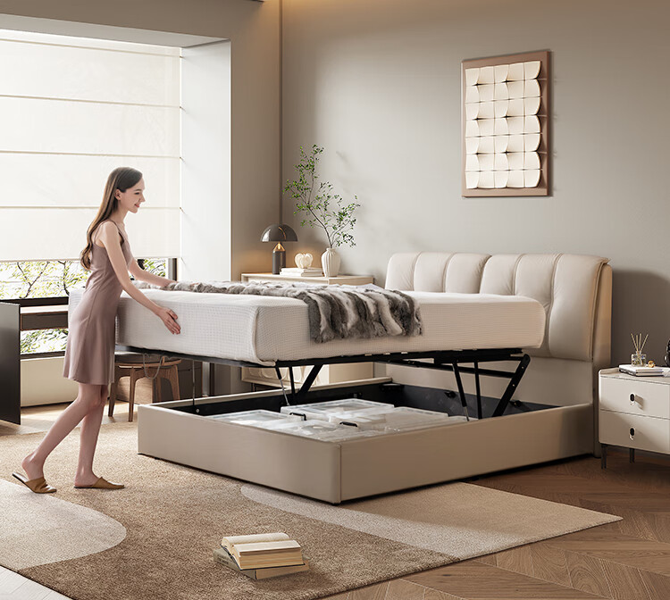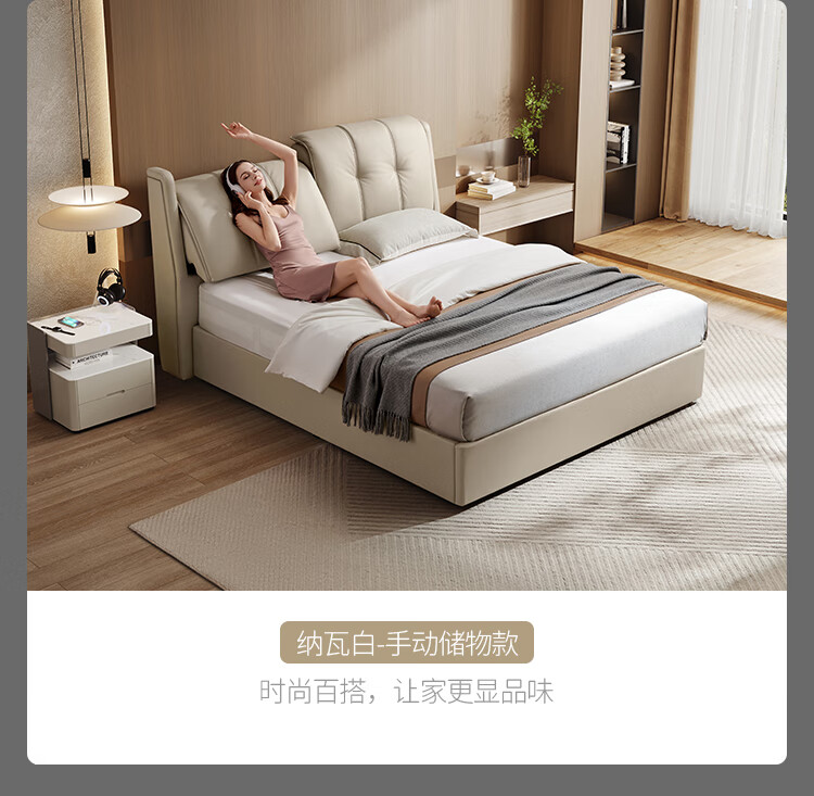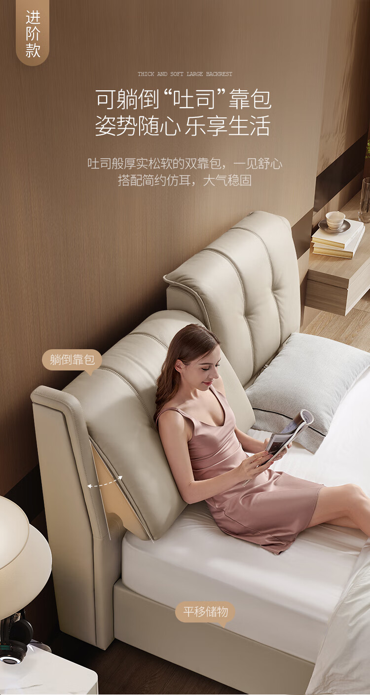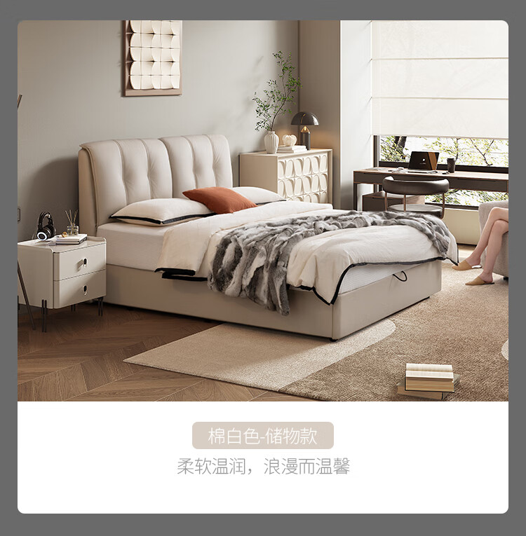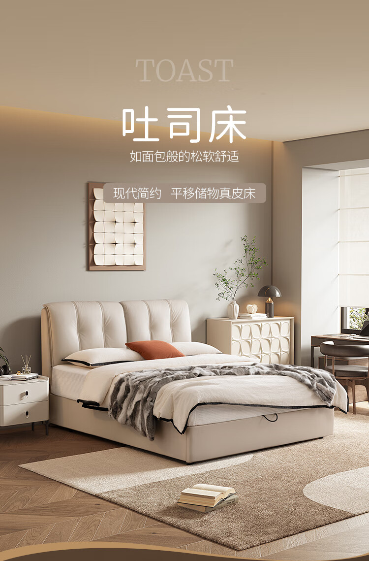 芝华仕(CHEERS)五星皮床现代主卧室大床双人真皮储物软包吐司床芝华士C265白1.8m