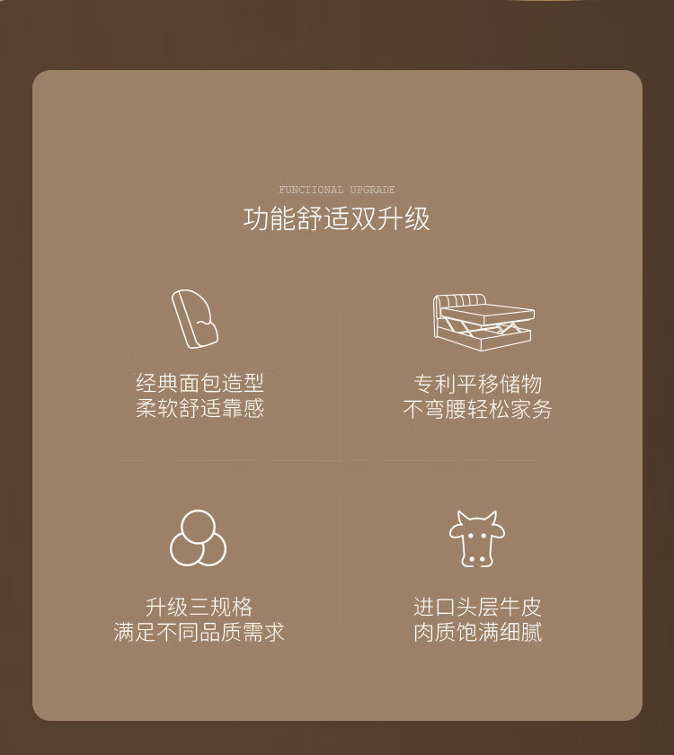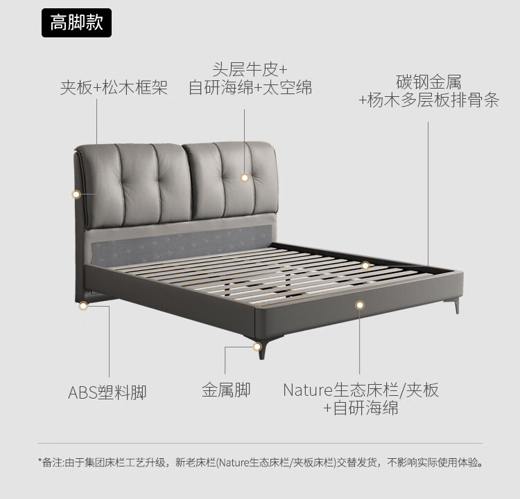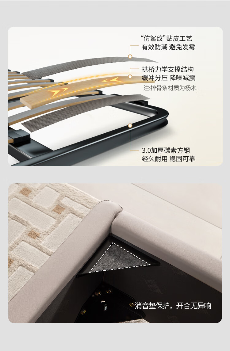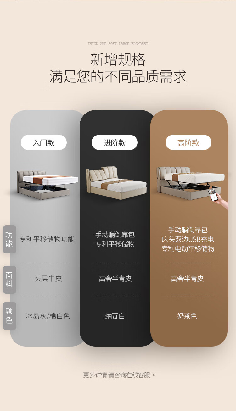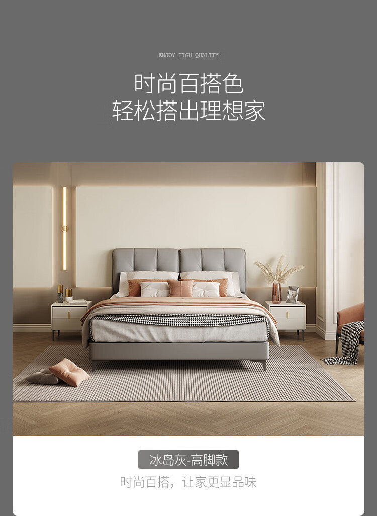 芝华仕(CHEERS)五星皮床现代主卧室大床双人真皮储物软包吐司床芝华士C265灰1.8m