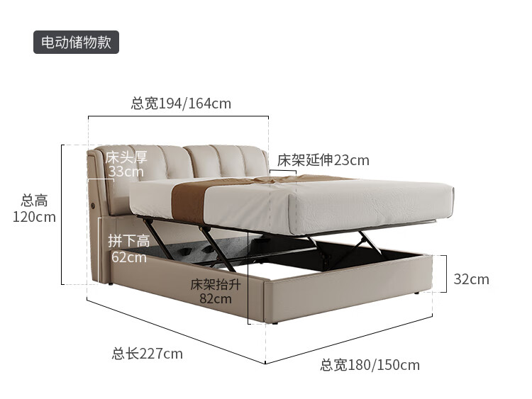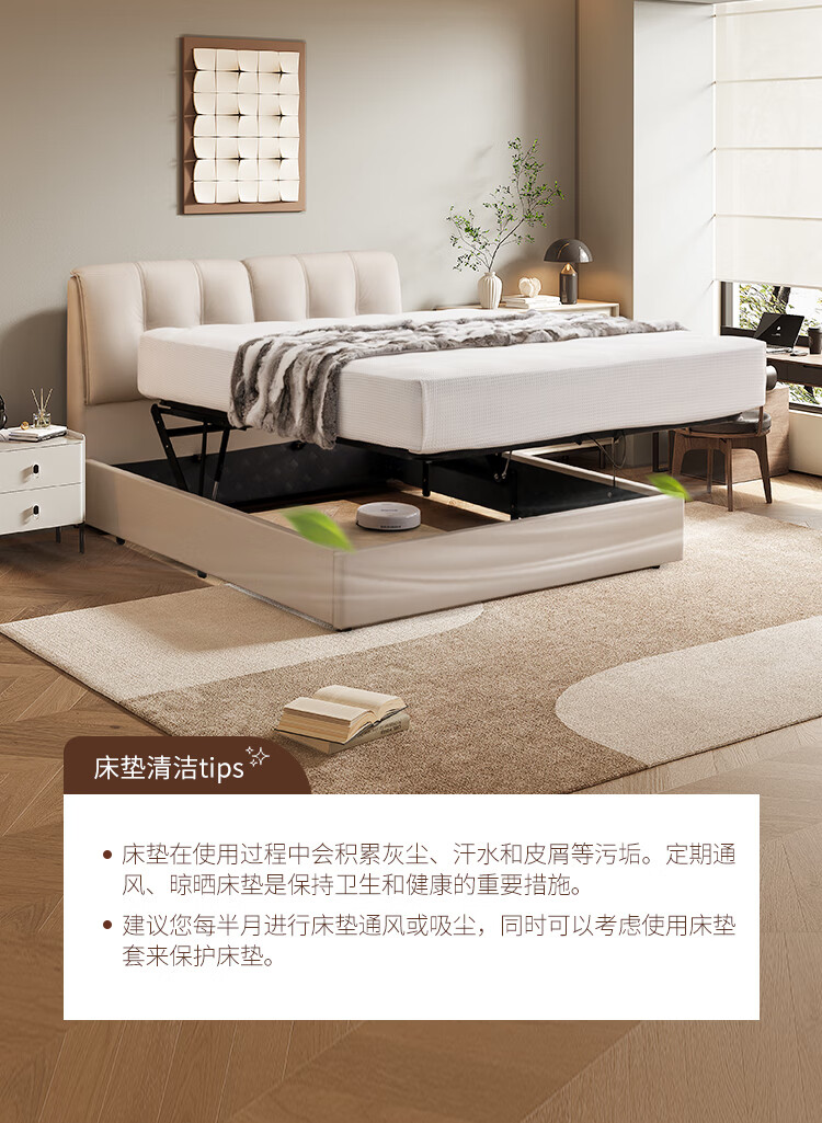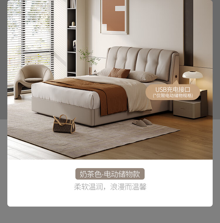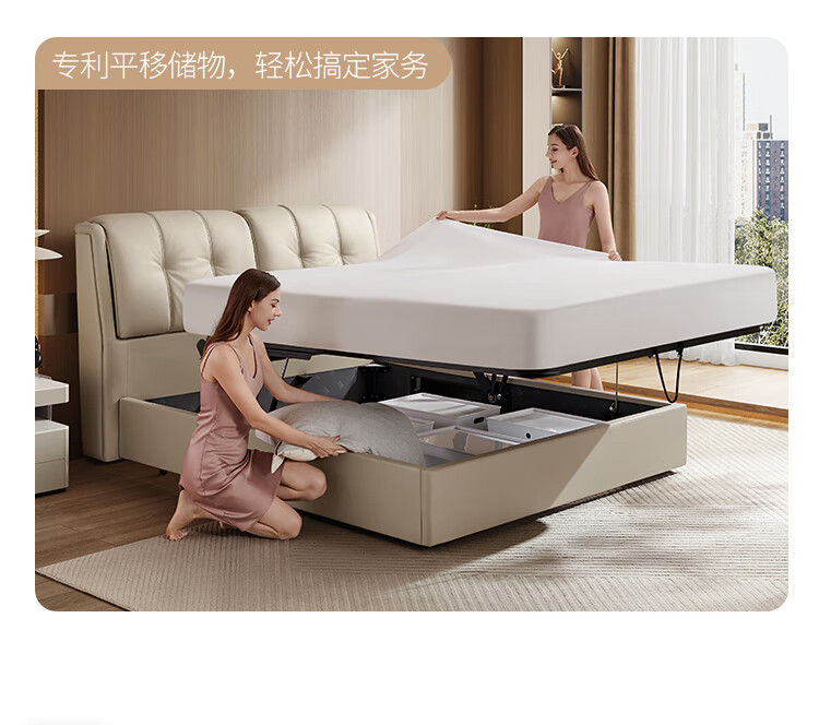 芝华仕(CHEERS)五星皮床现代简约软包主卧室电动储物带床垫芝华士C284茶1.8M