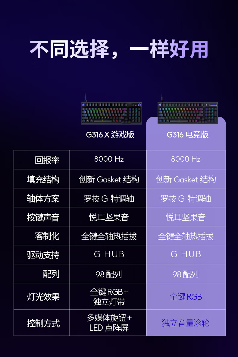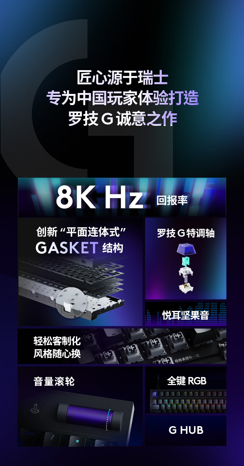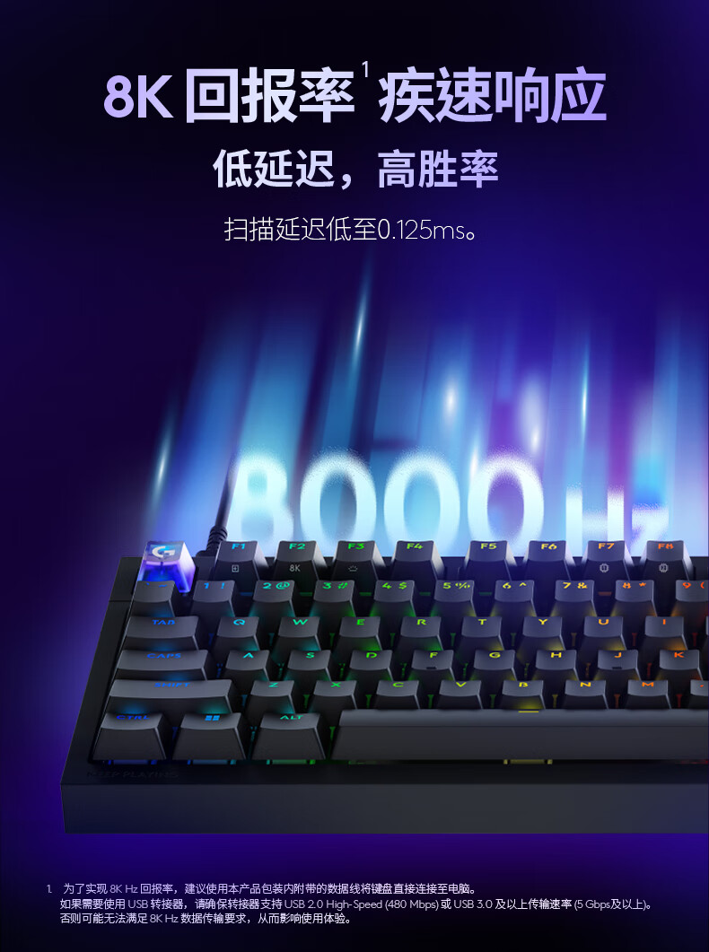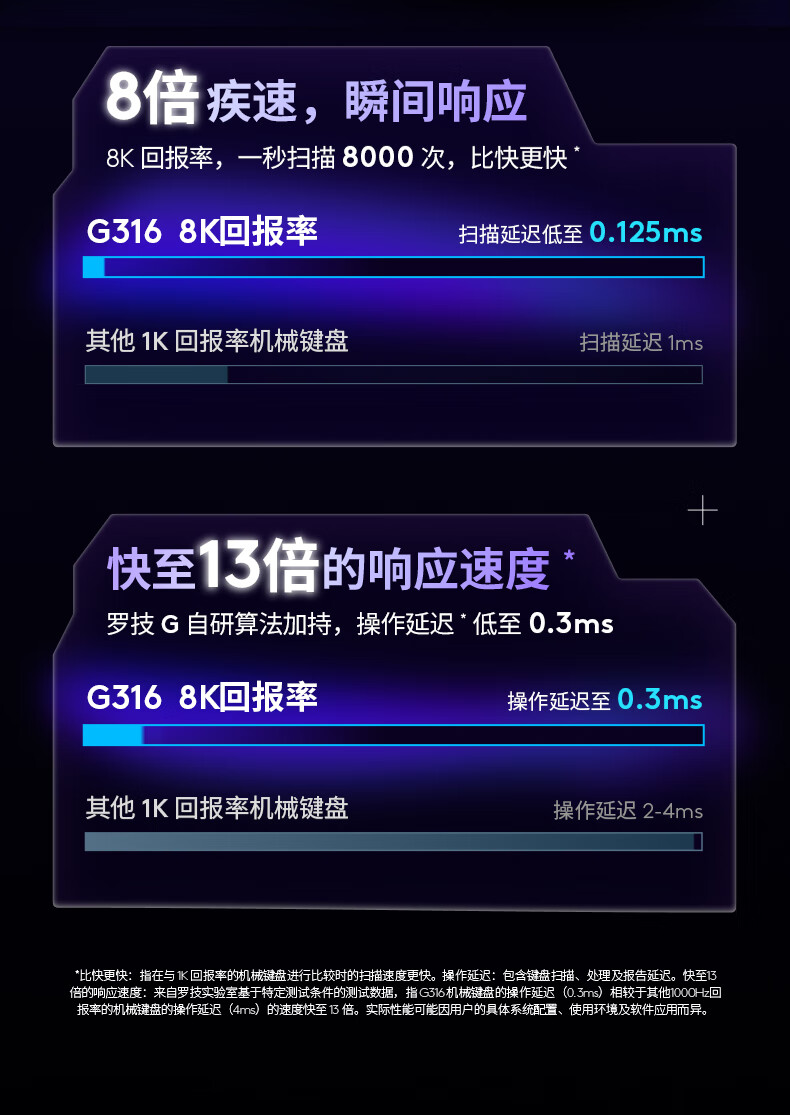 罗技(G)闪逸龙 G316电竞版 8K客制化游戏键盘黑色L轴(线性轴 顺滑连贯)