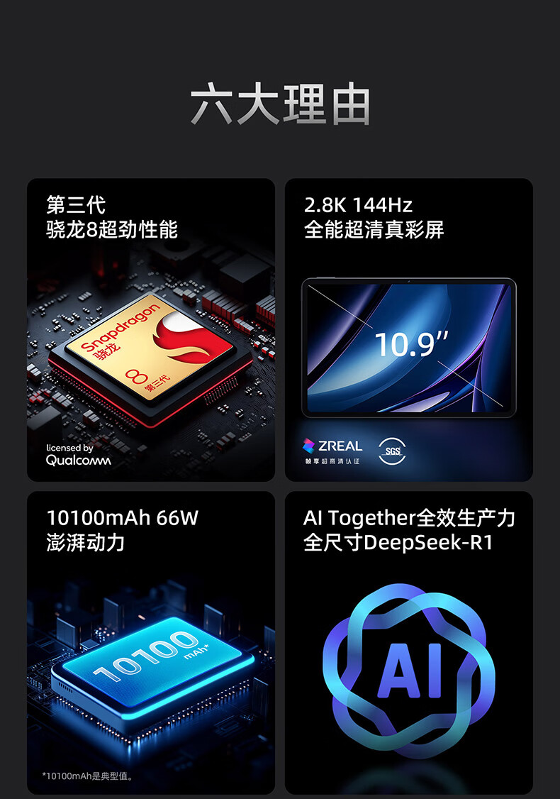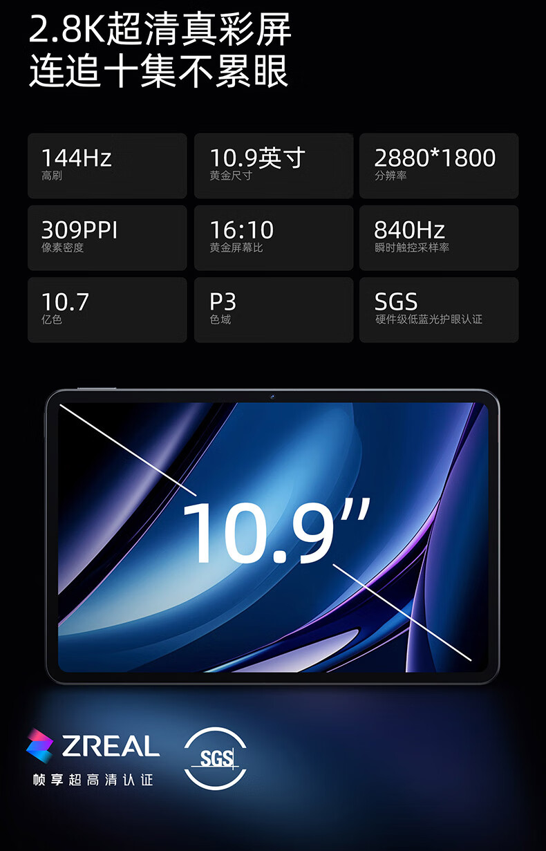 努比亚(nubia)平板Pro 10.9英寸平板电脑 骁龙8 Gen3 2.8K超清真彩屏 10100mAh 16GB+1T 钛空黑