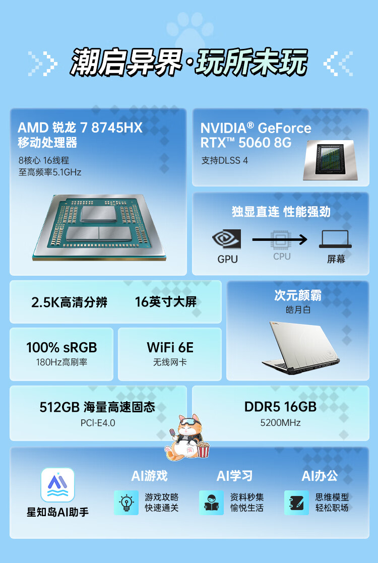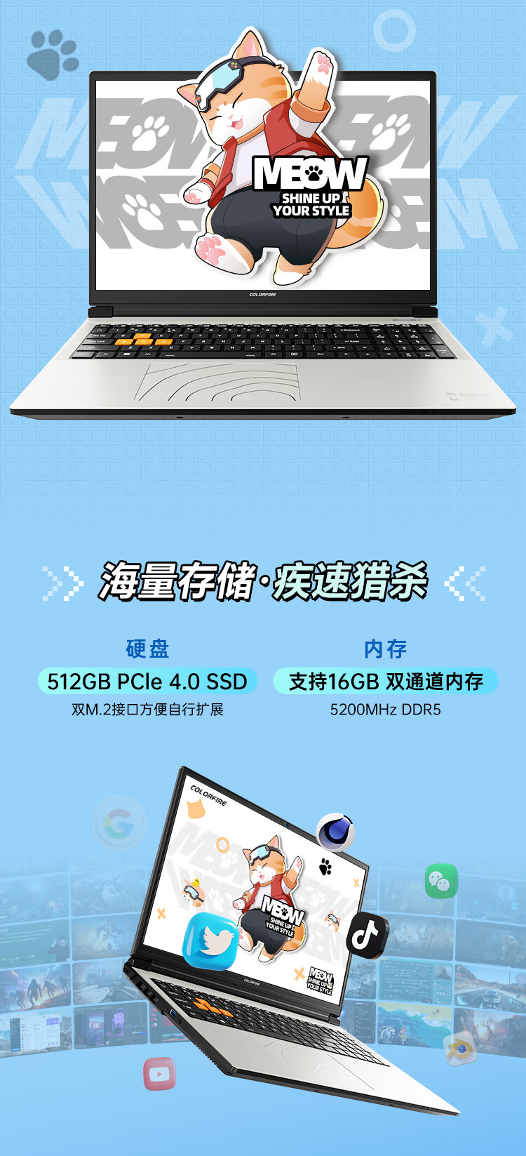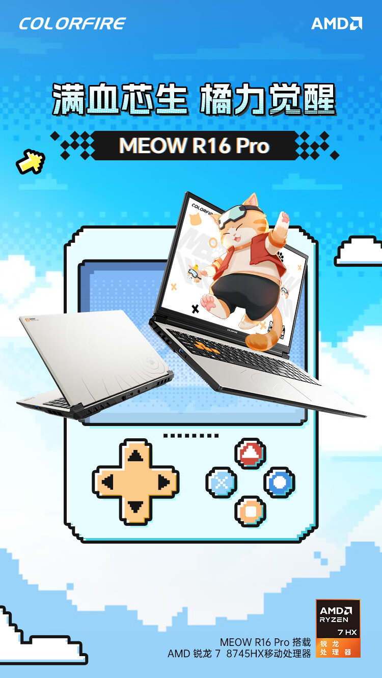 七彩虹(Colorful) MEOW 橘宝 R16 Pro 七彩虹16英寸锐龙R7游戏本电脑 (R7-8745HX 16G 512G RTX5060 2.5K 180Hz)