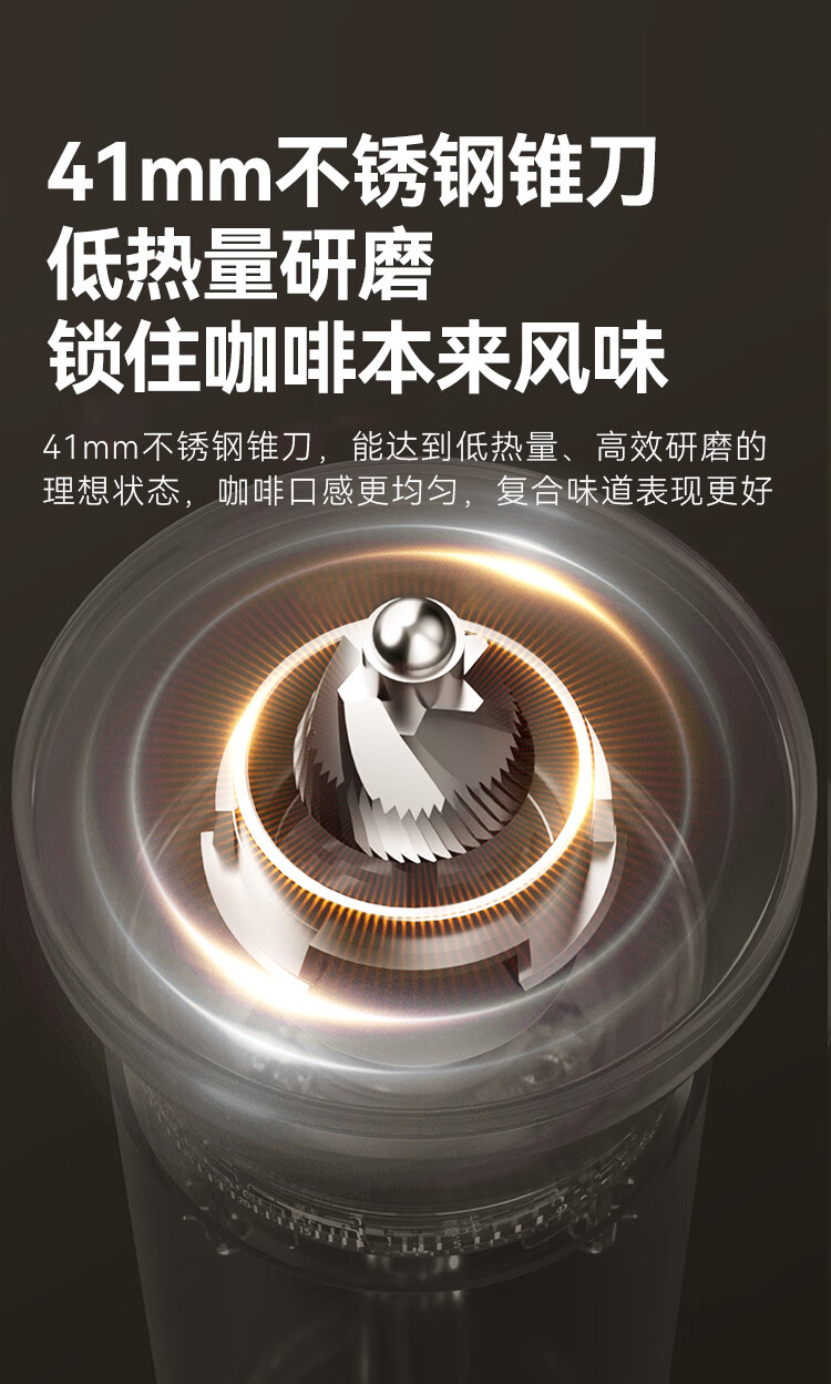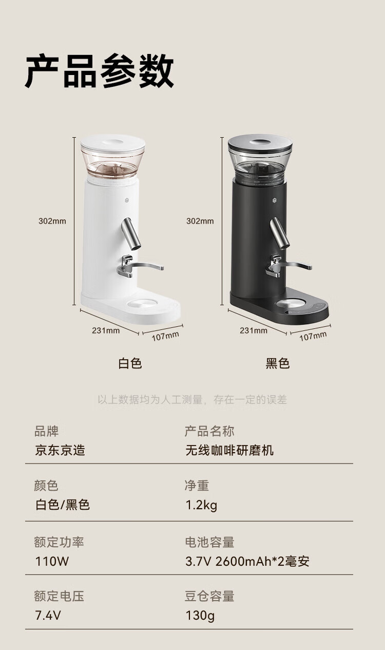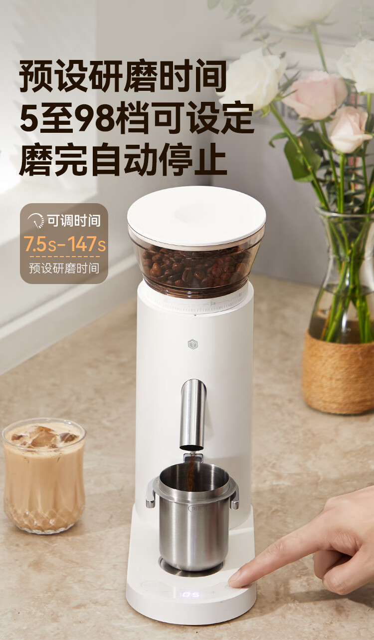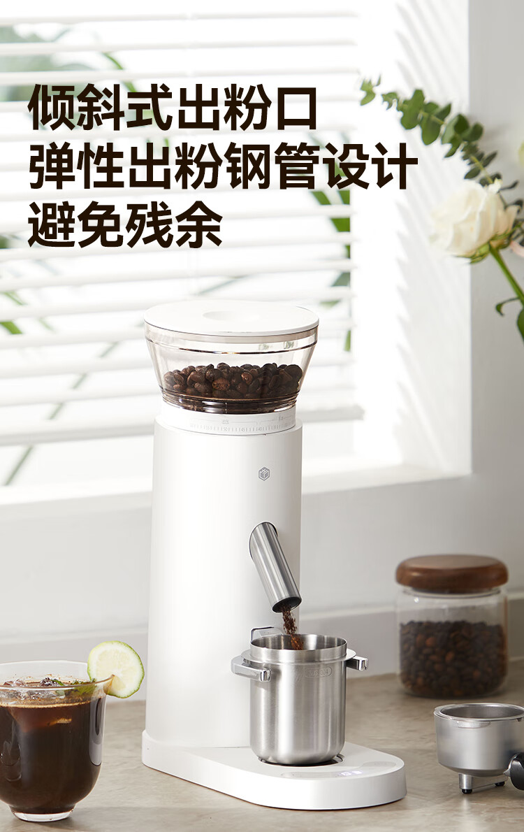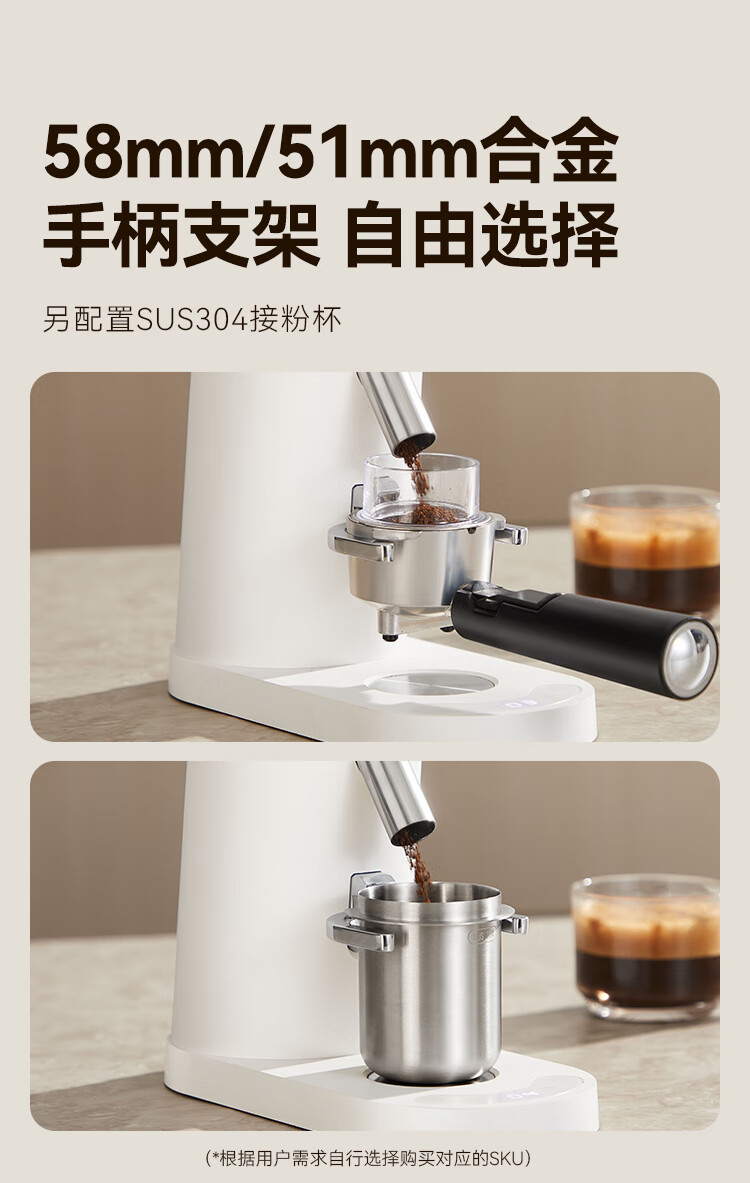 京东京造电动无线咖啡磨豆机防飞粉设计60档调节奶油白51mm手柄支架/接粉杯两用