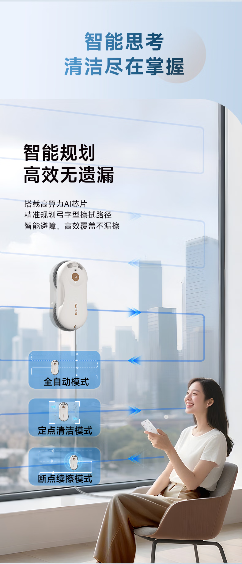 洒拖(SATUO)【国家补贴】T30擦窗机器人家政专用擦玻璃神器 洒脱高层户外智能喷水擦玻璃机器人 至臻版-百元机皇-极致性价比