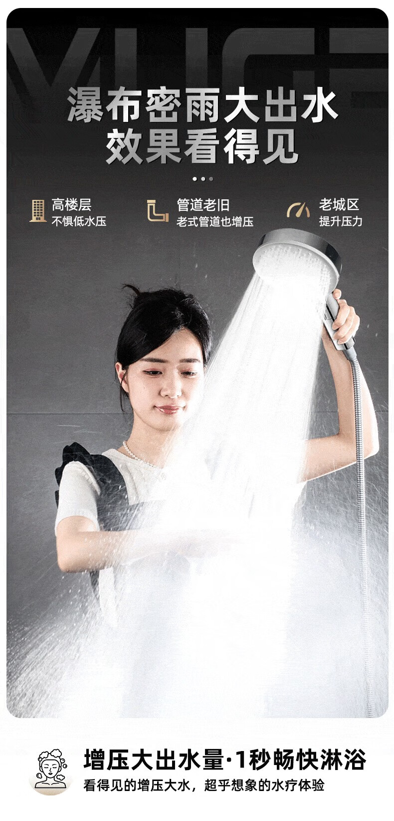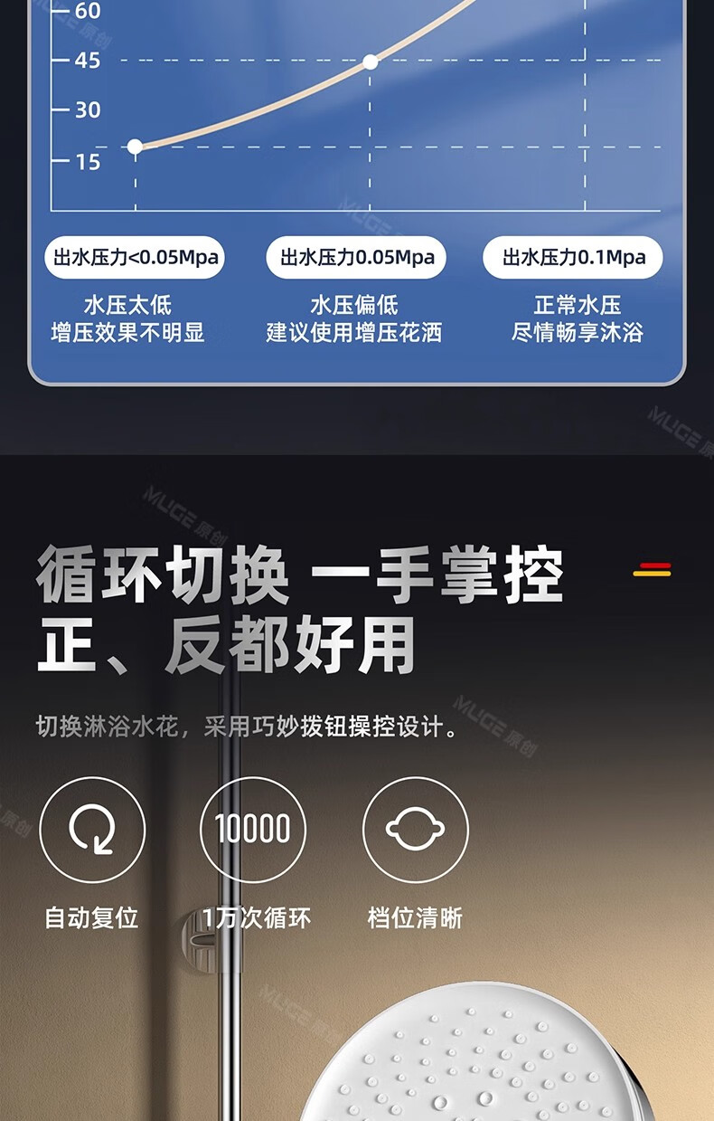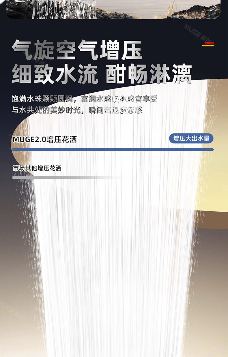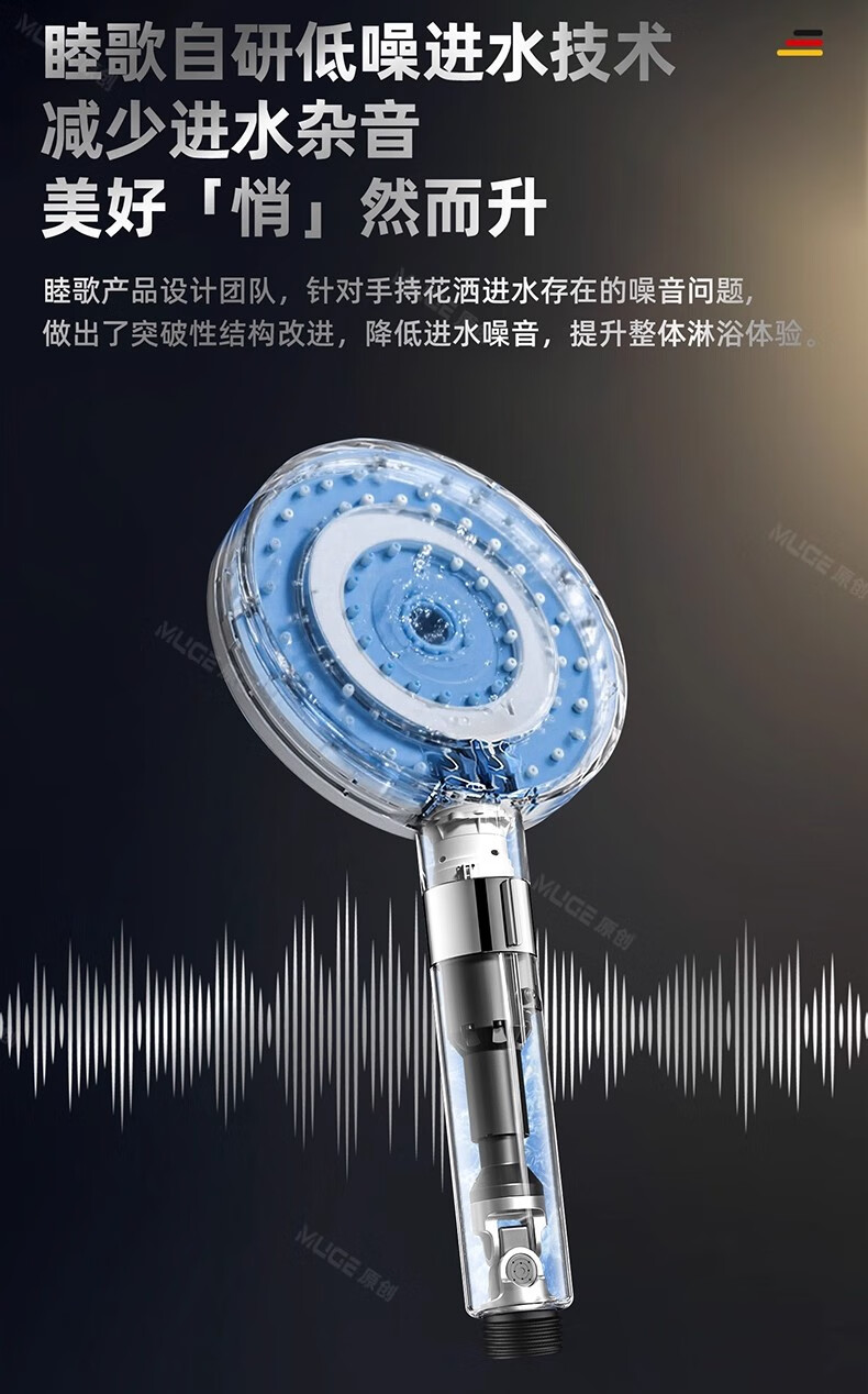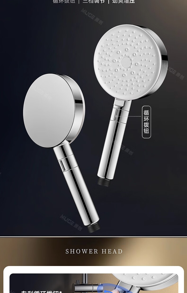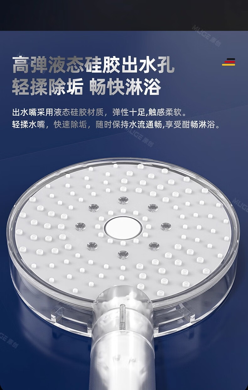 睦歌(MUGE)【德国】浴室淋浴增压花洒喷头多功能加压大面板手持莲蓬头套装 手持增压版【银色】高弹硅胶水嘴|单手拨钮变档