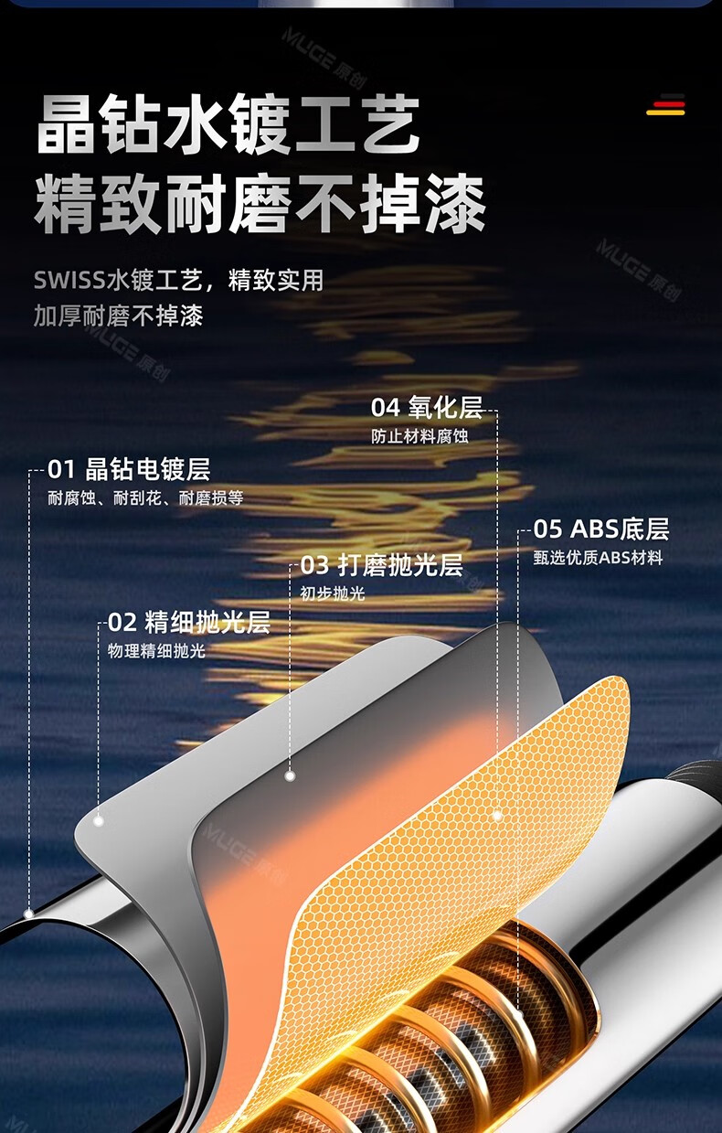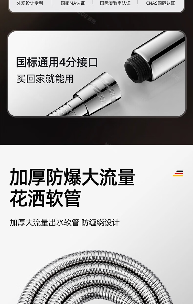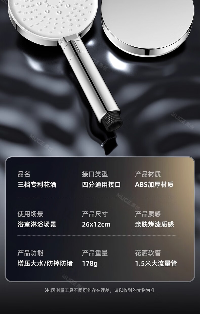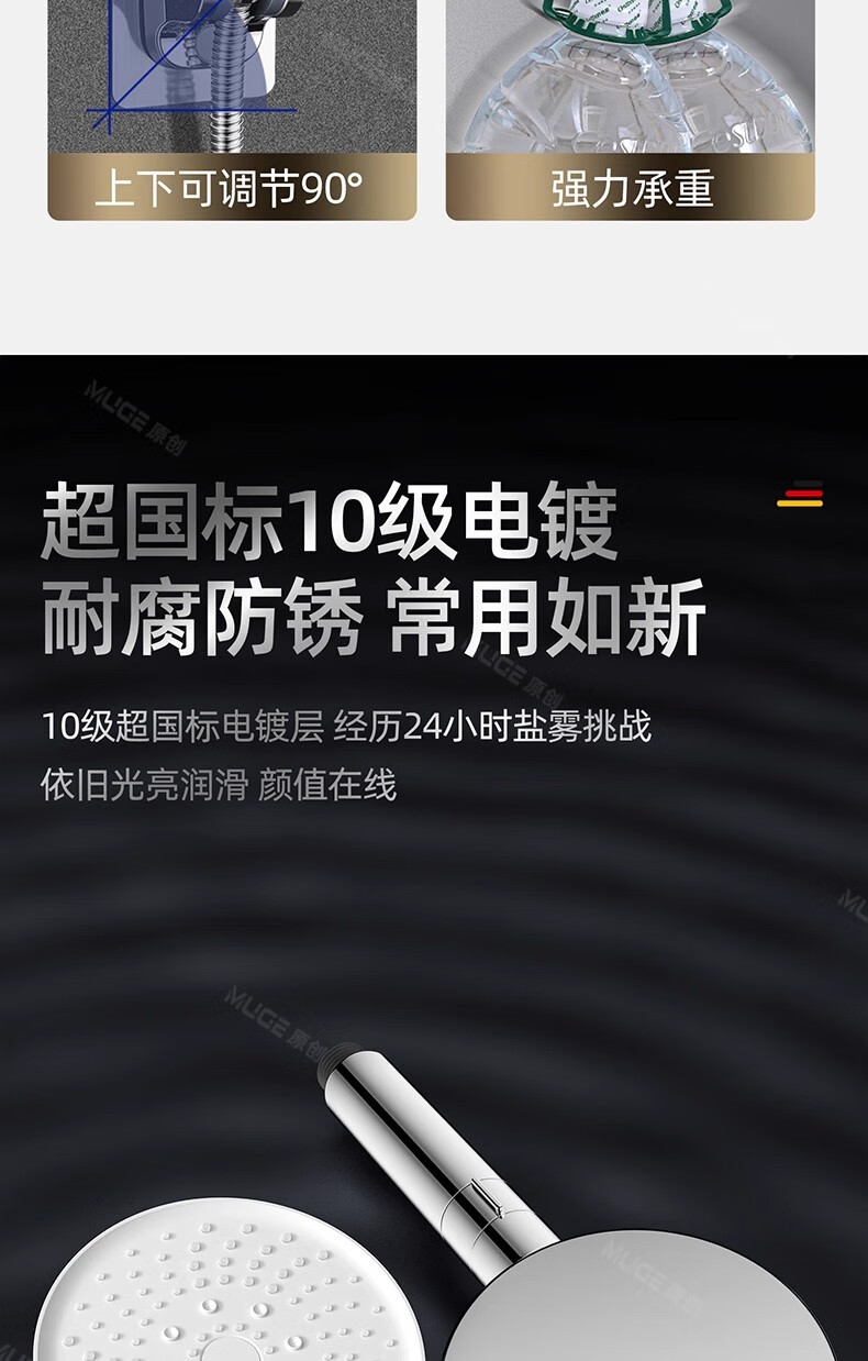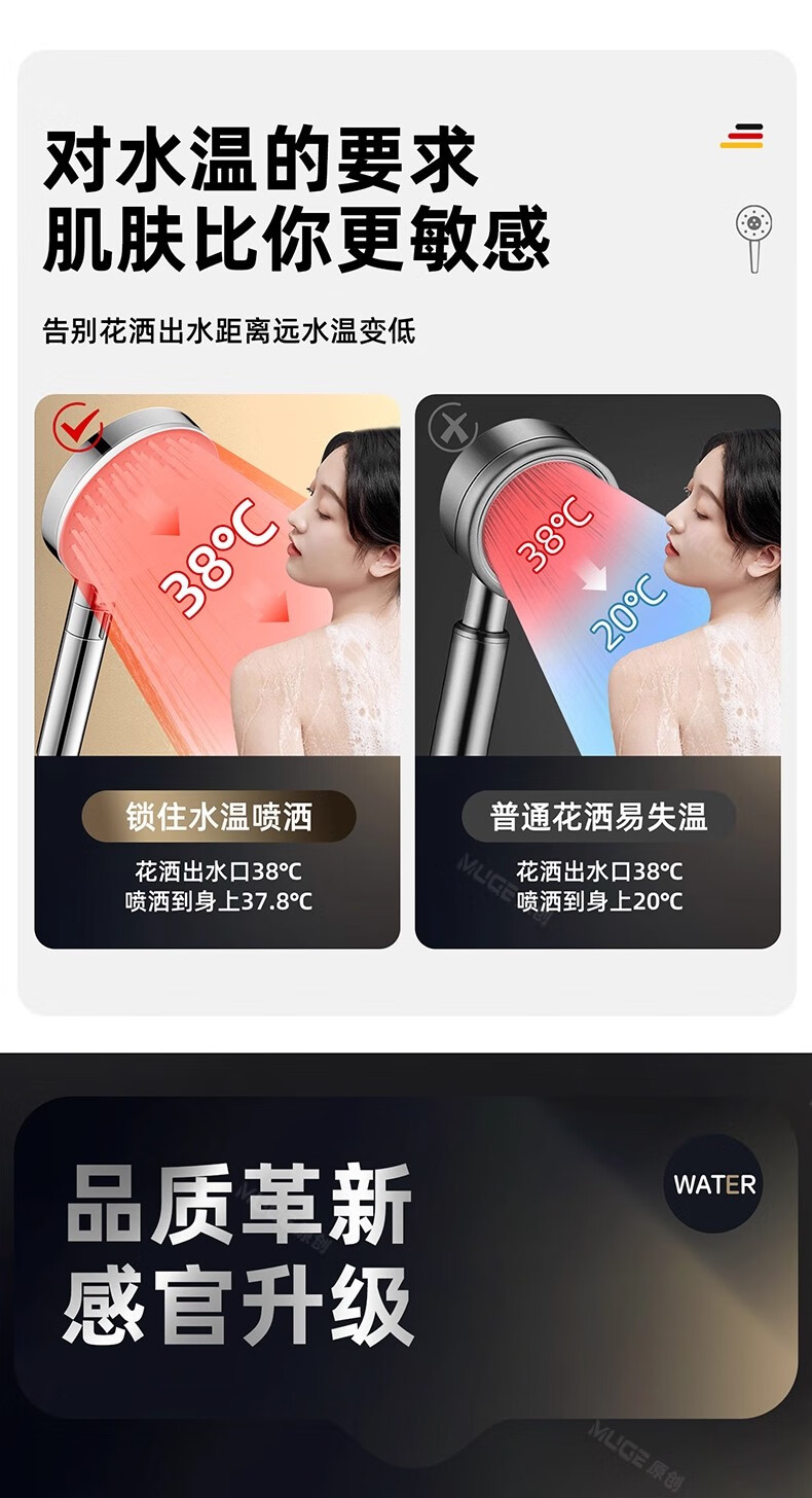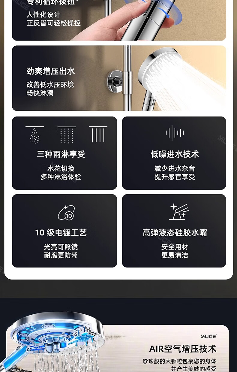 睦歌(MUGE)【德国】浴室淋浴增压花洒喷头多功能加压大面板手持莲蓬头套装 手持增压版【银色】高弹硅胶水嘴|单手拨钮变档