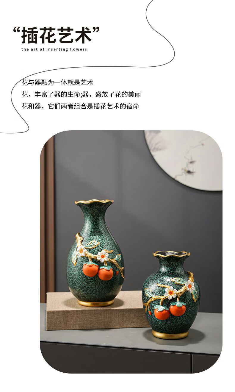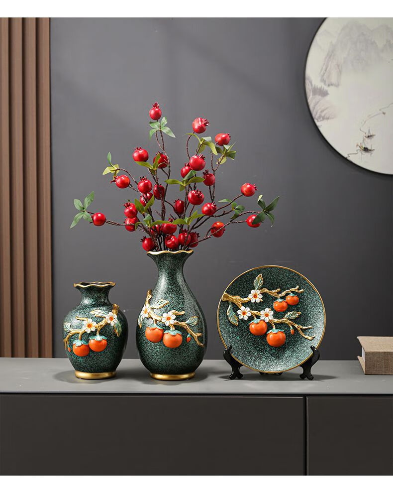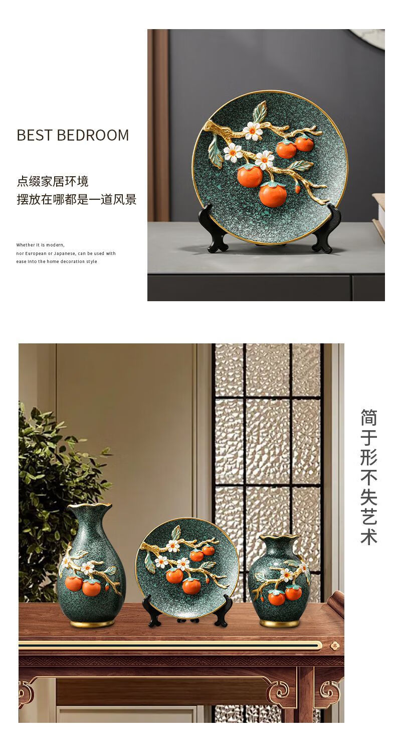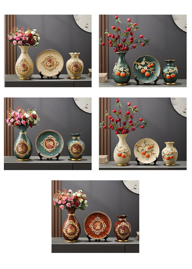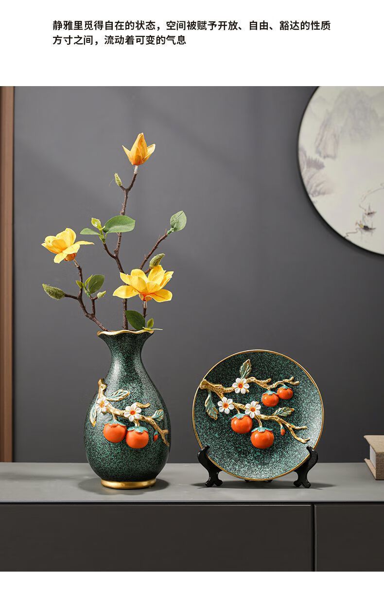 OYKTN新中式养真花陶瓷花瓶三件套立体事事如意客厅玄关电视柜酒柜摆件 A5花瓶大小一对-不含盘